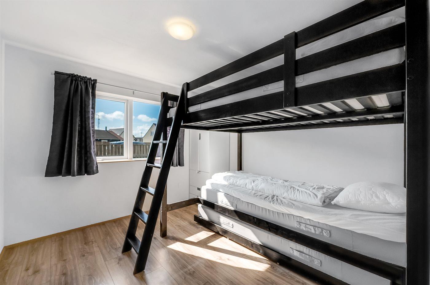 Er zijn in totaal 2 slaapkamers. De slaapplaatsen zijn als volgt verdeeld: 2 slaapplaatsen in tweepersoonsbed. 4 slaapplaatsen in stapelbedden.