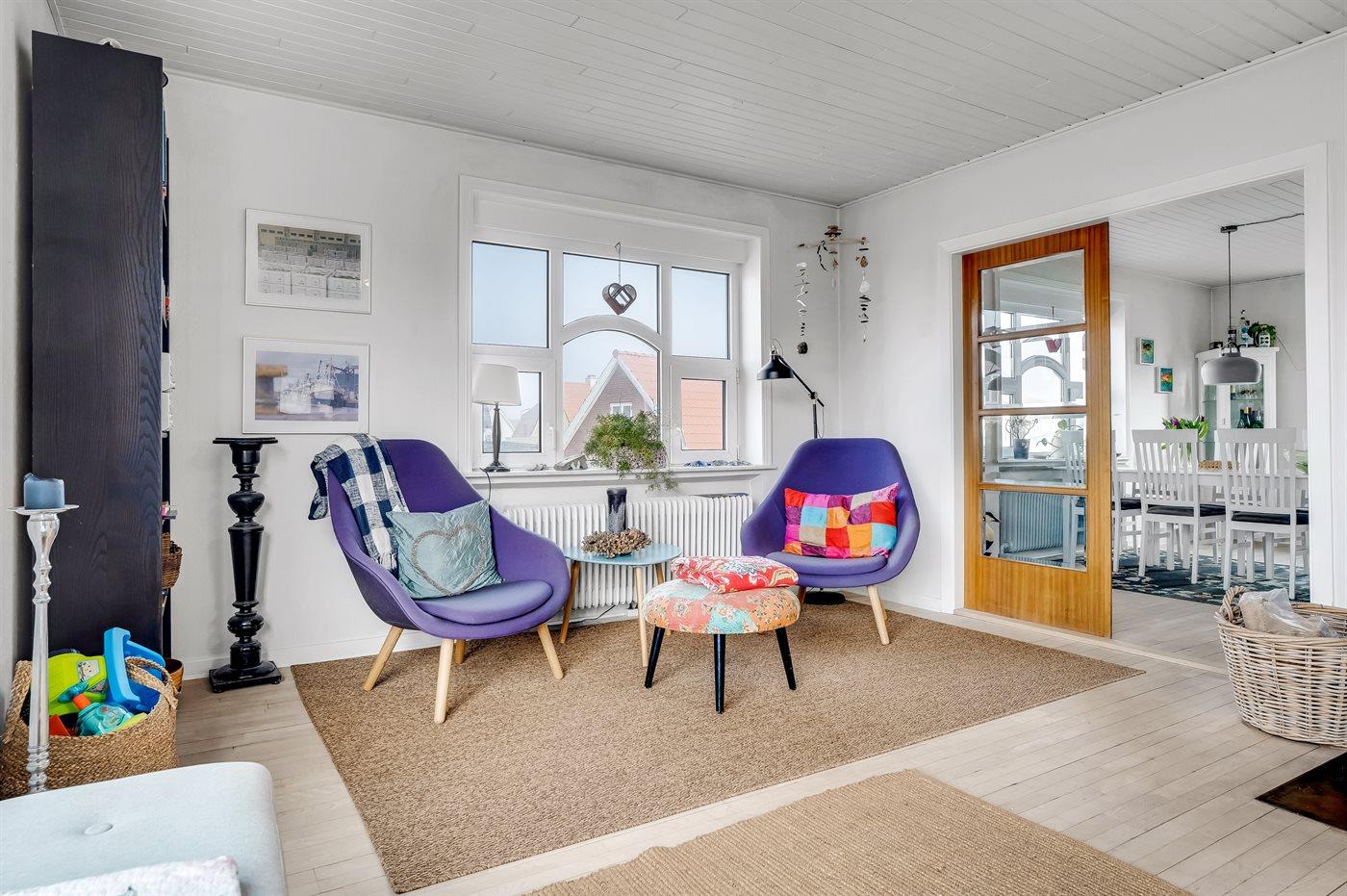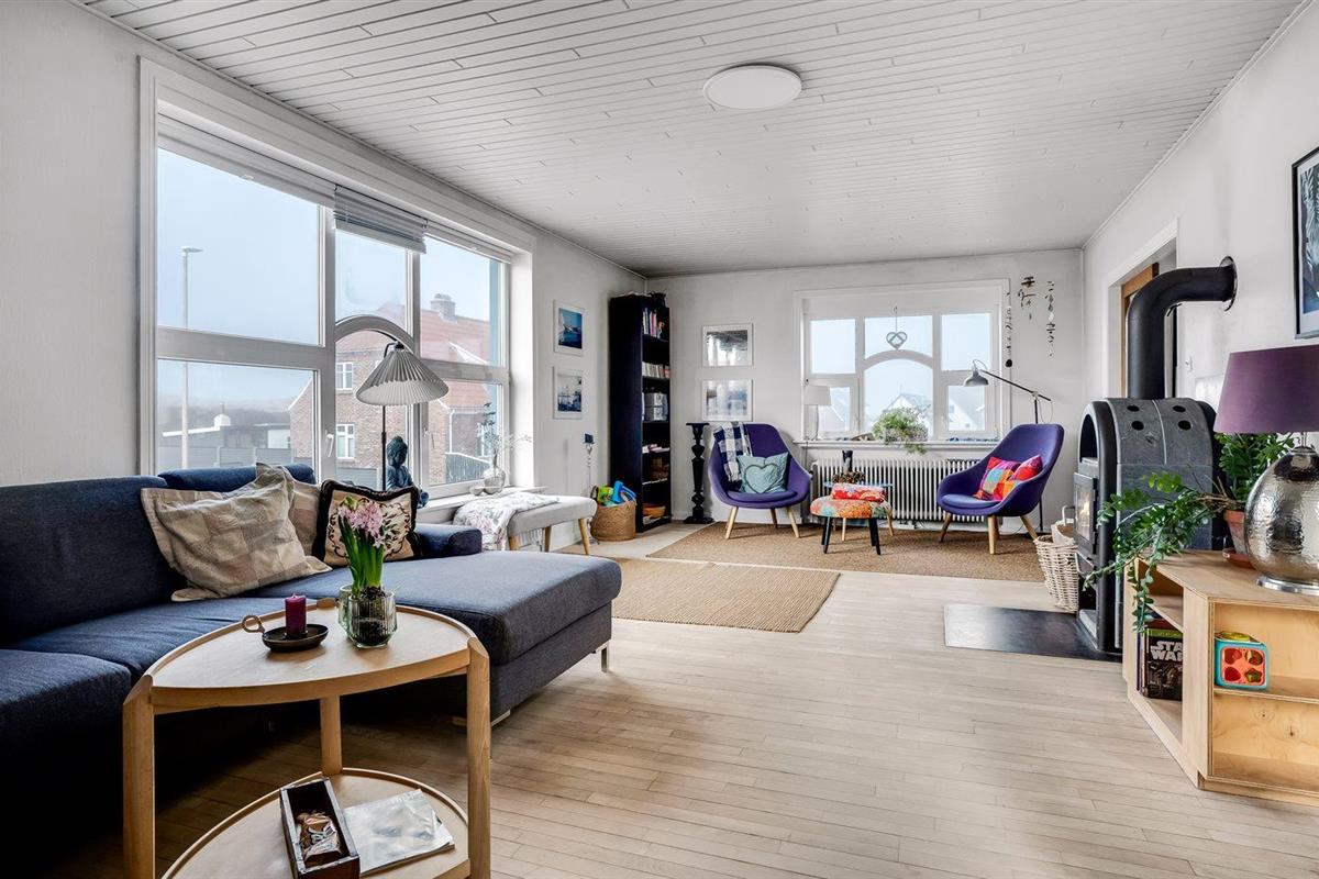 Ruim vakantiehuis in Thyborøn, vlak bij zee, met 5 slaapkamers, houtkachel en eigen oplader voor elektrische auto.