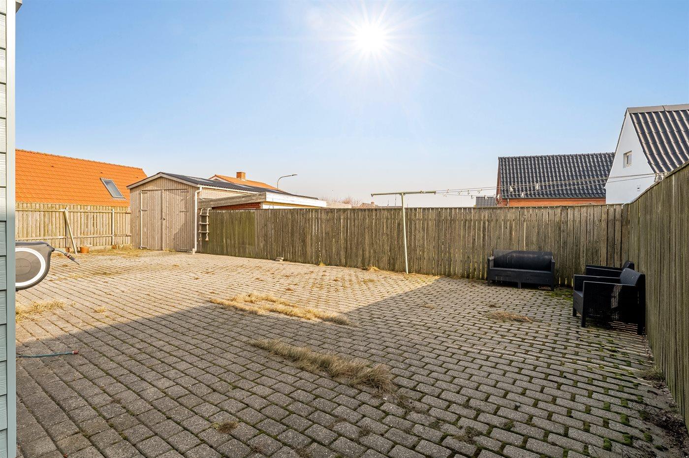 De vakantiewoning is gelegen op een 305 m² groot grond. De grond is omheind. Afstand tot de zee 150 m. Dichtstbijzijnde winkel 500 m. Bij de vakantiewoning hoort beschut terras. Het huis heeft een stopcontact voor het opladen van een elektrische auto.