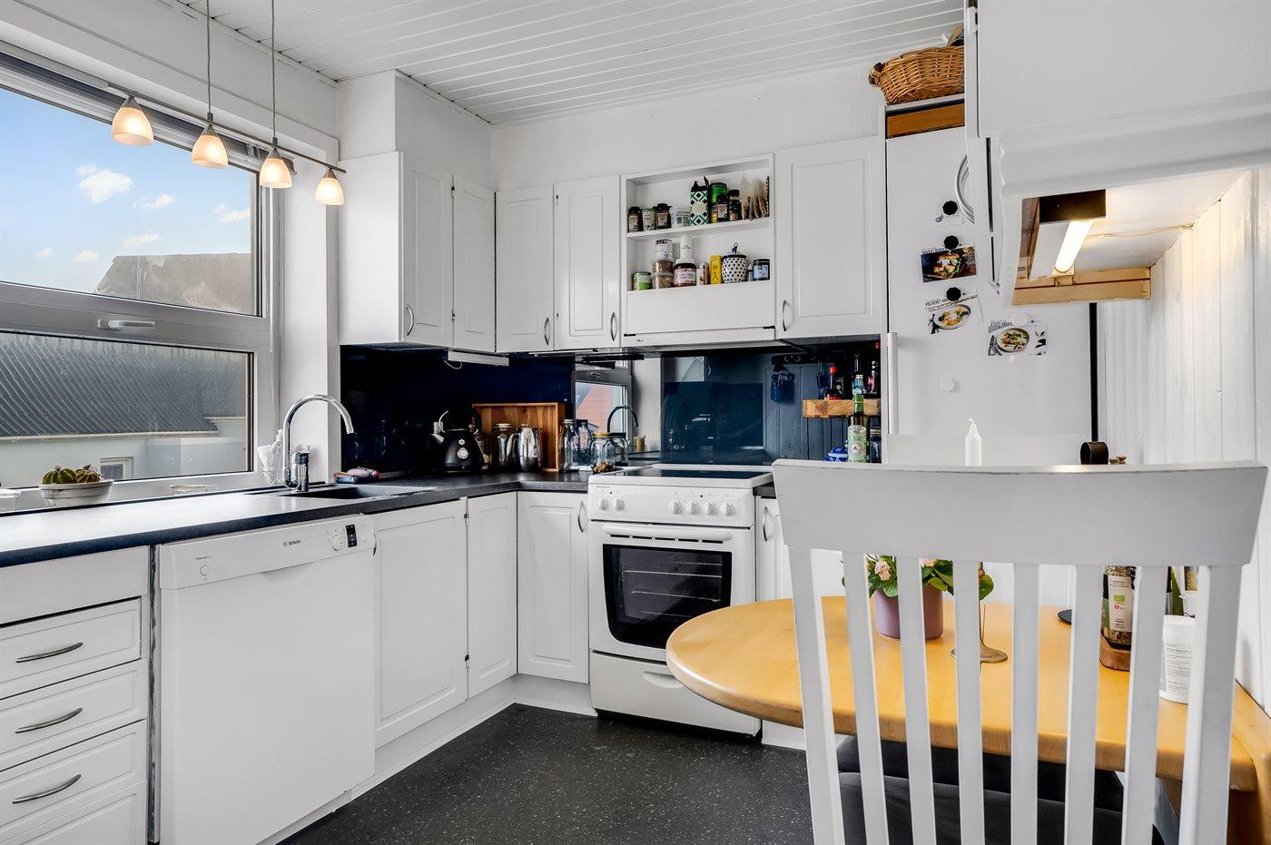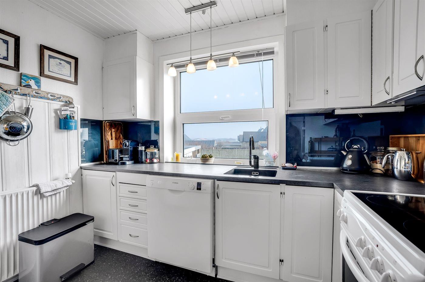 De keuken is uitgerust met koelkast Er is 4 elektrische kookplaten, heteluchtoven en vaatwasser.