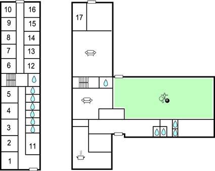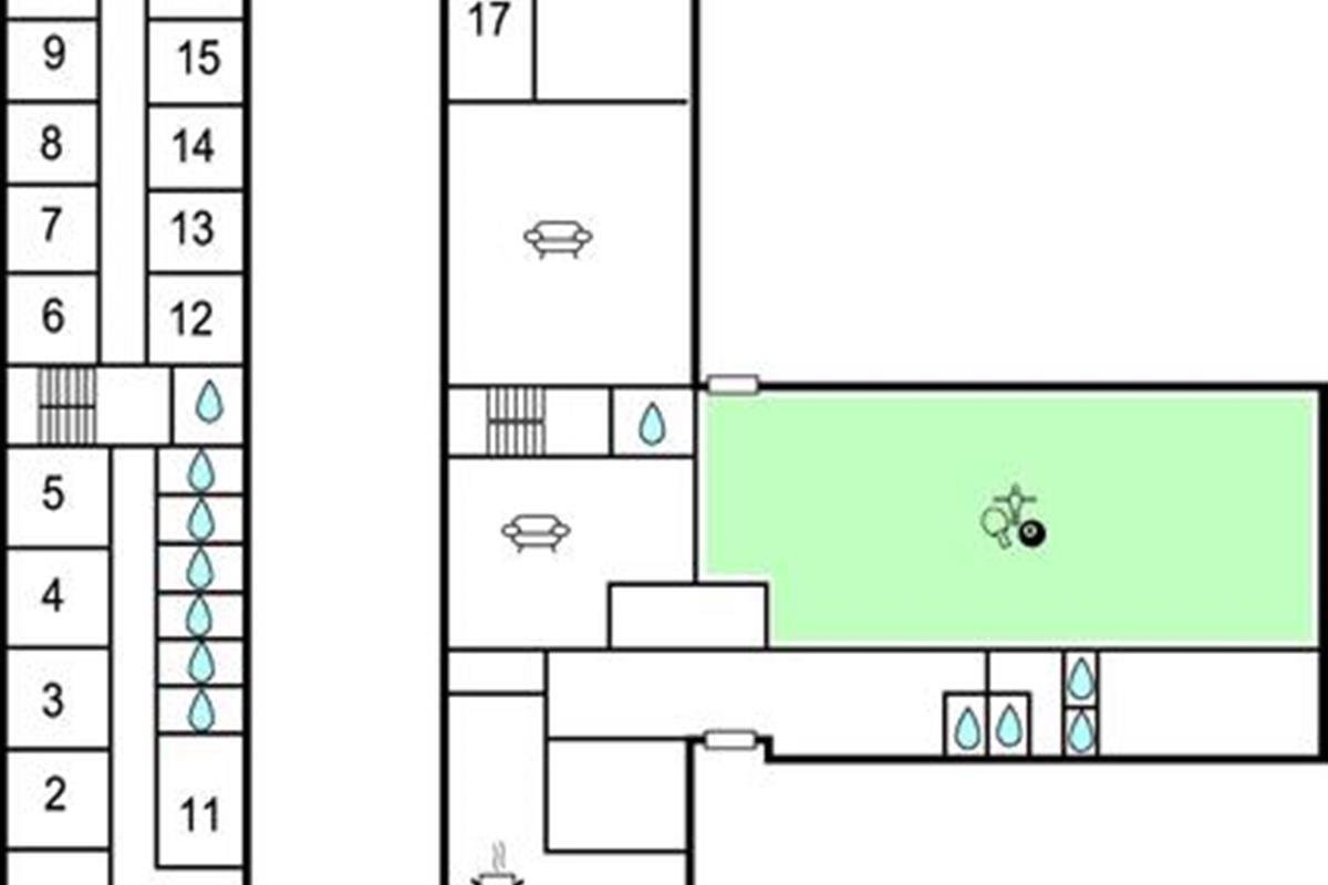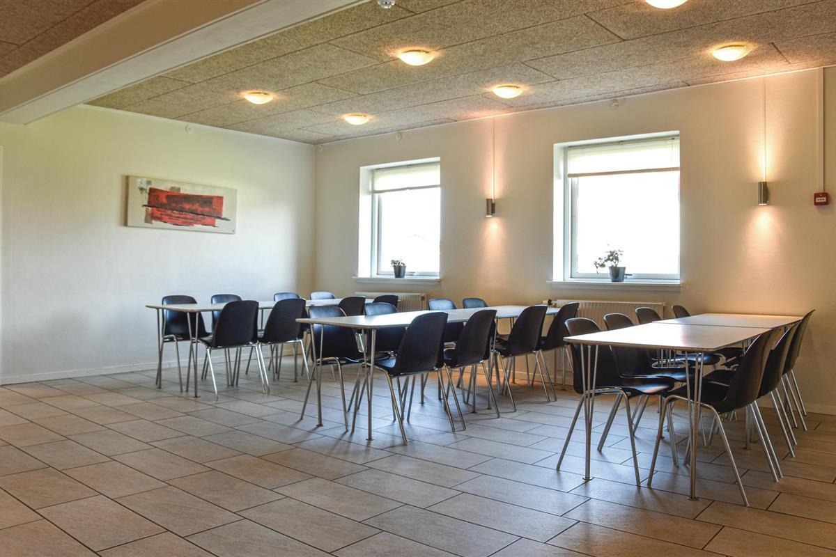 Het huis is een oude school, uitgerust met een grote keuken, eetkamer en grote woonkamer. Er zijn in totaal 16 slaapkamers, waarvan er één toegankelijk is voor gasten met een handicap. Het huis heeft een grote fitnessruimte met veel activiteiten zoals balspelen, tafeltennis en hockey. De zaal kan gebruikt worden voor feesten tot 150 personen, catering is mogelijk. Het huis is verbonden met het sportcentrum en de camping van Thyborøn. Je kunt de sporthal en extra slaapplaatsen in kampeerhutten huren.