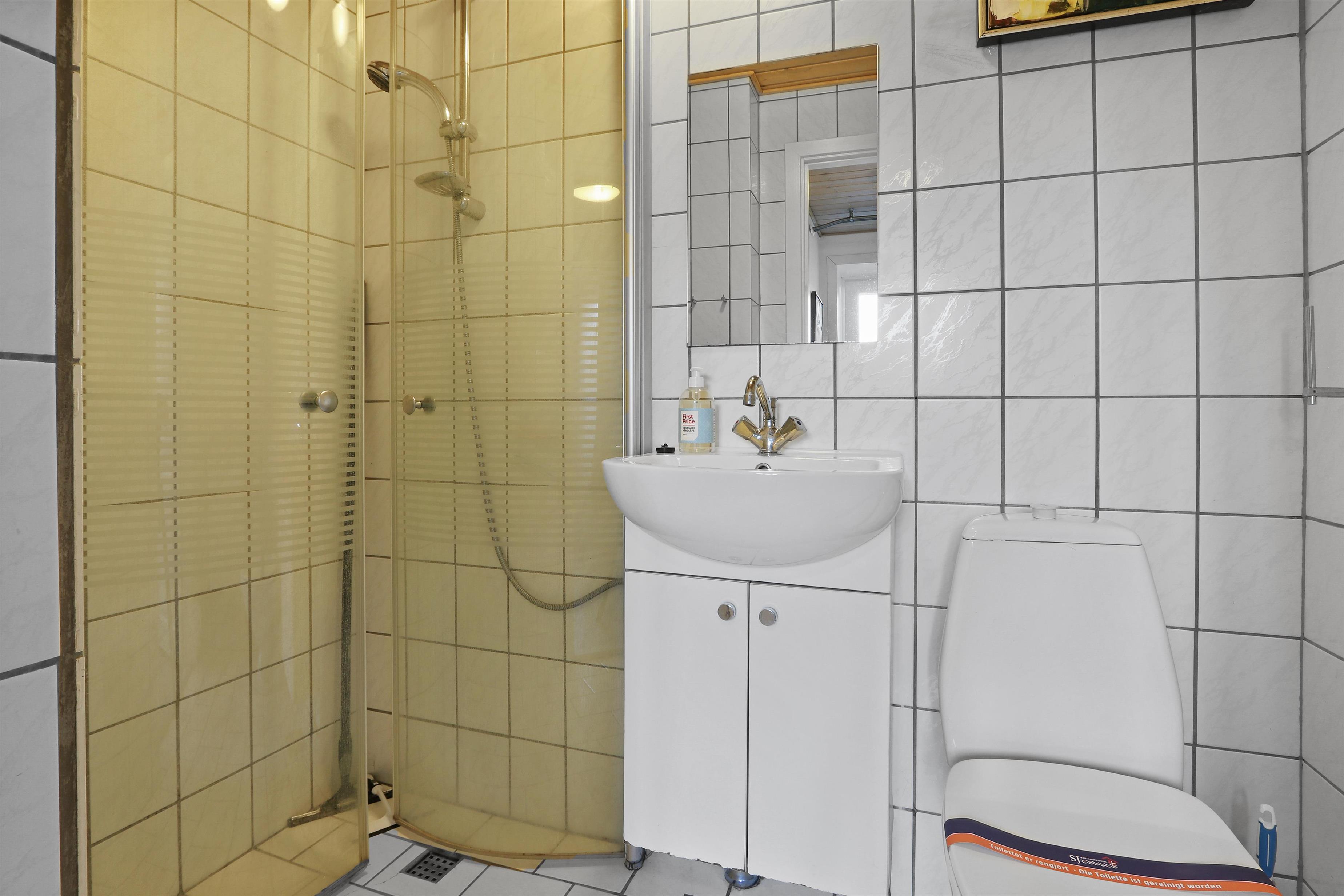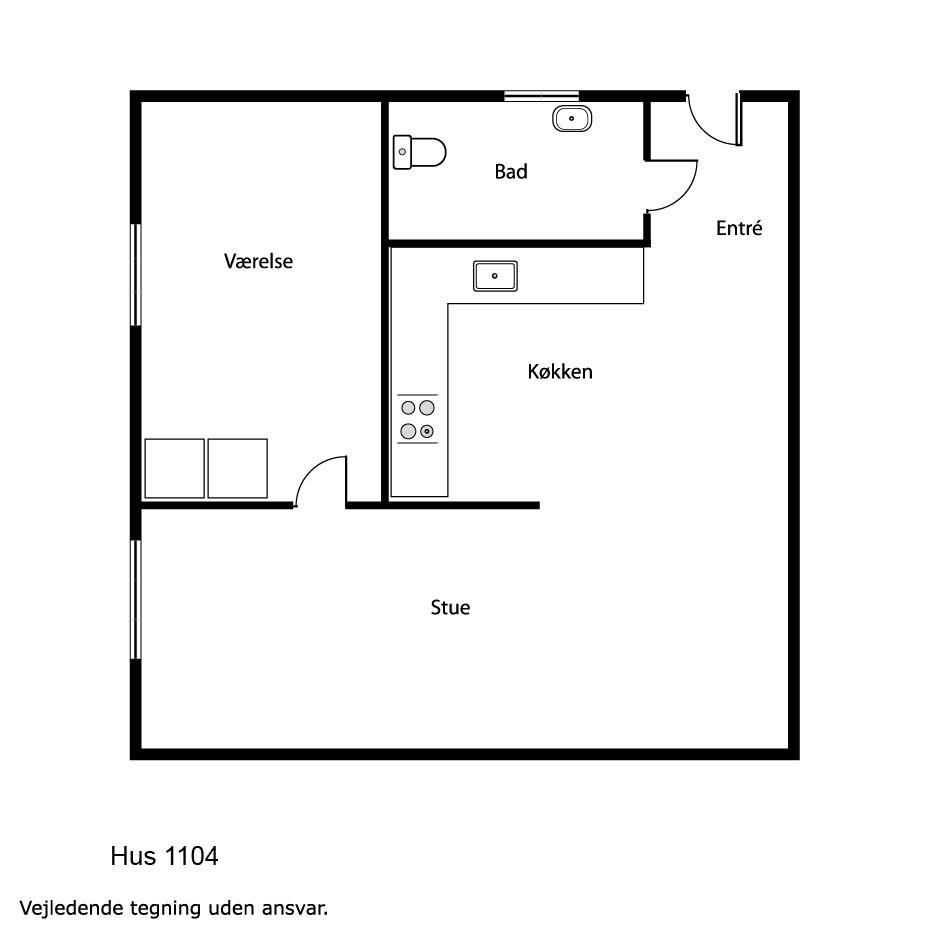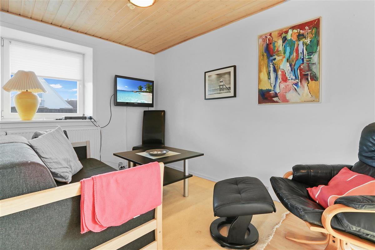 Etwa 40 m² grosse Wohnung im Erdgeschoss. Eingang durch einen kleinen Flur zu einem Wohnraum mit der Küchenecke kombiniert. Wohnraum mit Doppelschlafcouch, TV mit dänischen und deutschen Programmen, CD/Radio und Esstisch. Küchenecke mit Herd mit Cerankochfeld, Abzugshaube, Mikrowelle und Kühlschrank mit kleinem Gefrierfach. 1 Schlafraum mit 1 Doppelbett. Badezimmer mit Toilette, Waschbecken und Dusche. Nichtraucher-Wohnung. Max. 2 Haustiere erlaubt.