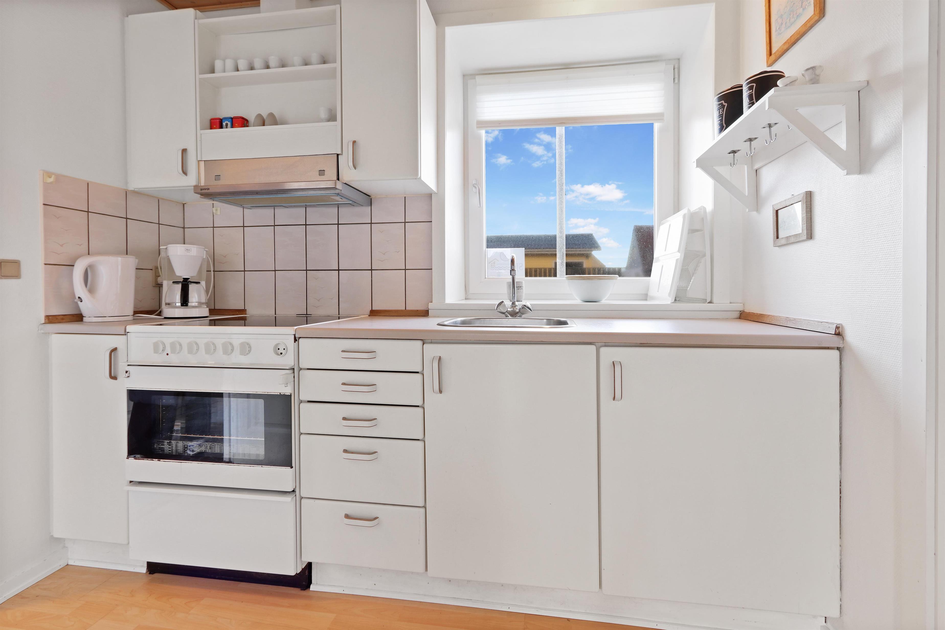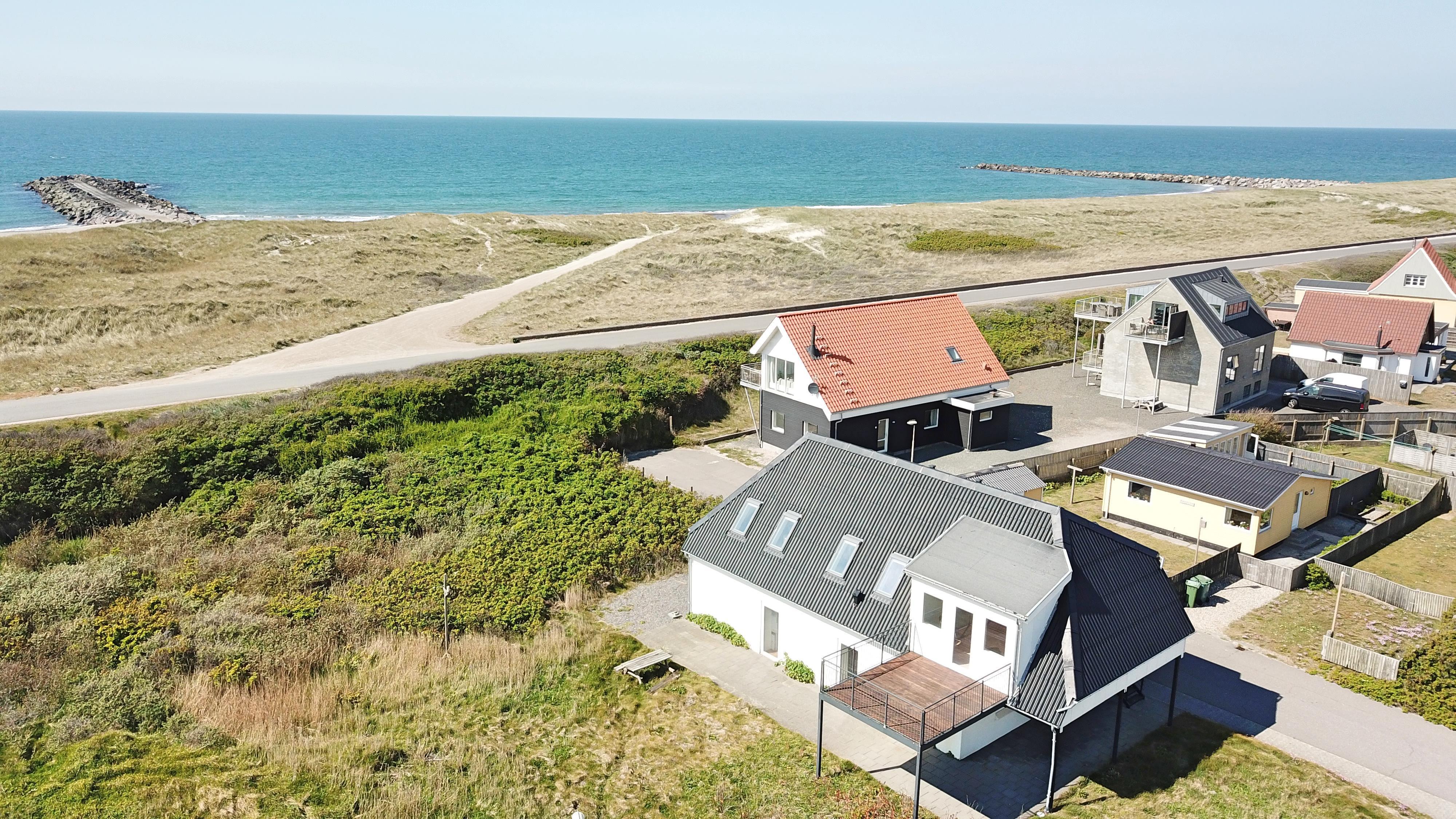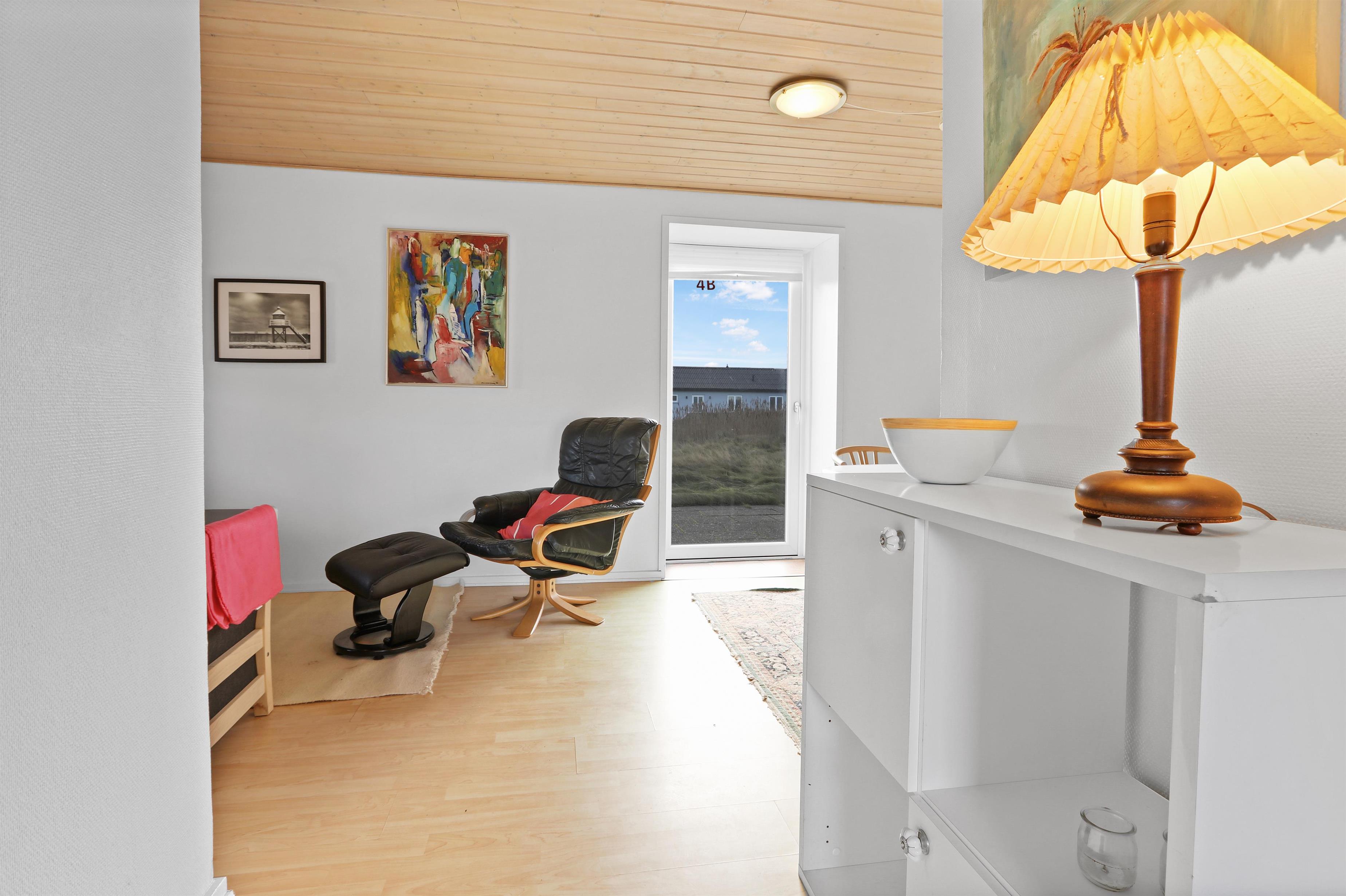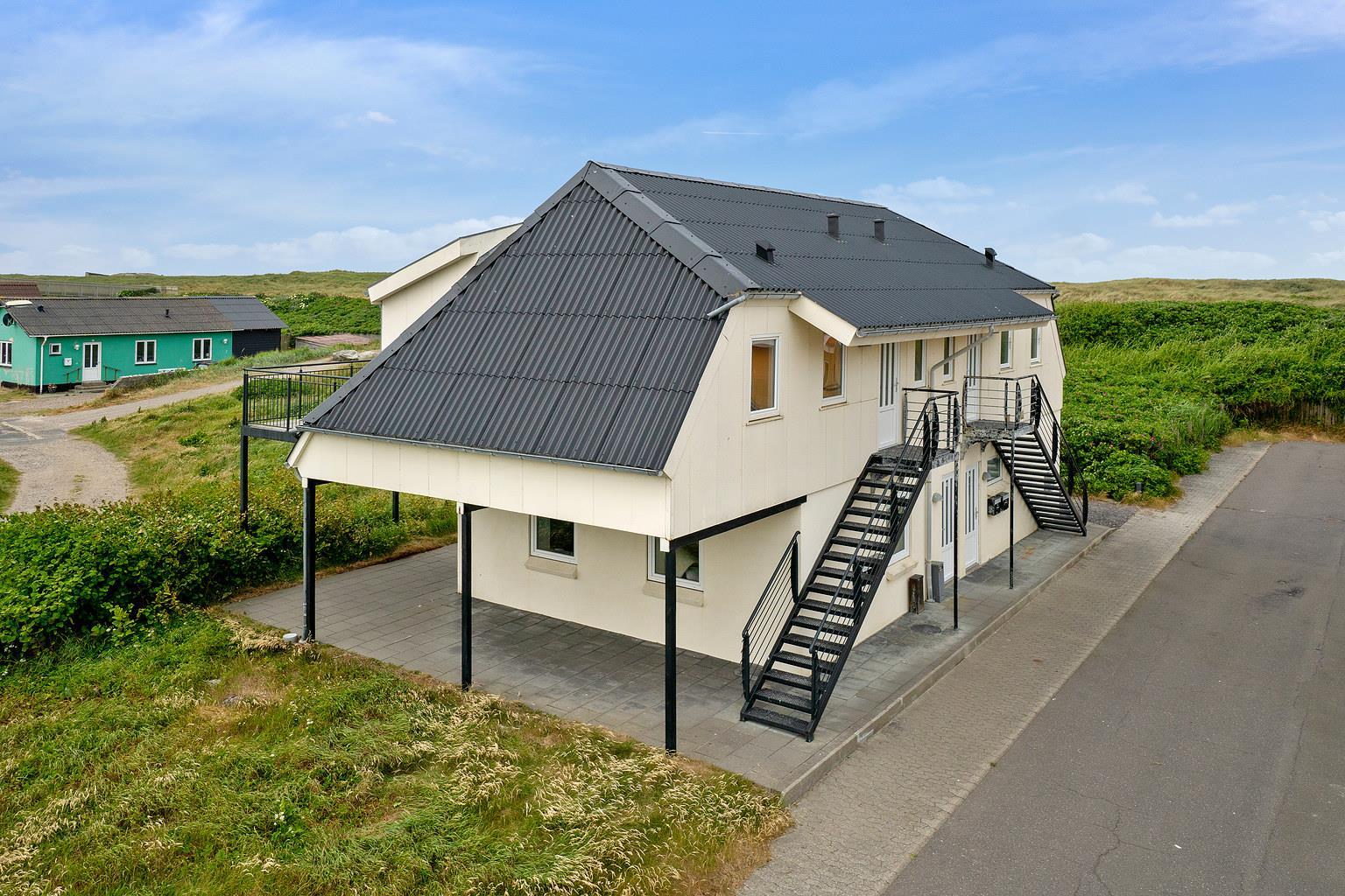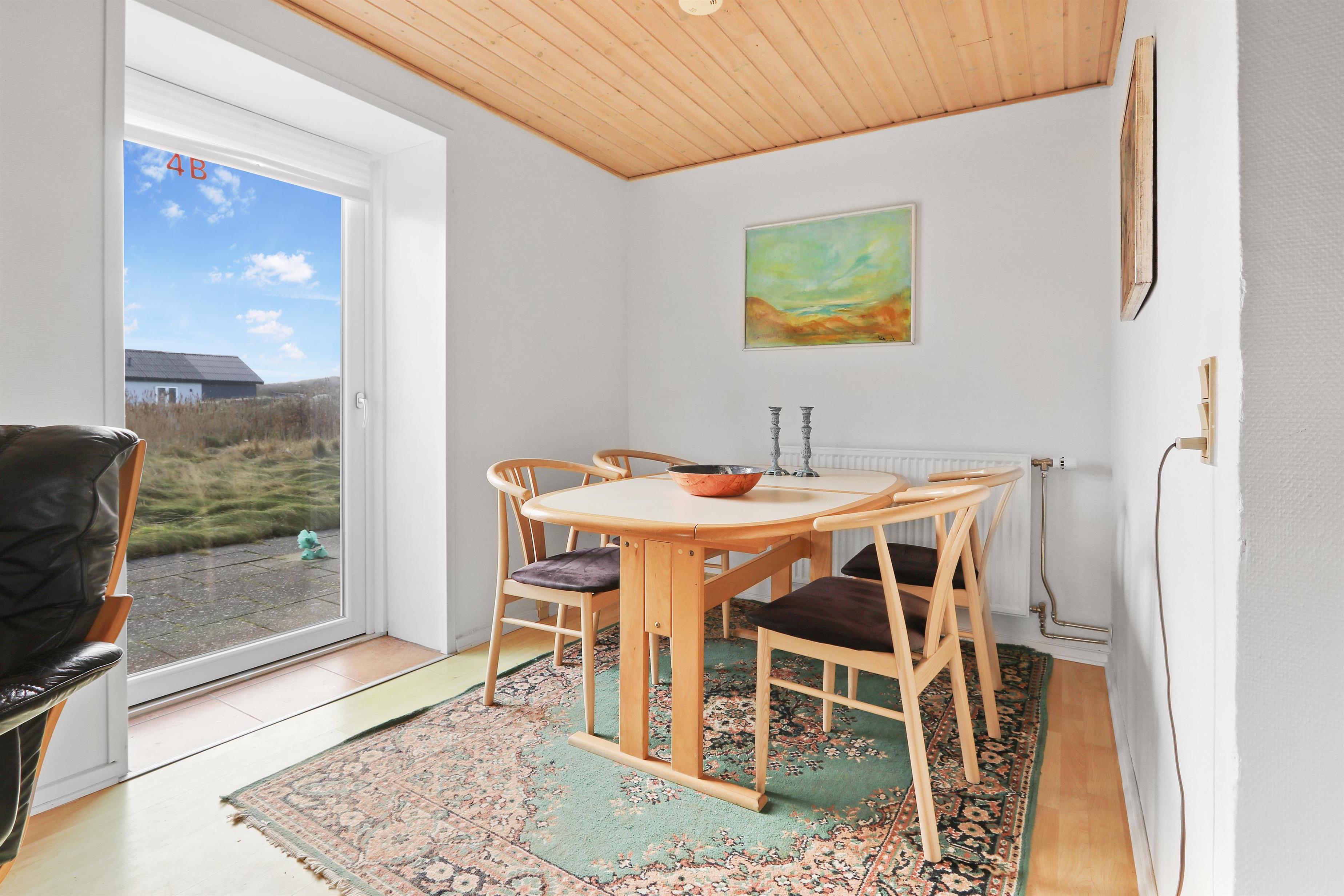 Vom Wohnzimmer aus haben Sie einen Zugang zu einer schönen Terrasse, die vor Einsicht von der Nachbarwohnung geschützt ist, aber einen fantastischen Blick auf die hohen Dünen von Thyborøn bietet. Gartentisch, Gartenstühle und Grill sind vorhanden für einen gemütlichen Abend in der Nähe der Nordsee. Von der Wohnung aus können alle Sehenswürdigkeiten von Thyborøn zu Fuß erreicht werden. Nehmen Sie sich einen Hafenspaziergang vor und genießen Sie das Leben am Hafen. Besuchen Sie die Fischauktion in der Saison oder probieren Sie einen der kinderfreundlichsten Strände der Nordsee. Die Nordsee liegt nur 1500 Meter vom Haus entfernt und geht in den Limfjord über. Der Strand direkt vor dem Haus eignet sich eher zum Angeln, Schnorcheln und Tauchen sowie zum Drachenfliegen oder zum Sammeln von Bernstein. Hier können Sie auch stundenlang Bunker studieren und sogar in viele hineingehen - denken Sie an die Taschenlampe. Wenn Sie vom Haus aus weniger als 1 Kilometer in Richtung Süden laufen, gelangen Sie zu einem großen Vogelschutzgebiet, in dem Sie zu jeder Jahreszeit in aller Ruhe die Natur beobachten können. Obligatorische Endreinigung