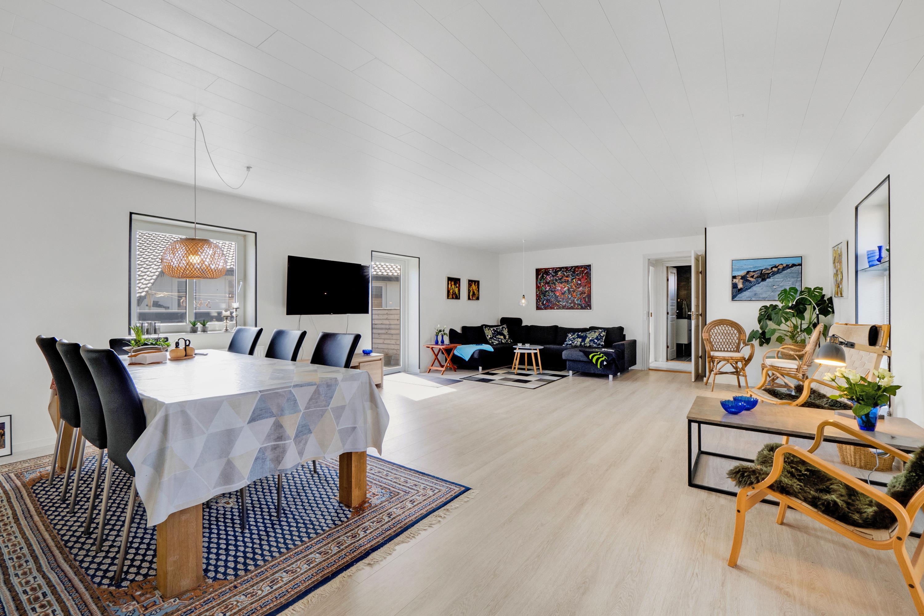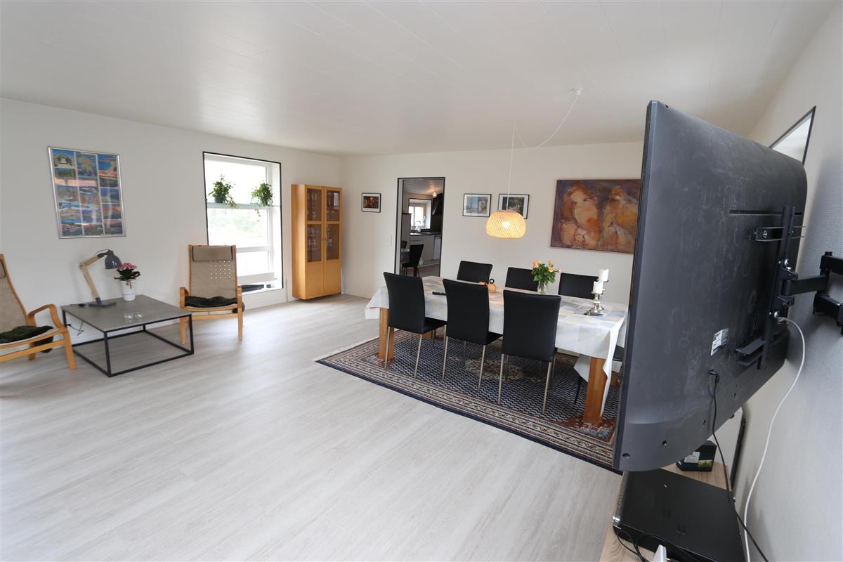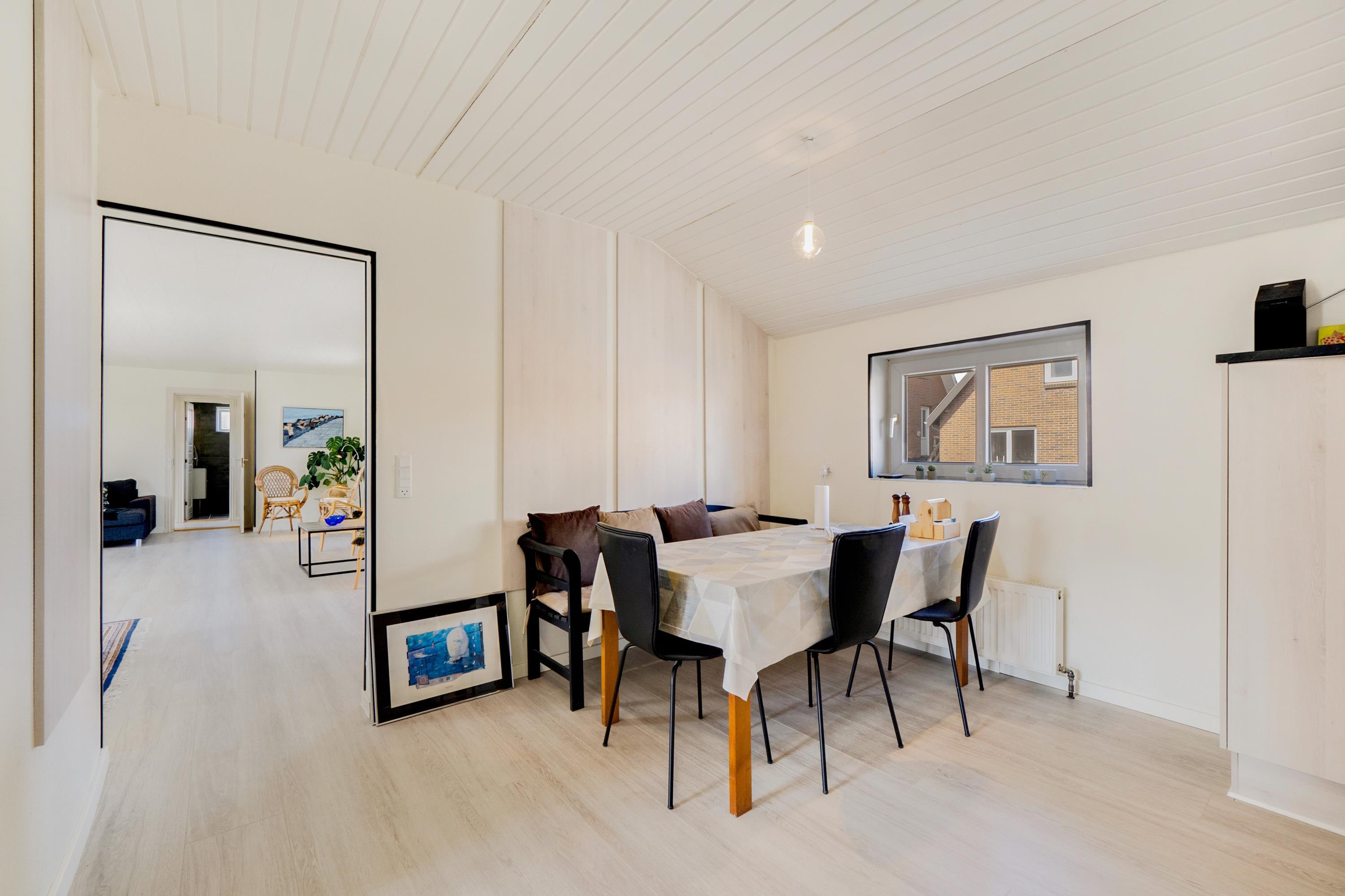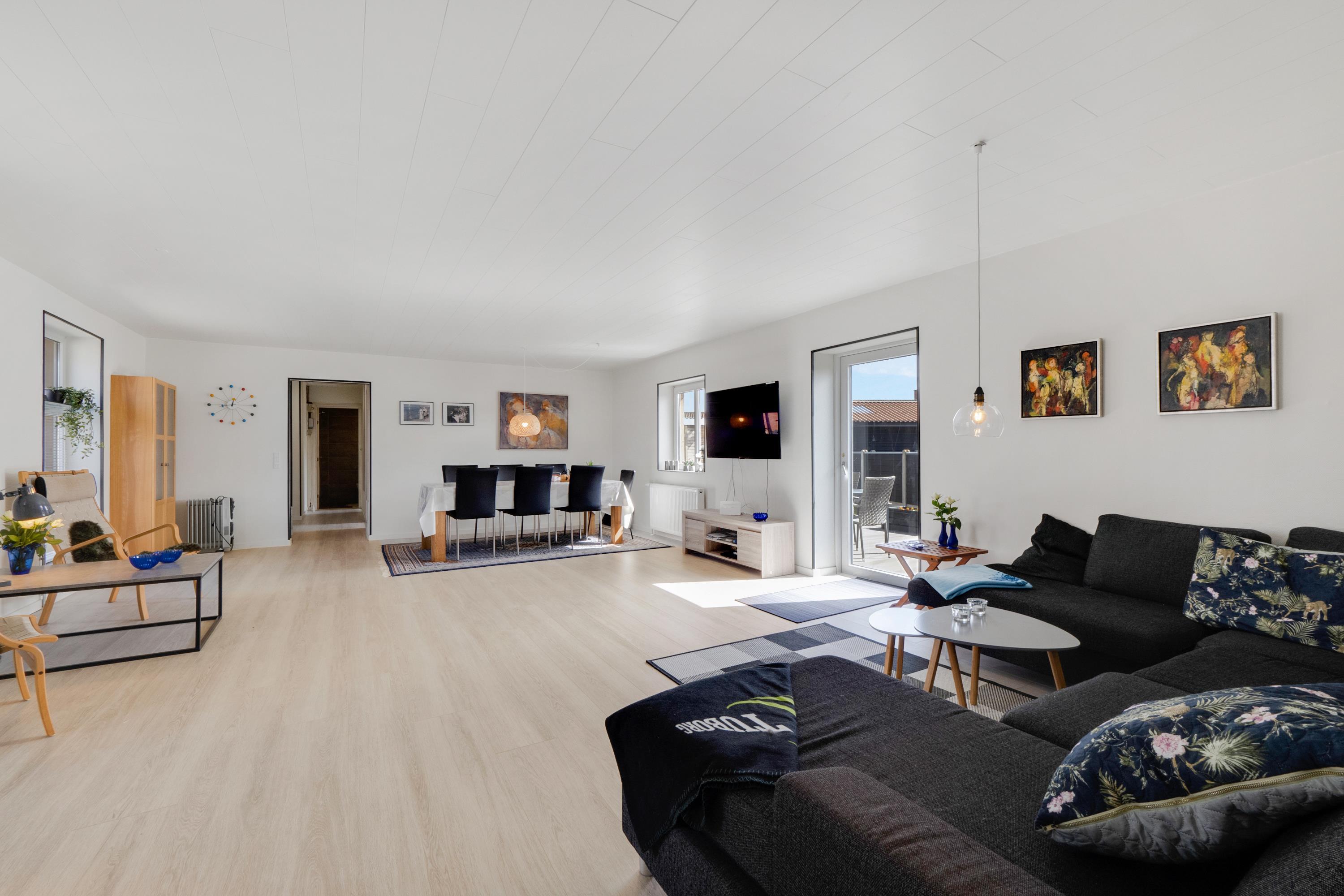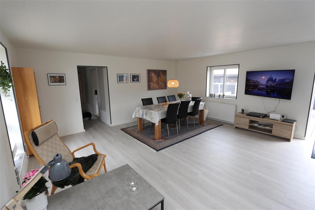 Wenn Sie durch die Eingangstür treten kommen Sie in einen schönen Flur mit Waschmaschine, Trockner, extra Waschbecken und Küchentisch. Vom Flur gibt es Zutritt zu einer schönen Küche und einem extra Raum mit Dart und Sitzplätzen. Die Küche ist ist mit Herd mit Cerankochfeld, Abzugshaube, Geschirrspüler, eingebautem Ofen, Esstisch und Kühlschrank mit Gefrierfach ausgestattet. Schöner minimalistischer Wohnraum mit schöner Couch, Esstisch, Smart-TV mit dänischen Programmen und der Möglichkeit für Streaming von TV / Radio / Apps und Chromecast, Så har du en mobiltelefon eller et andet device med kan du streame hvad du nu har abonnement. 3 Schlafräume: 1DB + 2B + 2B und 2 Badezimmer. Das eine schöne Badezimmer ist mit Toilette, Waschbecken, Dusche und schönem Fliesenboden mit Fussbodenheizung. In allen Aufenthaltsräumen sind praktische und reinigungsfreundliche Holzböden. Nichtraucher-Haus. Max. 1 Haustier ist erlaubt.