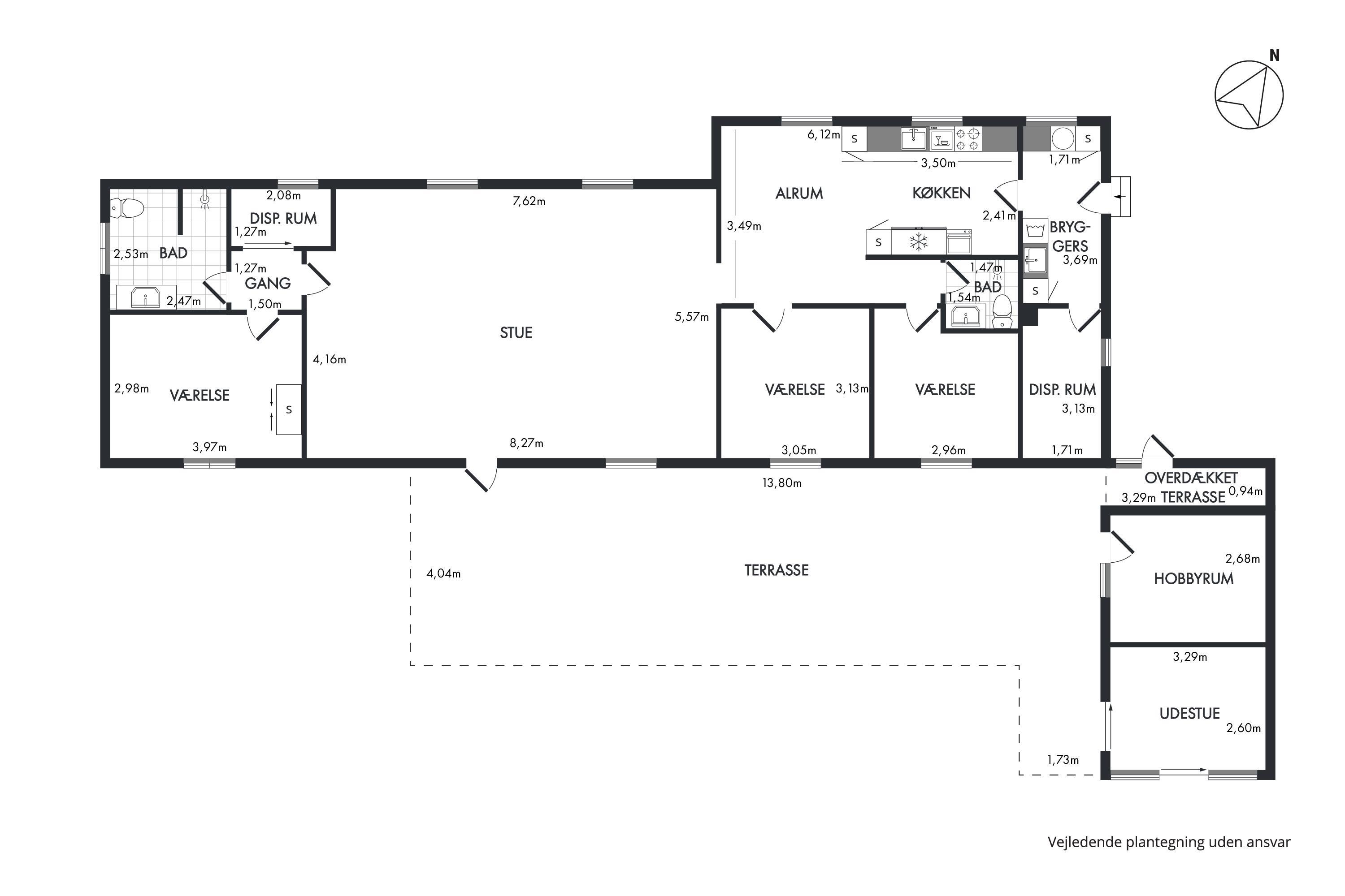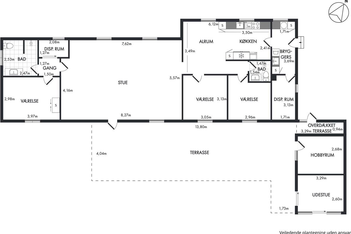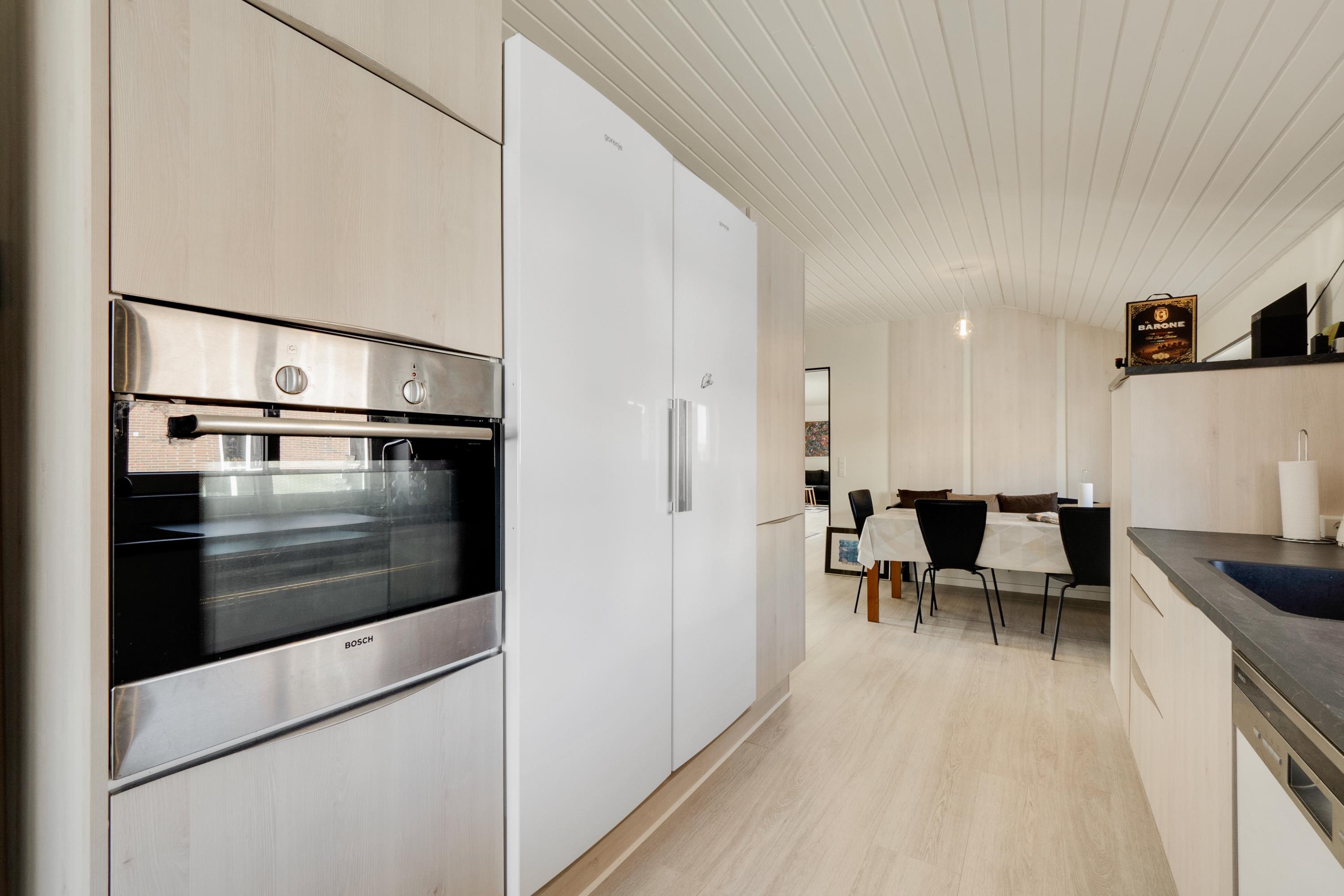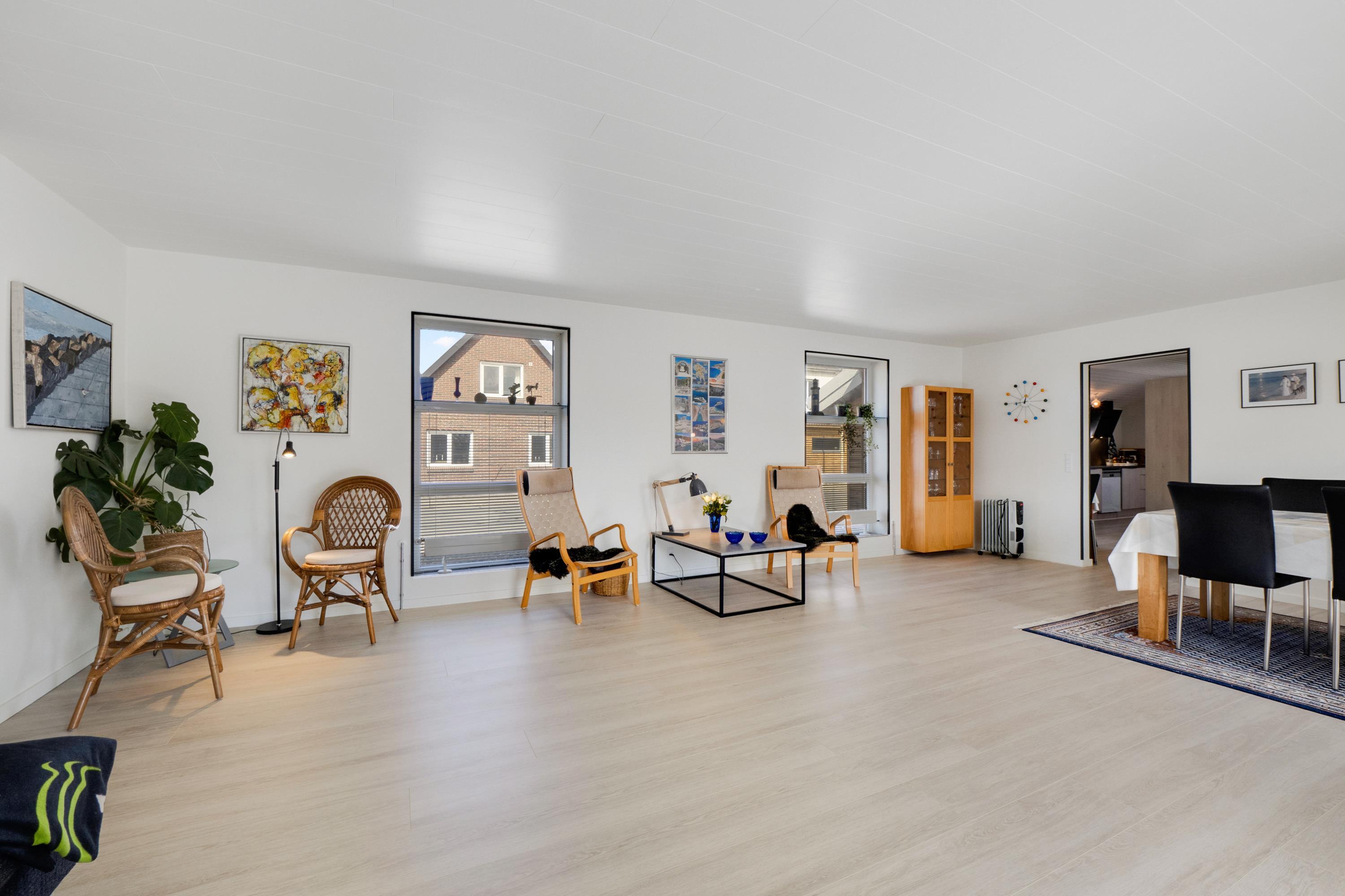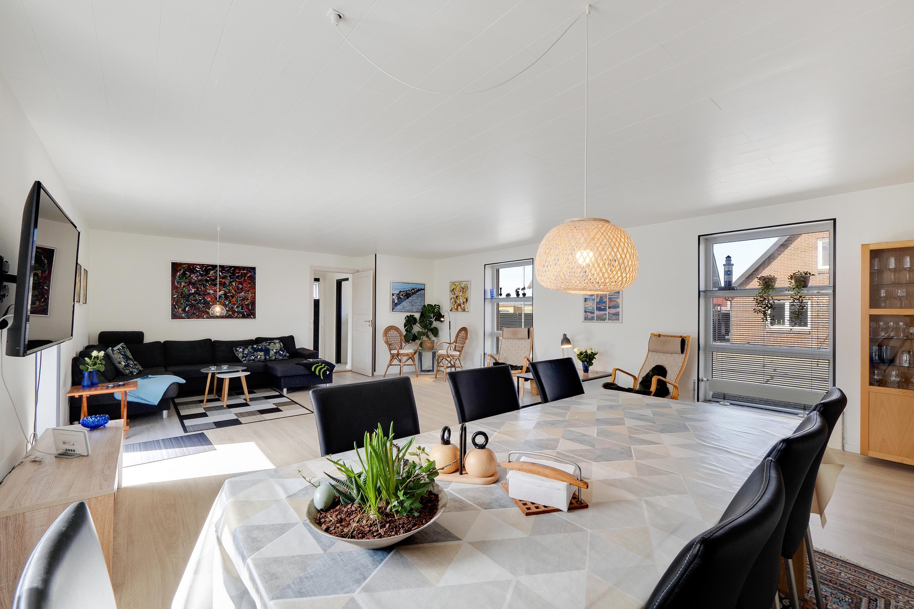 Wenn Sie durch die Eingangstür treten kommen Sie in einen schönen Flur mit Waschmaschine, Trockner, extra Waschbecken und Küchentisch. Vom Flur gibt es Zutritt zu einer schönen Küche und einem extra Raum mit Dart und Sitzplätzen. Die Küche ist ist mit Herd mit Cerankochfeld, Abzugshaube, Geschirrspüler, eingebautem Ofen, Esstisch und Kühlschrank mit Gefrierfach ausgestattet. Schöner minimalistischer Wohnraum mit schöner Couch, Esstisch, Smart-TV mit dänischen Programmen und der Möglichkeit für Streaming von TV / Radio / Apps und Chromecast, Så har du en mobiltelefon eller et andet device med kan du streame hvad du nu har abonnement. 3 Schlafräume: 1DB + 2B + 2B und 2 Badezimmer. Das eine schöne Badezimmer ist mit Toilette, Waschbecken, Dusche und schönem Fliesenboden mit Fussbodenheizung. In allen Aufenthaltsräumen sind praktische und reinigungsfreundliche Holzböden. Nichtraucher-Haus. Max. 1 Haustier ist erlaubt.