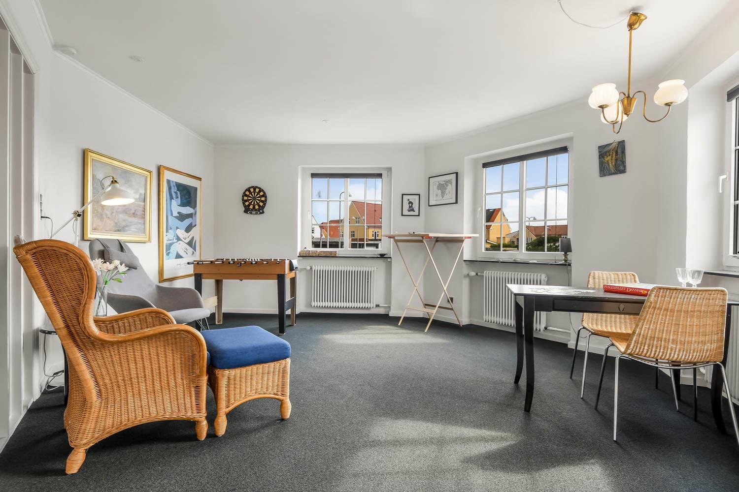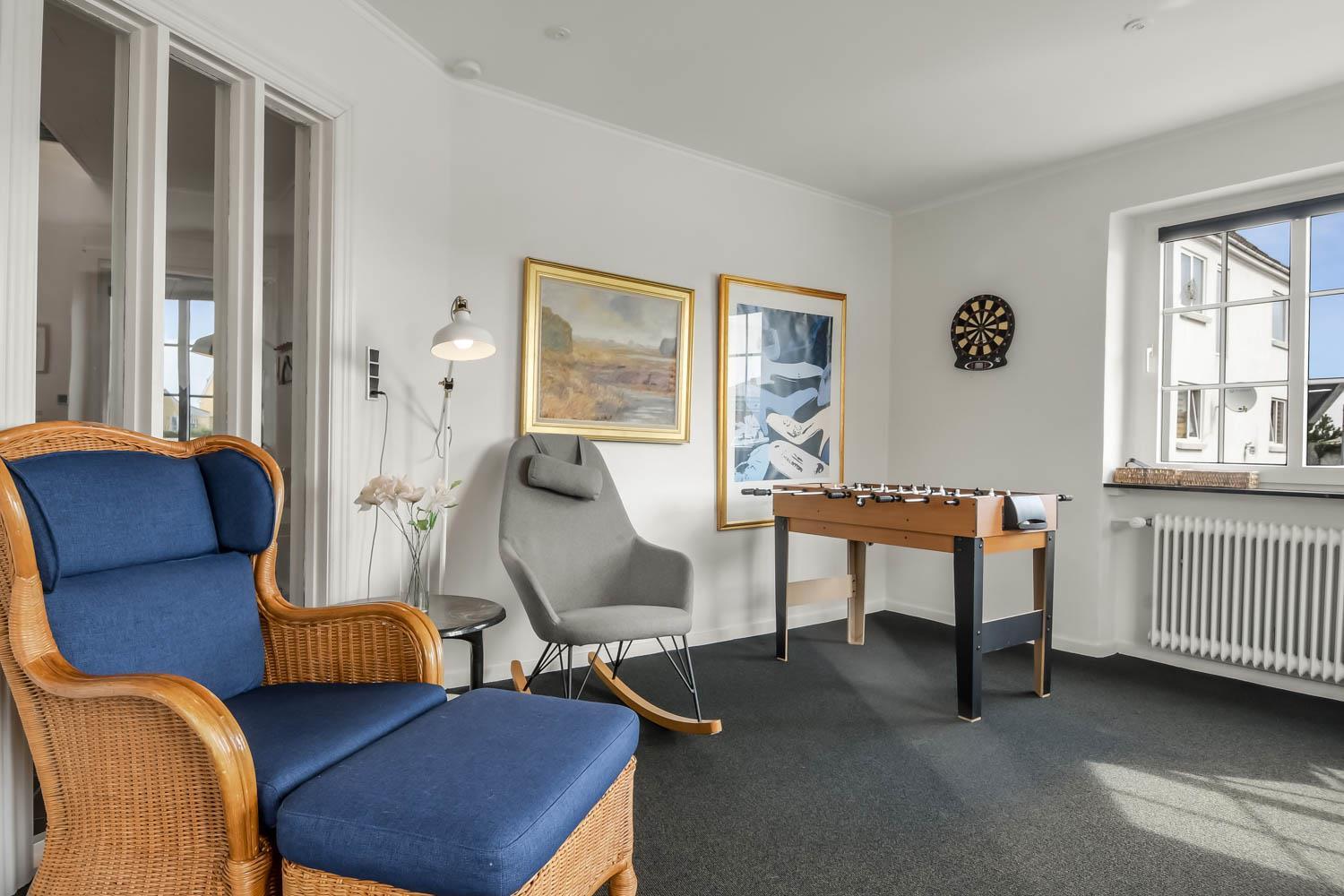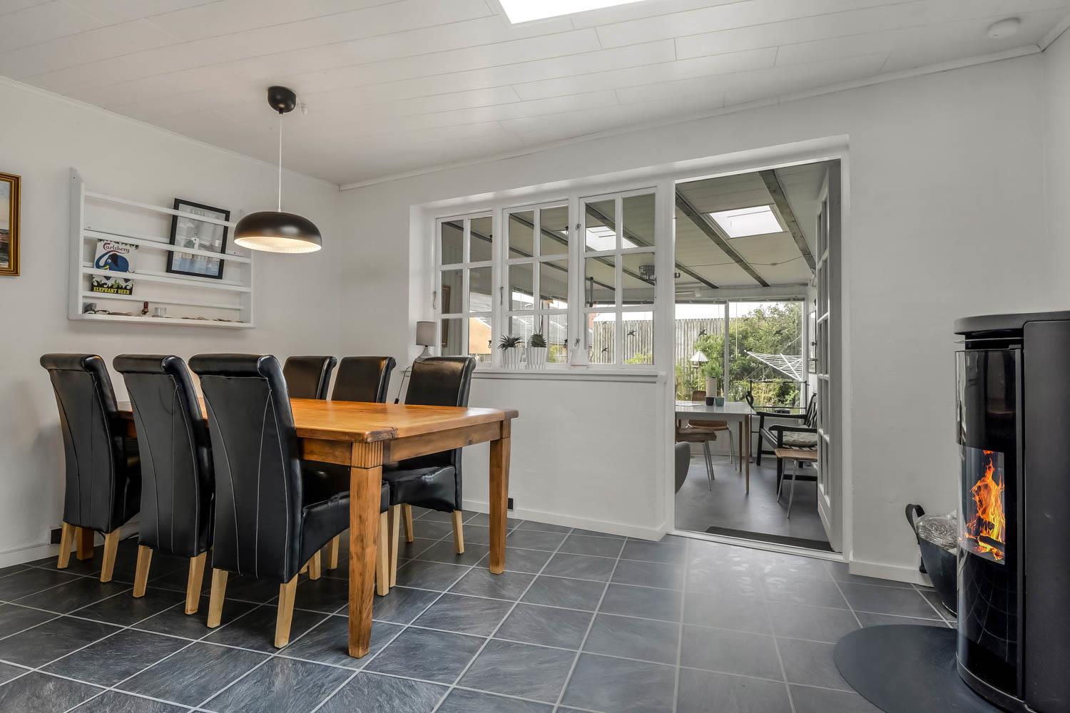 Im Jahr 2015 wurde dieses schöne Haus renoviert. Wenn Sie durch den Haupteingang gehen, werden Sie von einem schönen Flur mit einem Treppenaufgang begrüßt. Vom Flur gibt es Zugang zu einer schönen Küche mit allem an Geschirr und Kochgeschirr. Die Küche ist mit Cerankochfeld, eingebautem Ofen, Abzugshaube, Geschirrspüler, Mikrowelle, Kühl-/Gefrierschrank und Linoleumboden. Schöner Wohnraum, renoviert mit modernen Materialien, eingerichtet mit Polstermöbeln, Ledermöbeln und großem Esstisch, Kaminofen,TV mit dänischen Programmen und Parabolantenne für die deutschen Programme, und einem Chromecast zum Streaming von eigenen Programmen über Apps. 4 Schlafräume: 1DB + 1DB + 2B + 3B. Badezimmer mit Toilette, Dusche, Waschbecken und Fliesenboden. Flur mit extra Tischplatte mit Waschbecken, Waschmaschine und Trockner. Für die kleinsten Gäste gibt es einen Hochstuhl. Nichtraucher-Haus. 2 Haustiere ist erlaubt.
