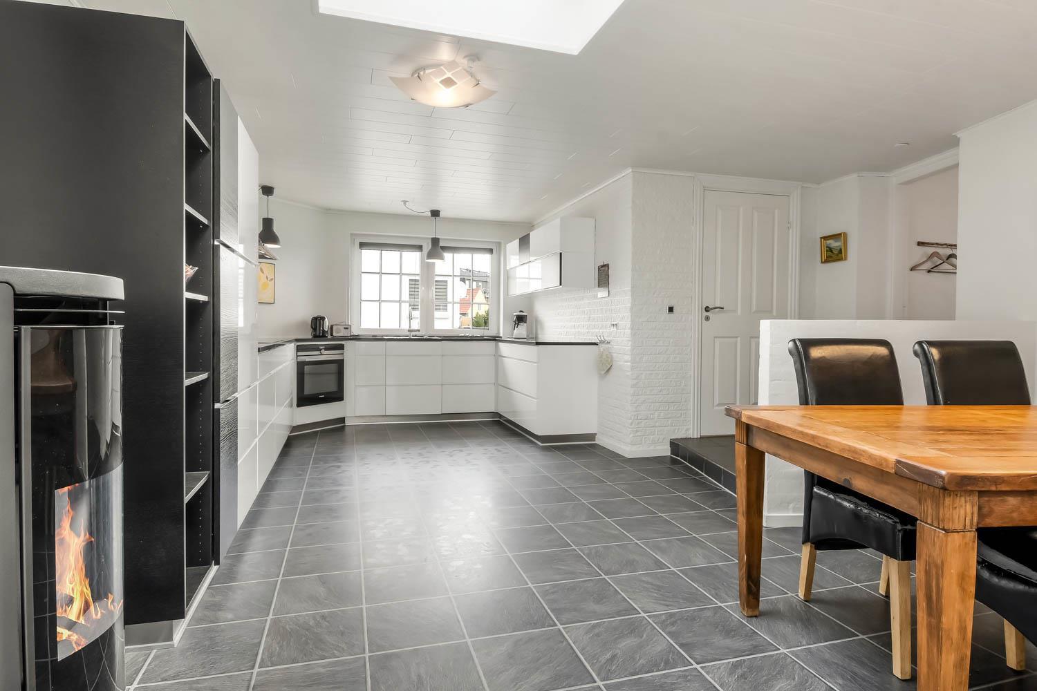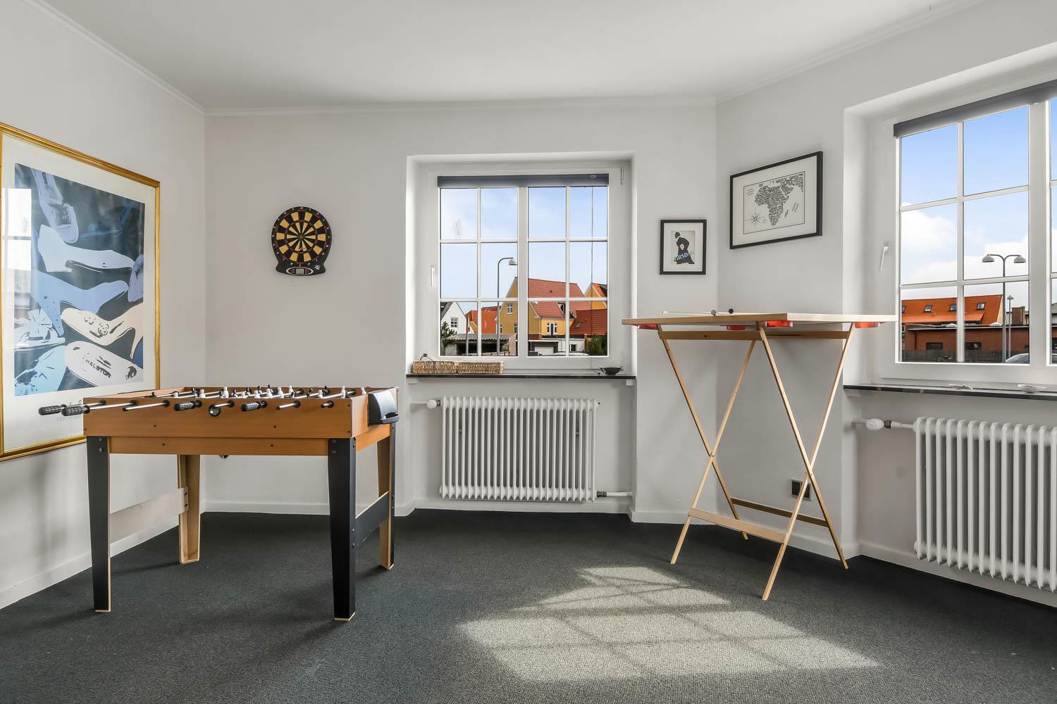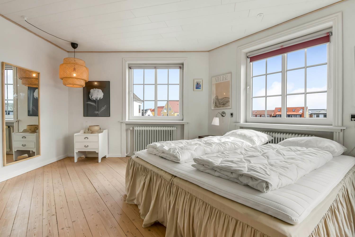 Im Jahr 2015 wurde dieses schöne Haus renoviert. Wenn Sie durch den Haupteingang gehen, werden Sie von einem schönen Flur mit einem Treppenaufgang begrüßt. Vom Flur gibt es Zugang zu einer schönen Küche mit allem an Geschirr und Kochgeschirr. Die Küche ist mit Cerankochfeld, eingebautem Ofen, Abzugshaube, Geschirrspüler, Mikrowelle, Kühl-/Gefrierschrank und Linoleumboden. Schöner Wohnraum, renoviert mit modernen Materialien, eingerichtet mit Polstermöbeln, Ledermöbeln und großem Esstisch, Kaminofen,TV mit dänischen Programmen und Parabolantenne für die deutschen Programme, und einem Chromecast zum Streaming von eigenen Programmen über Apps. 4 Schlafräume: 1DB + 1DB + 2B + 3B. Badezimmer mit Toilette, Dusche, Waschbecken und Fliesenboden. Flur mit extra Tischplatte mit Waschbecken, Waschmaschine und Trockner. Für die kleinsten Gäste gibt es einen Hochstuhl. Nichtraucher-Haus. 2 Haustiere ist erlaubt.
