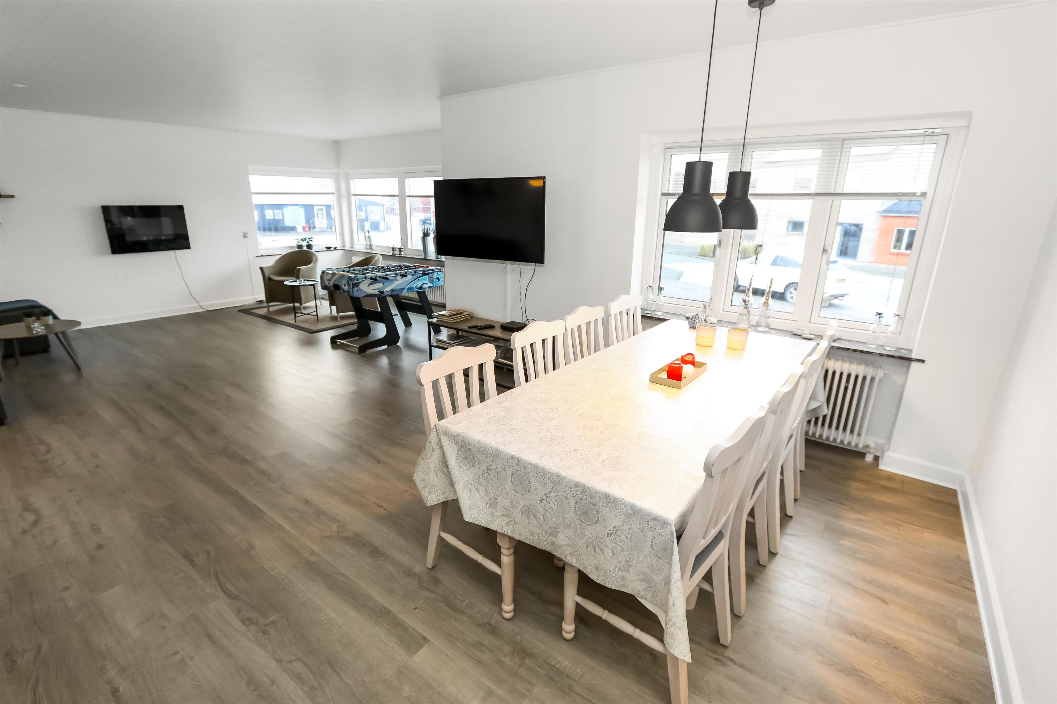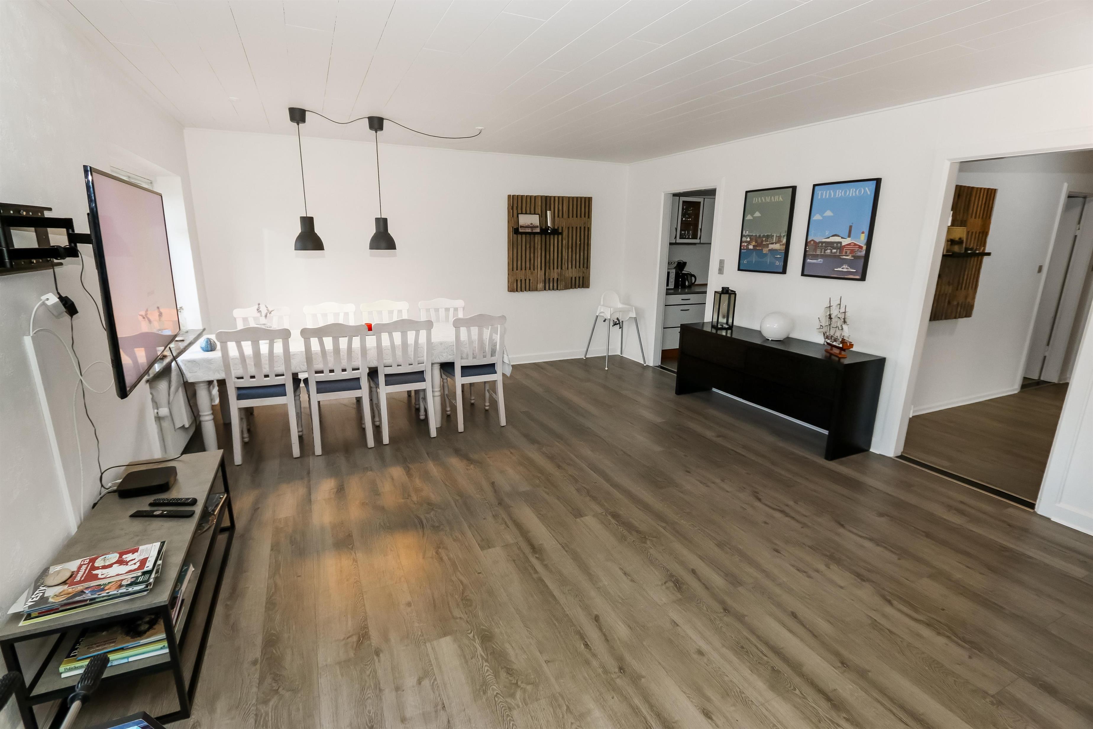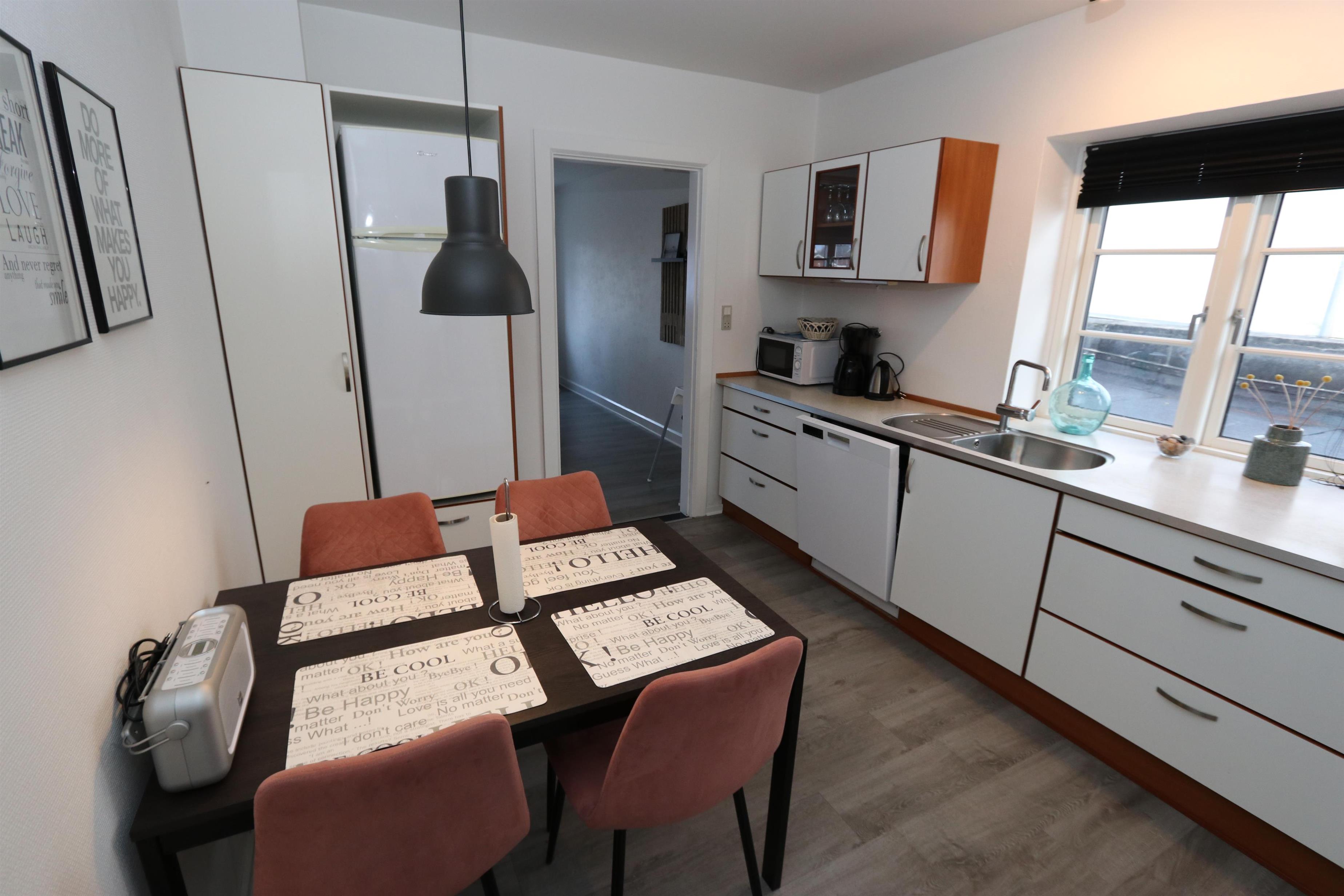 In 2020 wurde dieses Einfamilienhaus renoviert. Wenn Sie durch die Eingangstür kommen werden Sie von einem schönen Flur mit viel Platz begrüßt. Vom Flur gibt es Zugang zur schönen Küche mit allem an Geschirr und Kochgeschirr. Die Küche ist mit Herd mit Ceranfeld-Kochplatten, Abzugshaube, Geschirrspüler, Mikrowelle, Kühlschrank mit großem Gefrierfach und einem extra Esstisch mit Stühlen. Schöner Wohnraum. Renoviert mit modernen Materialien. Polstermöbel und großem Esstisch, TV mit dänischen und deutschen Programmen und Radio. Der Wohnraum hat auch einen Biokamin, der den Wohnraum extra gemütlich macht. In allen Aufenthaltsräumen gibt es praktische und pflegeleichte Holzböden. 4 Schlafräume. 2 von den Schlafräumen sind im Parterre: 1DB + 1DB und 2 Schlafräume sind im Keller. Einladendes Badezimmer mit Toilette, Dusche, Waschbecken und Fliesenboden mit Fußbodenheizung. Vom Flur geht eine Treppe zum neu renovierten Keller mit Wärmepumpe, 2 Schlafräume: 1DB + 1DB, extra Badezimmer mit Toilette und Waschbecken. Flur mit separater Gefriertruhe, Waschmaschine, Trockner und viel Platz in einem gemütlichen Aktivitätsraum mit Pooltisch und Dart. Nichtraucher Haus. 1 Haustier ist erlaubt.