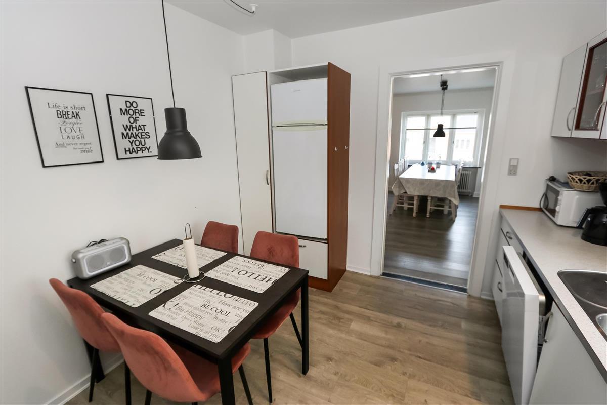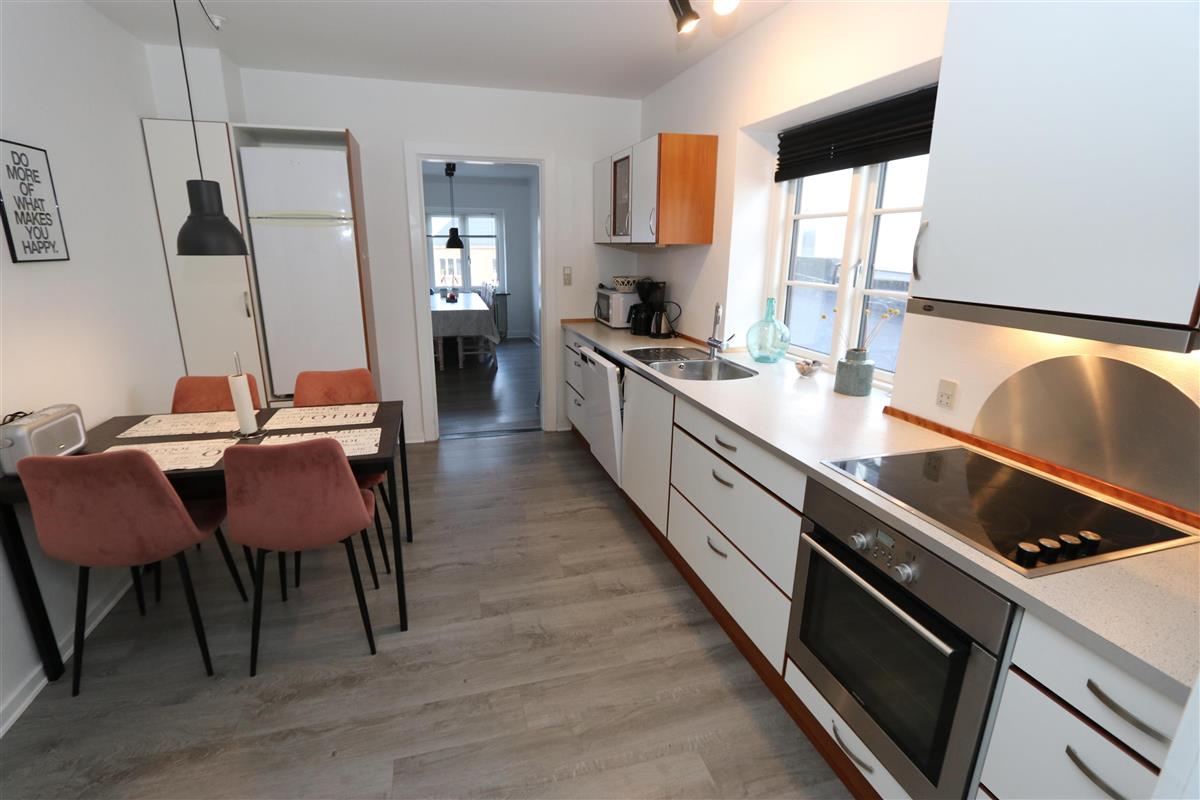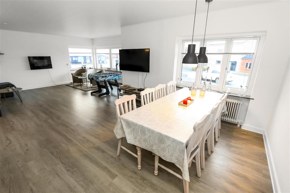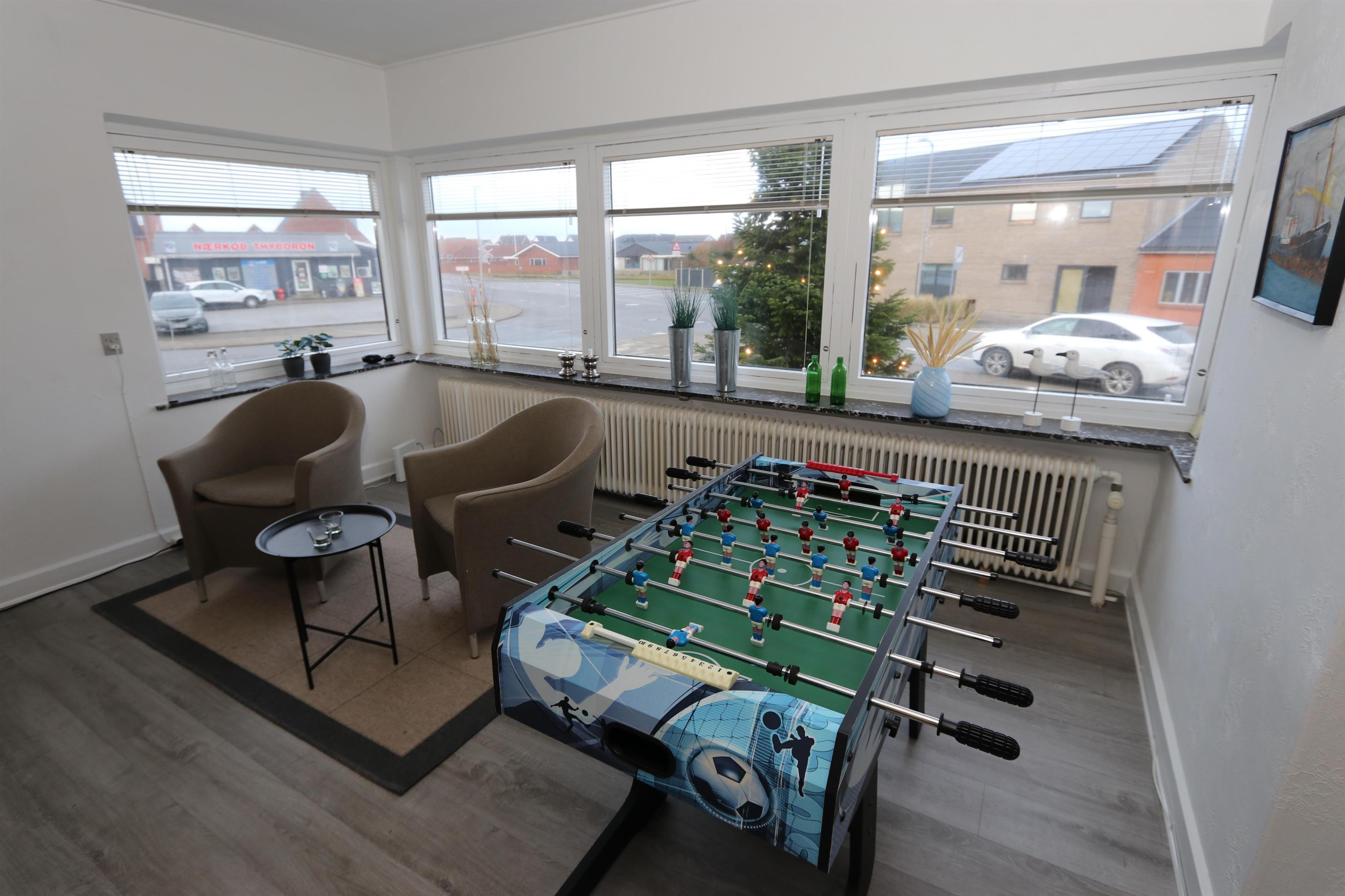 In 2020 wurde dieses Einfamilienhaus renoviert. Wenn Sie durch die Eingangstür kommen werden Sie von einem schönen Flur mit viel Platz begrüßt. Vom Flur gibt es Zugang zur schönen Küche mit allem an Geschirr und Kochgeschirr. Die Küche ist mit Herd mit Ceranfeld-Kochplatten, Abzugshaube, Geschirrspüler, Mikrowelle, Kühlschrank mit großem Gefrierfach und einem extra Esstisch mit Stühlen. Schöner Wohnraum. Renoviert mit modernen Materialien. Polstermöbel und großem Esstisch, TV mit dänischen und deutschen Programmen und Radio. Der Wohnraum hat auch einen Biokamin, der den Wohnraum extra gemütlich macht. In allen Aufenthaltsräumen gibt es praktische und pflegeleichte Holzböden. 4 Schlafräume. 2 von den Schlafräumen sind im Parterre: 1DB + 1DB und 2 Schlafräume sind im Keller. Einladendes Badezimmer mit Toilette, Dusche, Waschbecken und Fliesenboden mit Fußbodenheizung. Vom Flur geht eine Treppe zum neu renovierten Keller mit Wärmepumpe, 2 Schlafräume: 1DB + 1DB, extra Badezimmer mit Toilette und Waschbecken. Flur mit separater Gefriertruhe, Waschmaschine, Trockner und viel Platz in einem gemütlichen Aktivitätsraum mit Pooltisch und Dart. Nichtraucher Haus. 1 Haustier ist erlaubt.