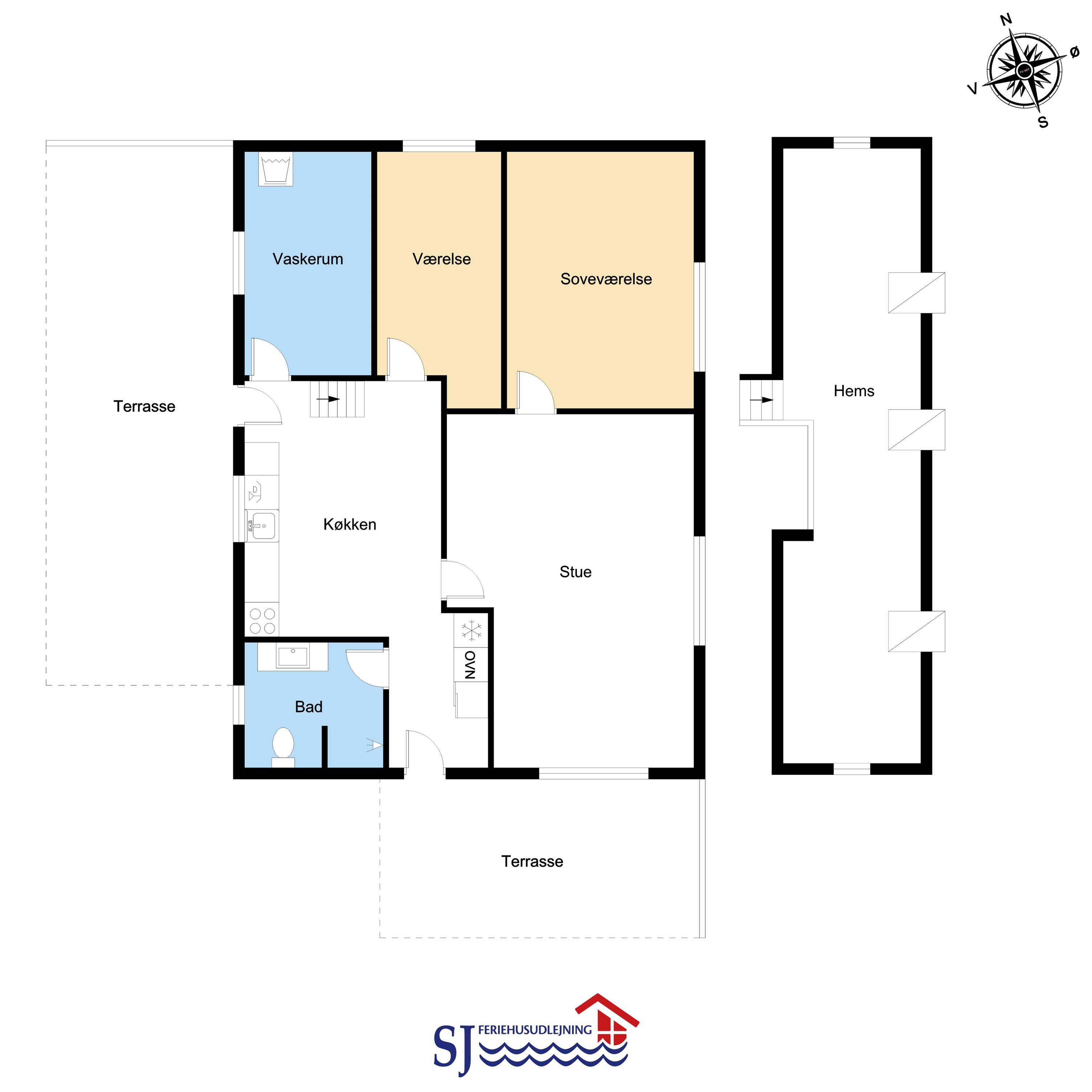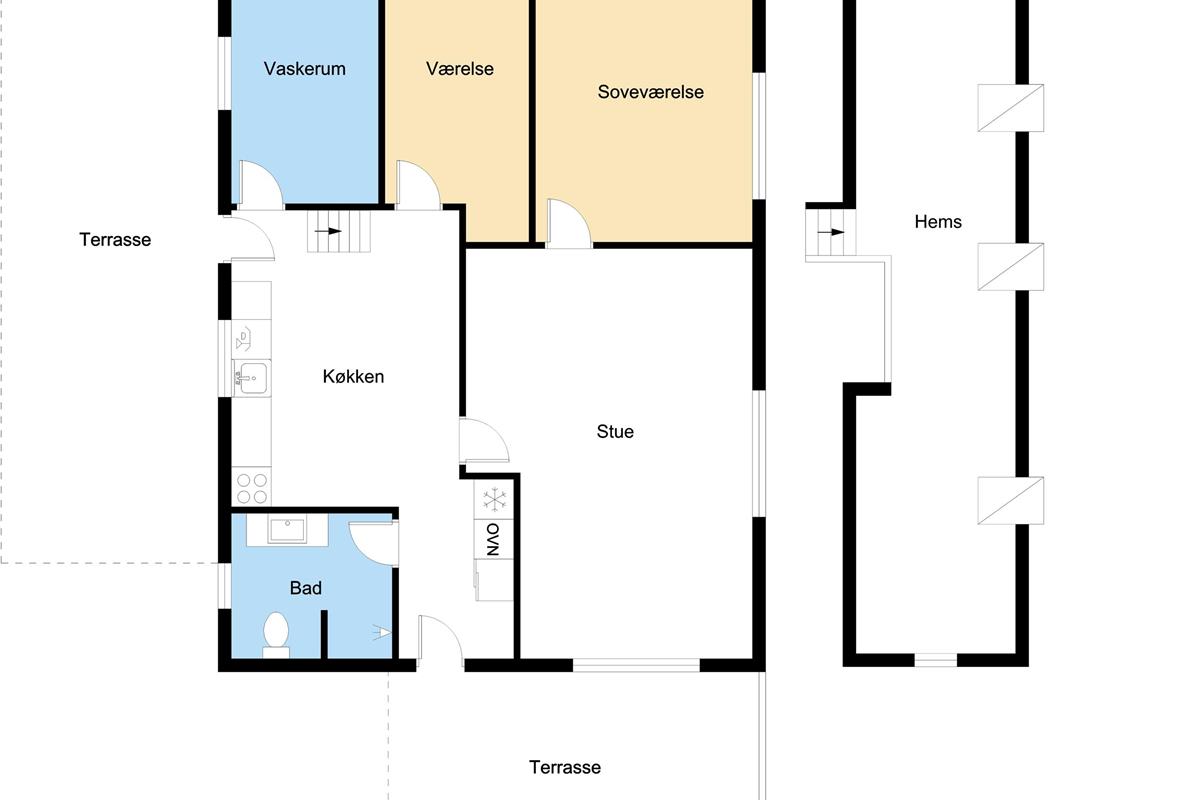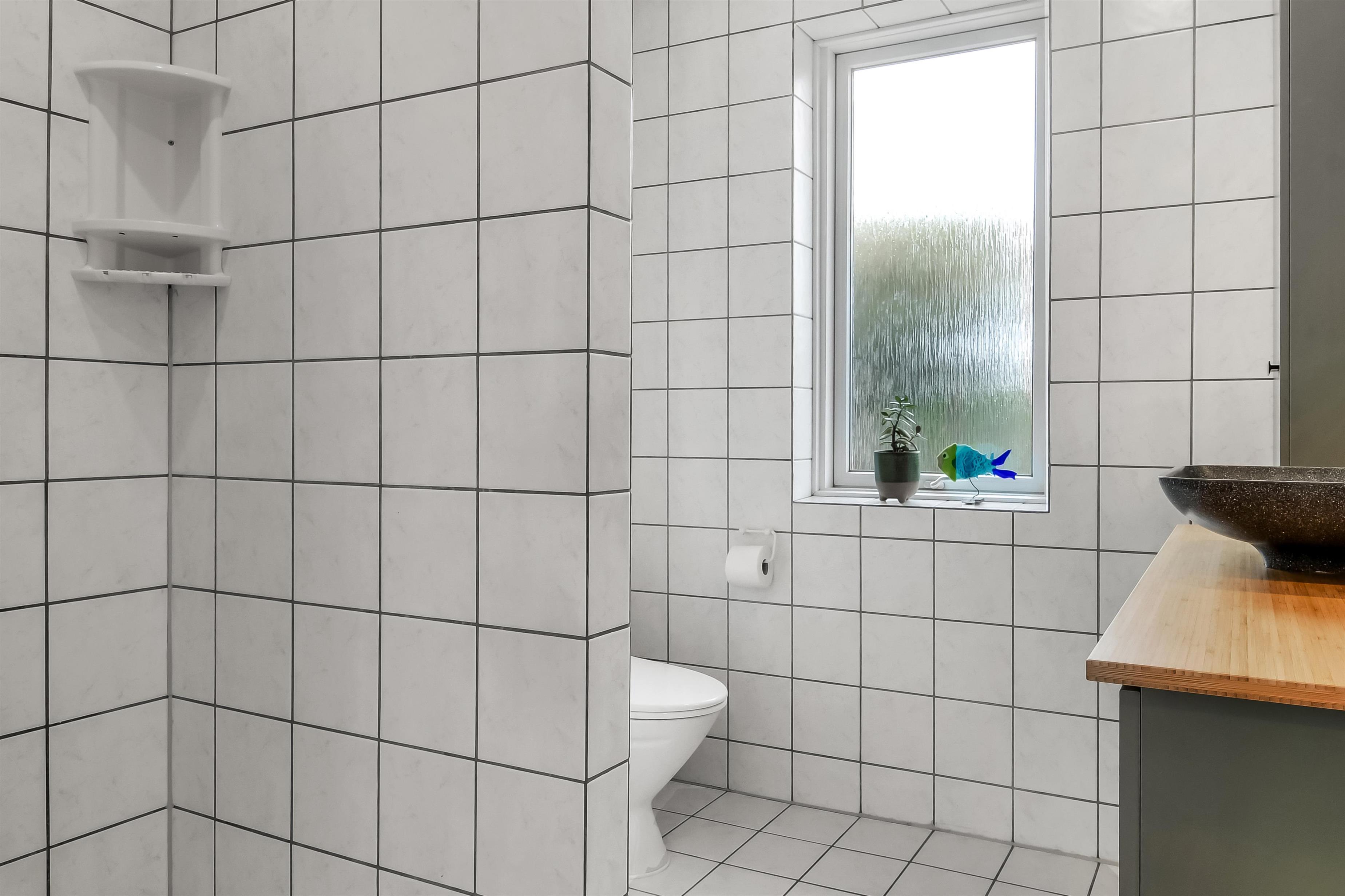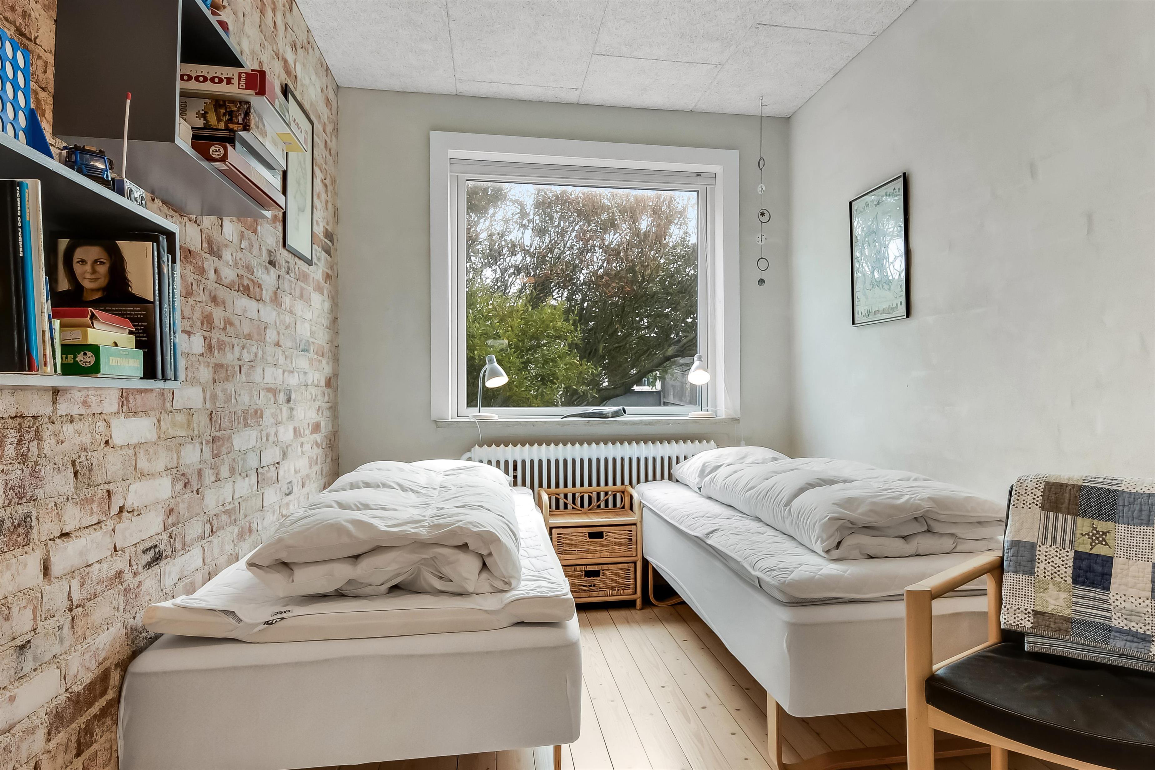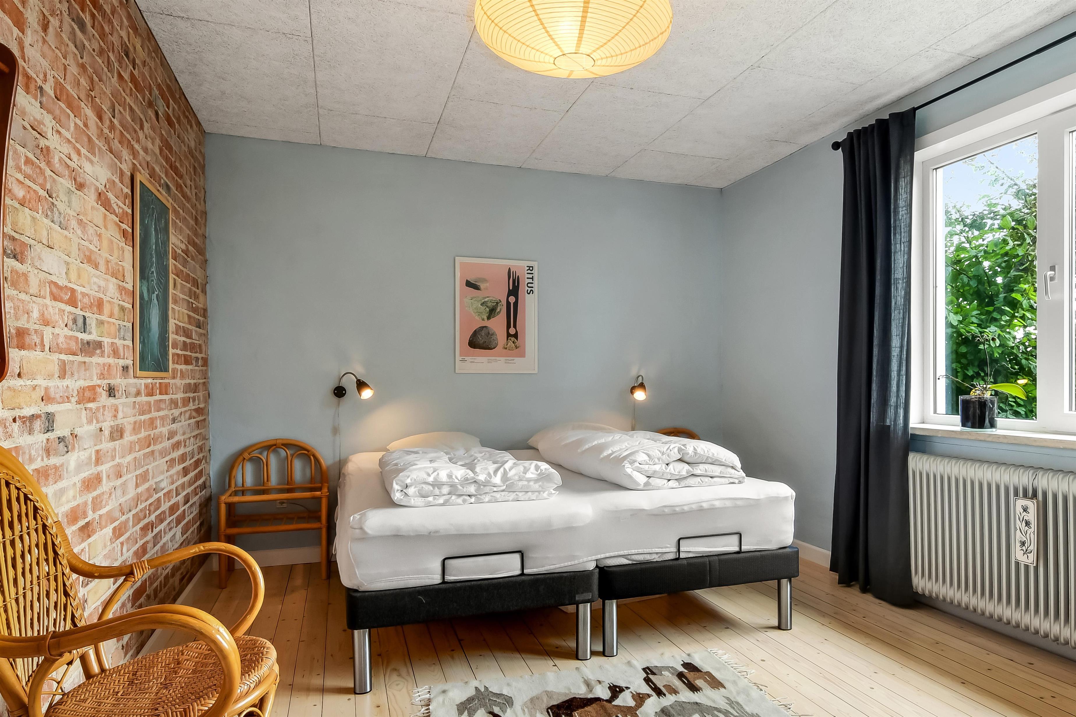Die Einrichtung des Hauses verfügt über einen praktischen Flur mit Waschmaschine und extra Ablageplatz. Die Küche ist neu und der Esstisch steht an der Küche, damit es einfach ist, das Essen zum Tisch zu bringen. Die Küche hat einen Herd mit Induktionskochplatte, eingebauten Ofen, Kühlschrank und ein Gefrierschrank mit 150 l, Geschirrspüler, Airfryer und Fußbodenheizung. In der Küche können Sie die Balken an der Decke sehen. Schöner Wohnraum mit Holzboden, Ledermöbeln, TV mit Parabol-Antenne und deutschen und dänischen Programmen, Chromecast mit der Möglichkeit für Streaming von eigenen Programmen, für die Sie selber ein Abonnement haben. Im Wohnraum gibt es auch eine Fußbodenheizung. 2 Schlafräume: 2B + 1DB und ein offener Schlafboden mit 2 Schlafmöglichkeiten. Von der Küche geht es über eine steile Treppe zum 1. Stock. Schönes Badezimmer mit Toilette, Dusche, Waschbecken und Fußbodenheizung.
