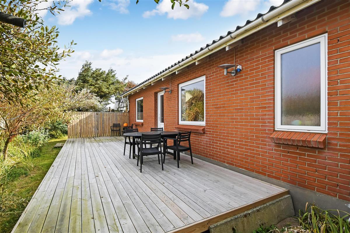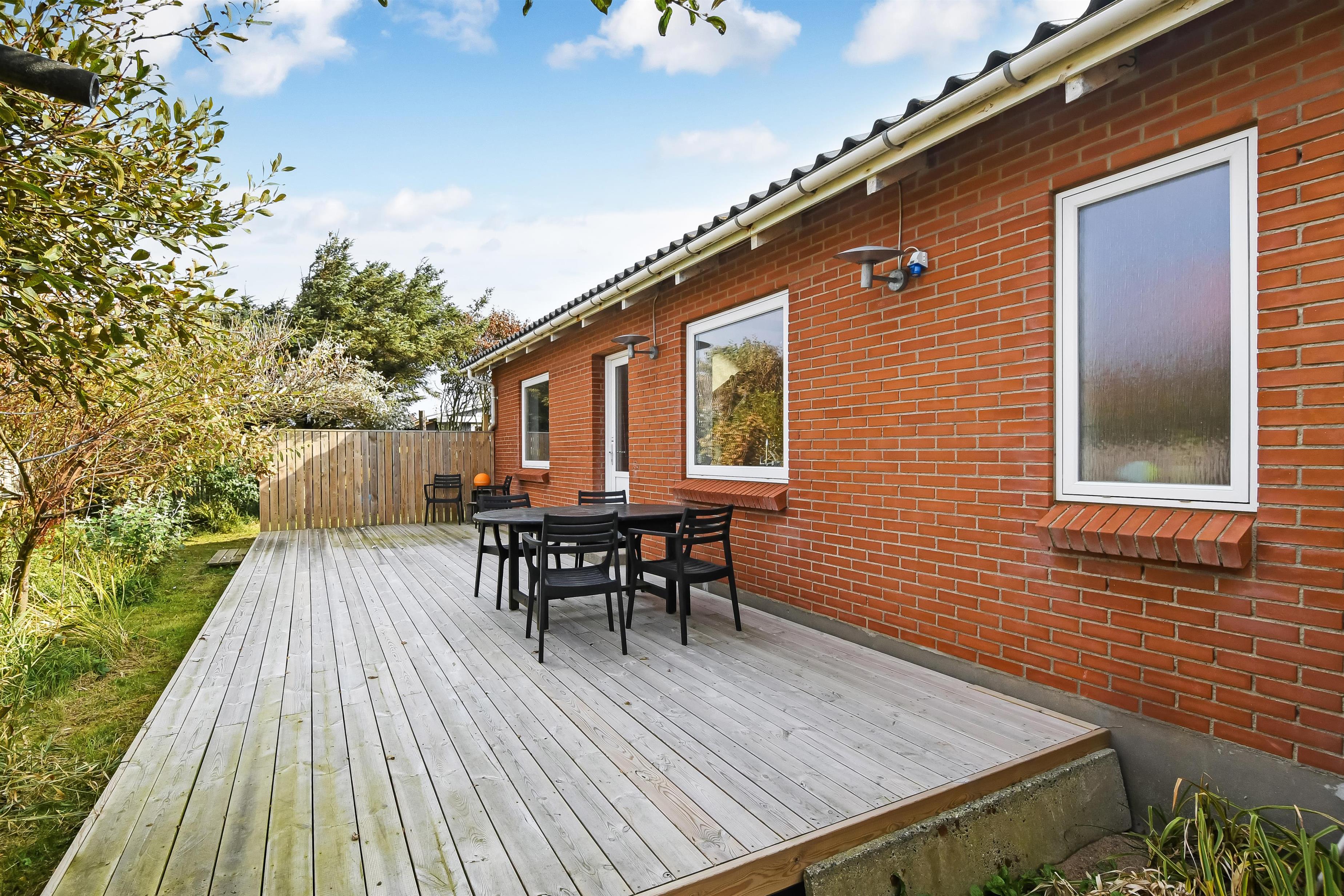 Das Grundstück des Hauses liegt in einer ruhigen Umgebung dicht am Strand und Einkaufsmöglichkeit. Die Terrasse ist mit Gartenmöbeln für alle Bewohner des Hauses ausgestattet. Vom Ferienhaus erreichen Sie zu Fuß auch einfach die Attraktionen in Thyborøn. Besuchen Sie den Hafen, Fischereiauktionen in der Saison oder entspannen Sie sich am kinderfreundlichen Strand, der bloß 400 m vom Haus entfernt ist, wo die Nordsee auf den Limfjord trifft. Der Strand am Ferienhaus ist ideal zum Angeln, Schnorcheln, Tauchen und Drachen steigen lassen oder Bernsteine suchen. Die Bunker an der Westküste entlang können Sie erkunden und in der Nähe gibt es ein Vogelschutzgebiet, wo Sie die Natur das ganze Jahr über erleben können.