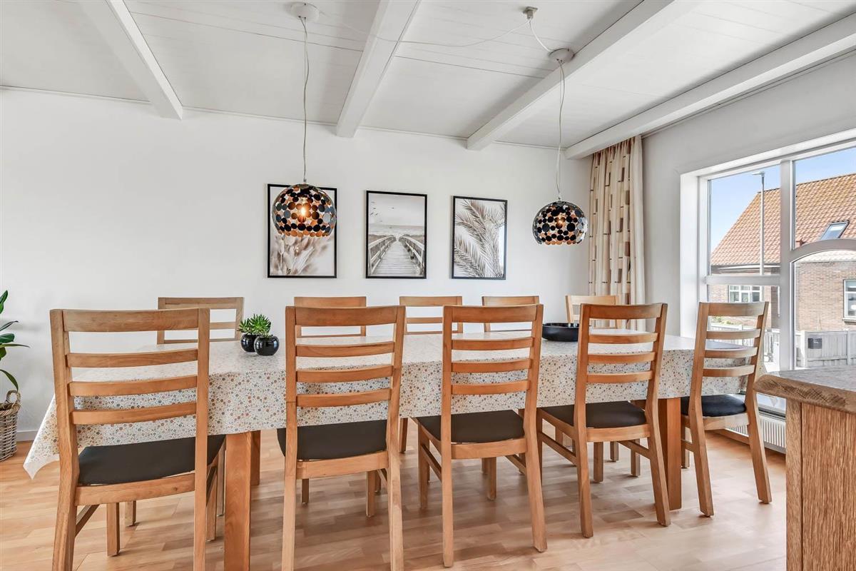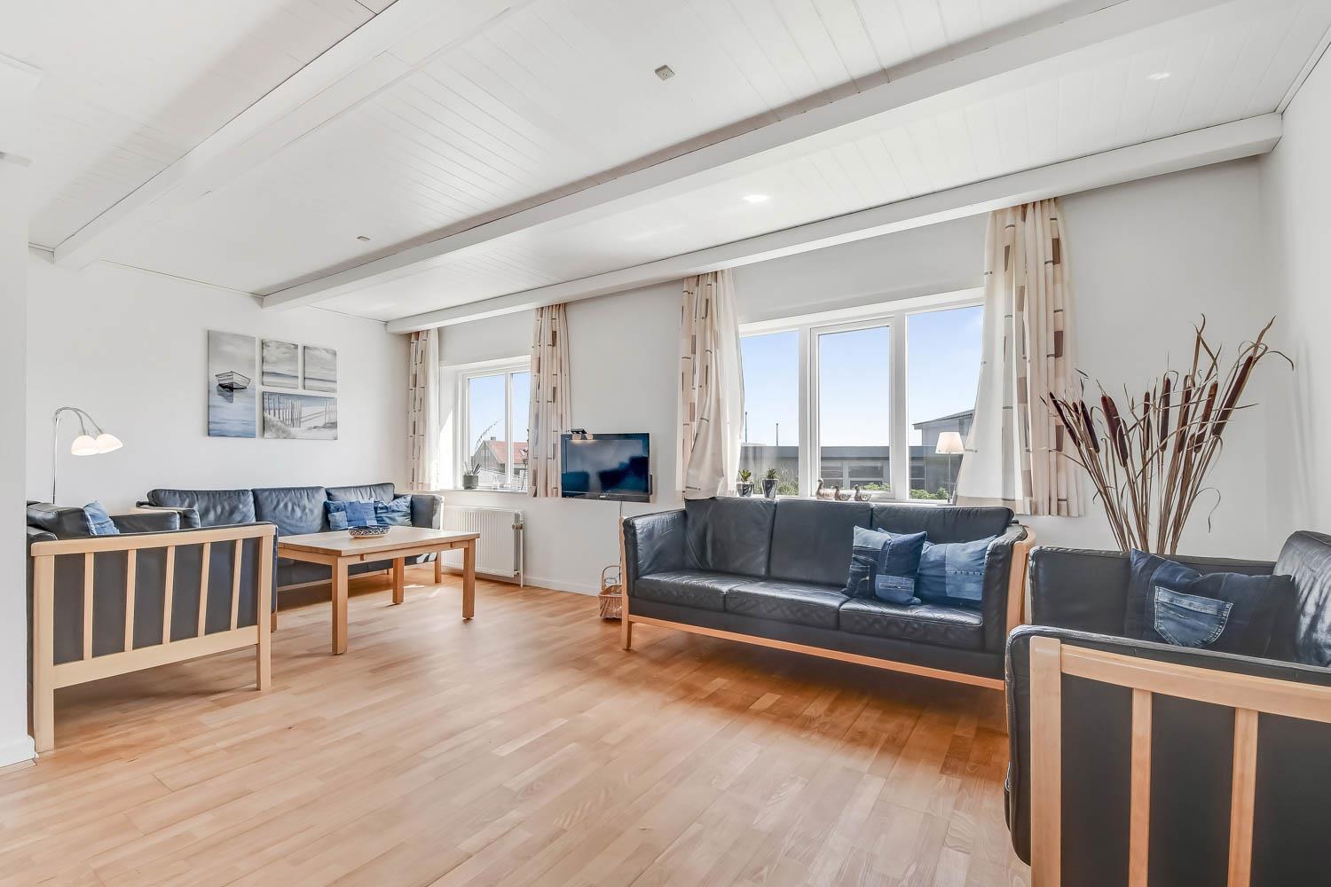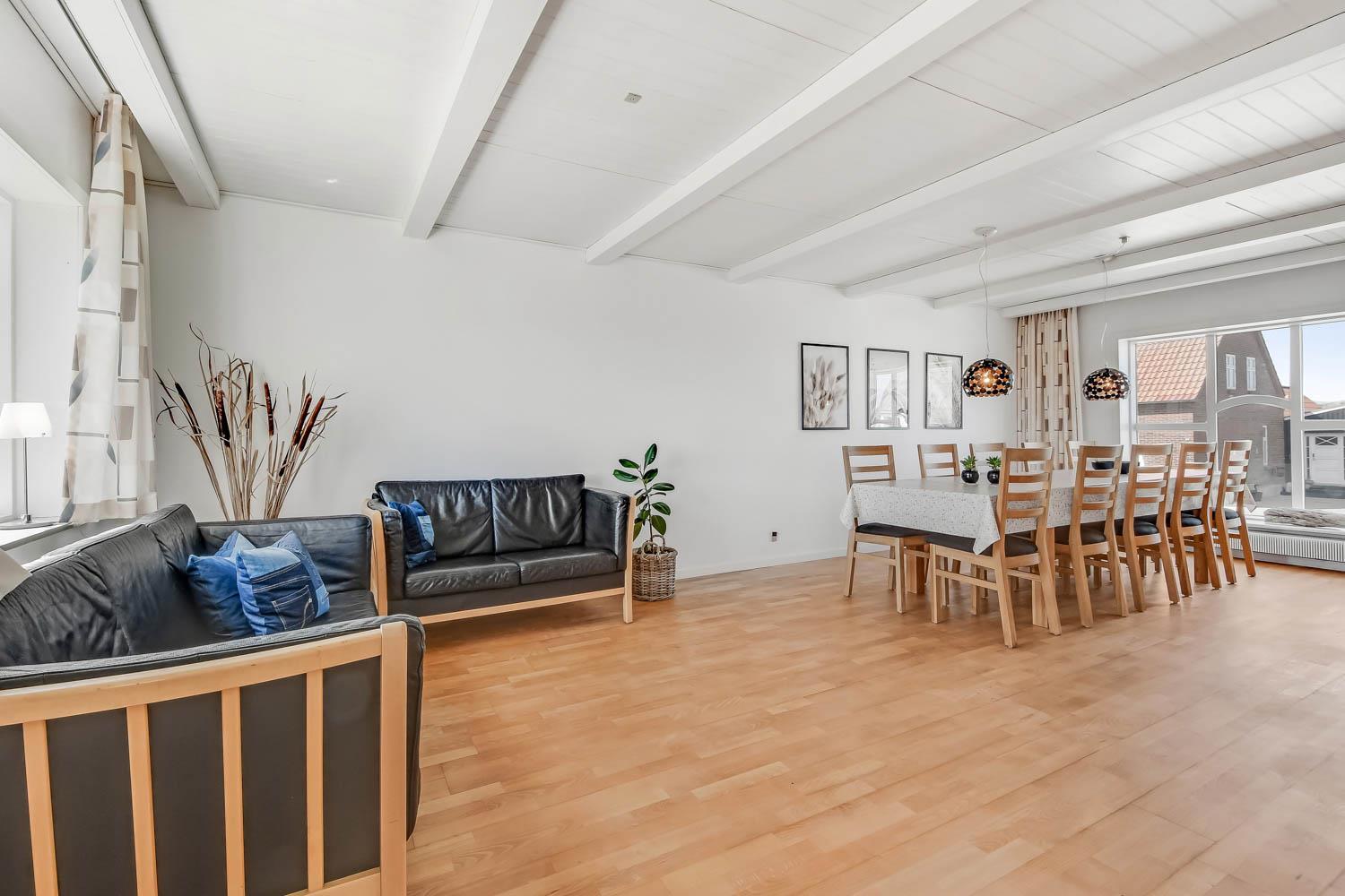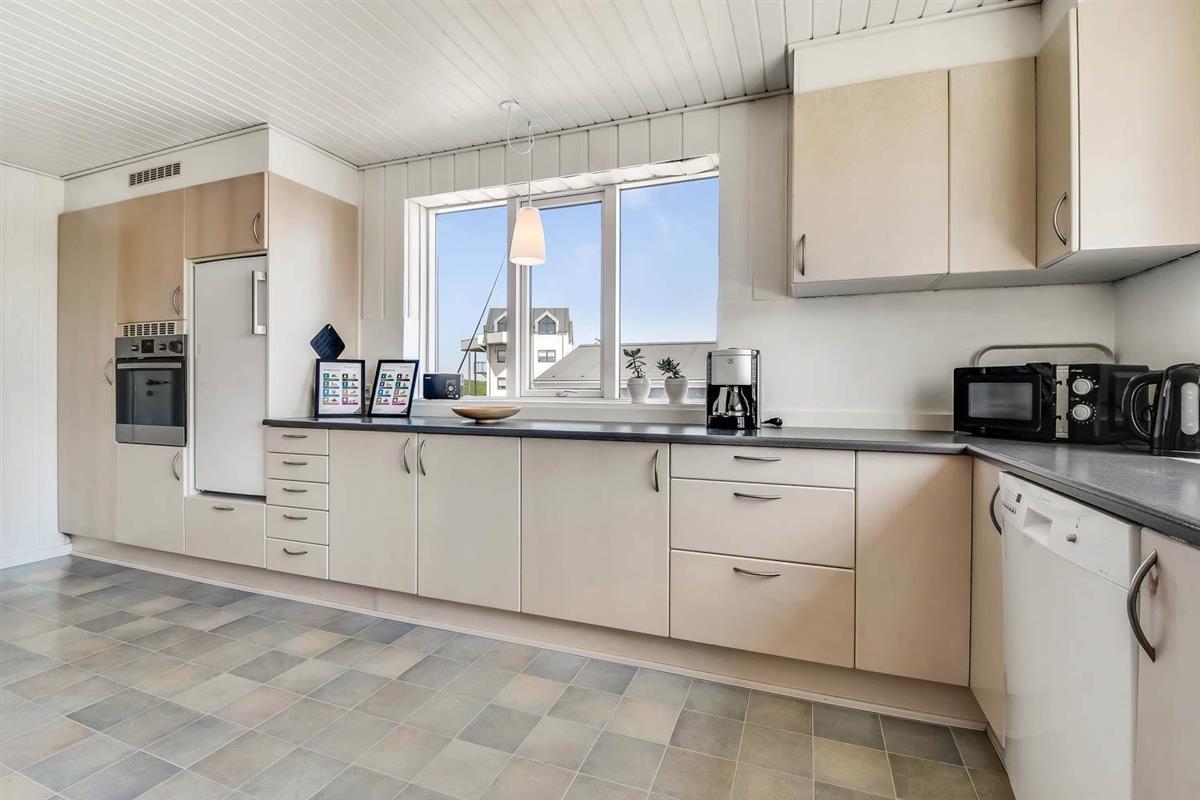 147 qm großes Ferienhaus, im Jahr 2024 renoviert. Vom Wohnraum gibt es einen tollen Blick zu den Dünen. Der Wohnraum ist mit Ledermöbeln, TV mit dänischen und deutschen Programmen, Radio und Esstisch eingerichtet. Die Küche ist mit Herd mit Ceranfeld-Kochplatten, Abzugshaube, Mikrowelle, Geschirrspüler und Kühlschrank und einem extra Esstisch mit Bank ausgestattet. Neben der Küche gibt es einen praktischen hinteren Flur mit separatem Gefrierabteil, Platz für Garderobe und Ausgang zum Garten. Toilette mit Fliesenboden, Toilette, Waschbecken. Es gibt praktische pflegeleichte Böden im ganzen Haus. Nichtraucher-Haus. Max. 2 Haustiere sind erlaubt. Das Haus wird mit Fernheizung beheizt und Sie zahlen einen festen Betrag pro Woche für die Fernheizung. Preis Fernheizung pro Woche vom 1.5.-31.10 42 EUR und vom 1.11.-30.4. 56 EUR.