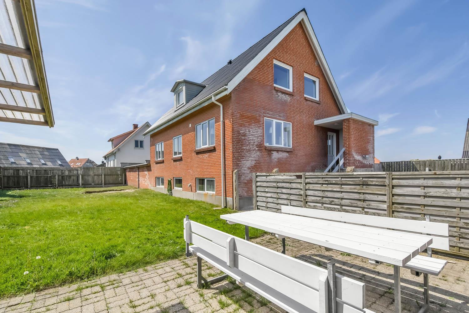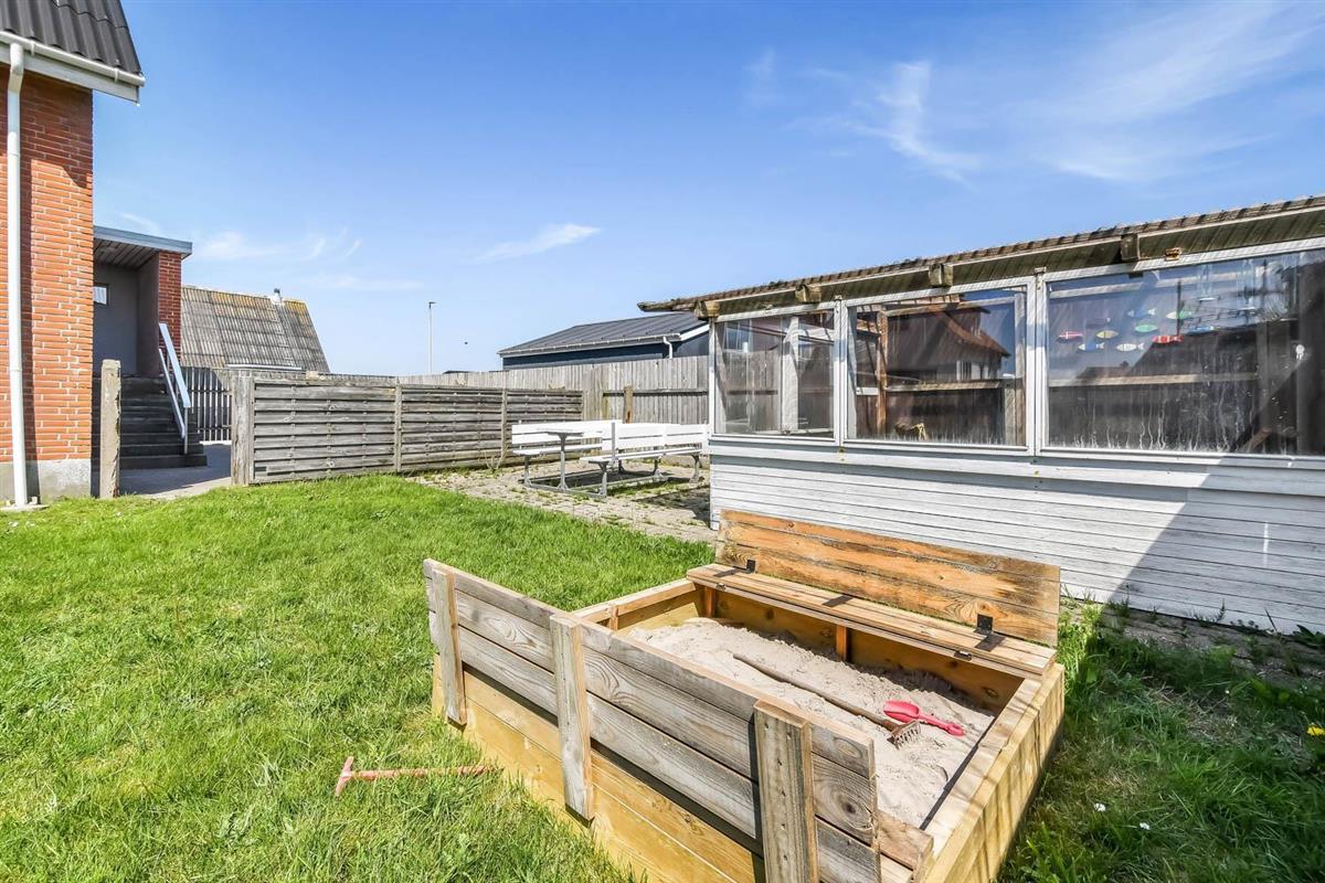 Das Haus liegt auf einem 505 qm großen, gepflegten und eingezäunten Grundstück. Vom hinteren Flur gibt es Ausgang zur Terrasse/Garten. In der Ecke vom Haus gibt es ein schönes Gartenhaus. Das Gartenhaus ist ohne Heizung, aber sobald die Sonne auf dem Himmel steht, ist es eine tolle Stelle um dort zu sitzen und eine Tasse Kaffee zu genießen. Es gibt viele Gartenmöbel und Grill, die Sie nach Bedarf umstellen können, damit Sie einen Platz in der Sonne finden können. Vom Haus aus können Sie in Thyborøn alle Attraktionen und Restaurants zu Fuß erreichen. Machen Sie eine Hafenrunde und genießen Sie das Leben am Hafen; in der Saison können Sie die Fischauktion besuchen oder einen von der Nordsee kinderfreundlichen Strand besuchen, gleich da wo der Nordsee in den Limfjord geht. Der Strand liegt etwa 150 Meter vom Haus entfernt. Dort können Sie angeln, schnorcheln und tauchen, Drachen steigen lassen und Bernsteine suchen. Der Strand ist dafür sehr gut geeignet. Oder unternehmen Sie eine Wanderung auf dem Deich oder am Strand entlang. Hier kann man stundenlang Bunker anschauen und viele sind auch geöffnet, damit man reingehen kann, vergessen Sie die Taschenlampe nicht. Vom Haus aus unter 1 km in Richtung Süd kommen Sie an das Vogelschutzgebiet. Hier können Sie das ganze Jahr die Natur in Ruhe genießen. Etwa 100 m vom Haus liegt ein neugebauter Skaterpark und das Museum Sneglehuset. Das ganze Haus ist mit Schnecken verkleidet und einen Besuch wert.