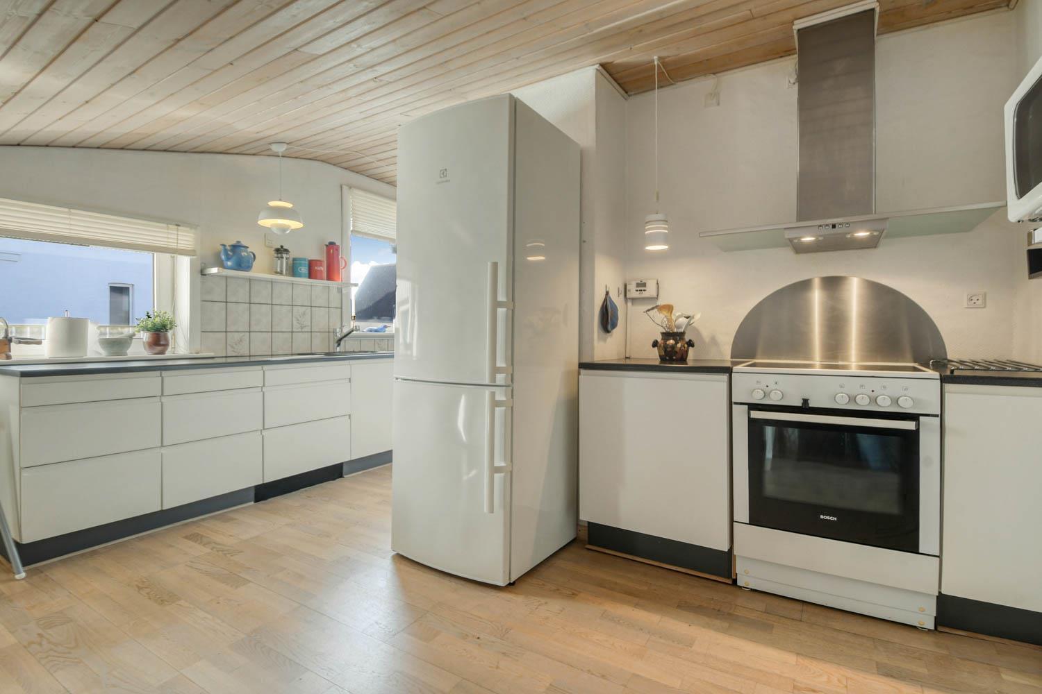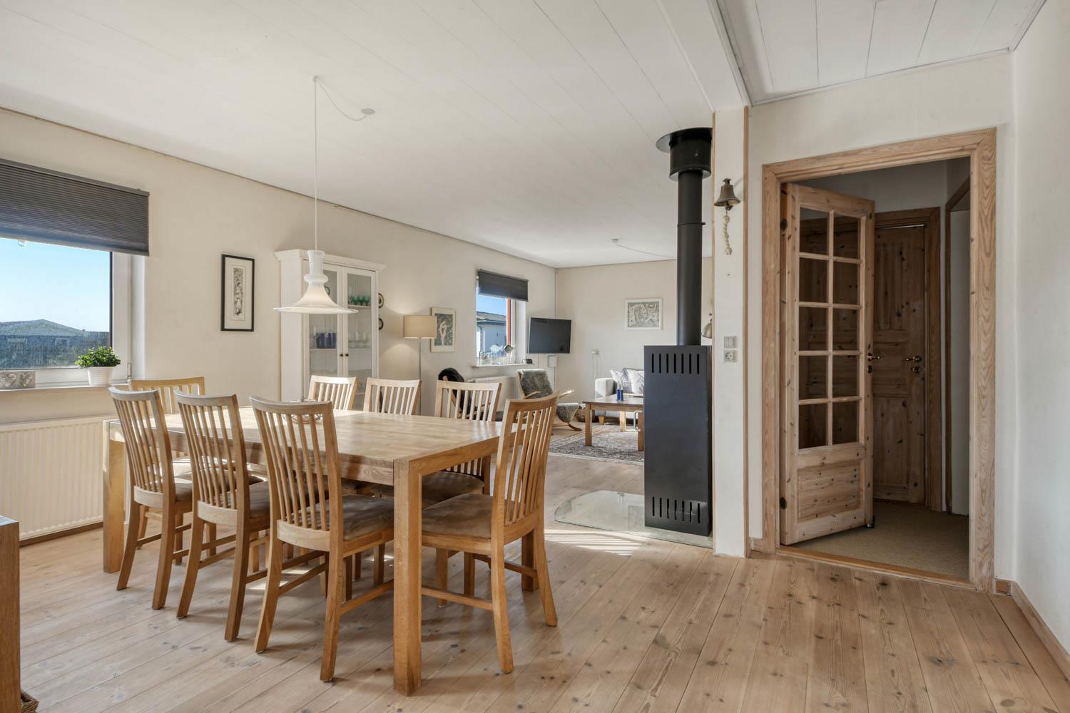 Sehr gemütlich eingerichtetes Ferienhaus aus Stein gebaut, bloß 200 m von der Nordsee entfernt. Sehr gemütlicher Wohnraum mit Polstermöbeln und Kaminofen; es gibt TV mit Kabel-TV, Chromecast für Streaming von eigenen Programmen, für die Sie selber ein Abonnement haben. Es gibt auch freies WLAN im Haus. Große und geräumige Küche mit E-Herd, Abzugshaube, Mikrowelle, Geschirrspüler, Waschmaschine und Kühlschrank mit Gefrierfach. 3 gute Schlafräume: 1DB + 1DB + 2B. Badezimmer mit Toilette, Waschbecken und Dusche. Für die kleinsten Gäste gibt es einen Kinderstuhl und Kinderbett. Rauchen ist nicht gestattet. 1 Haustier ist erlaubt.
