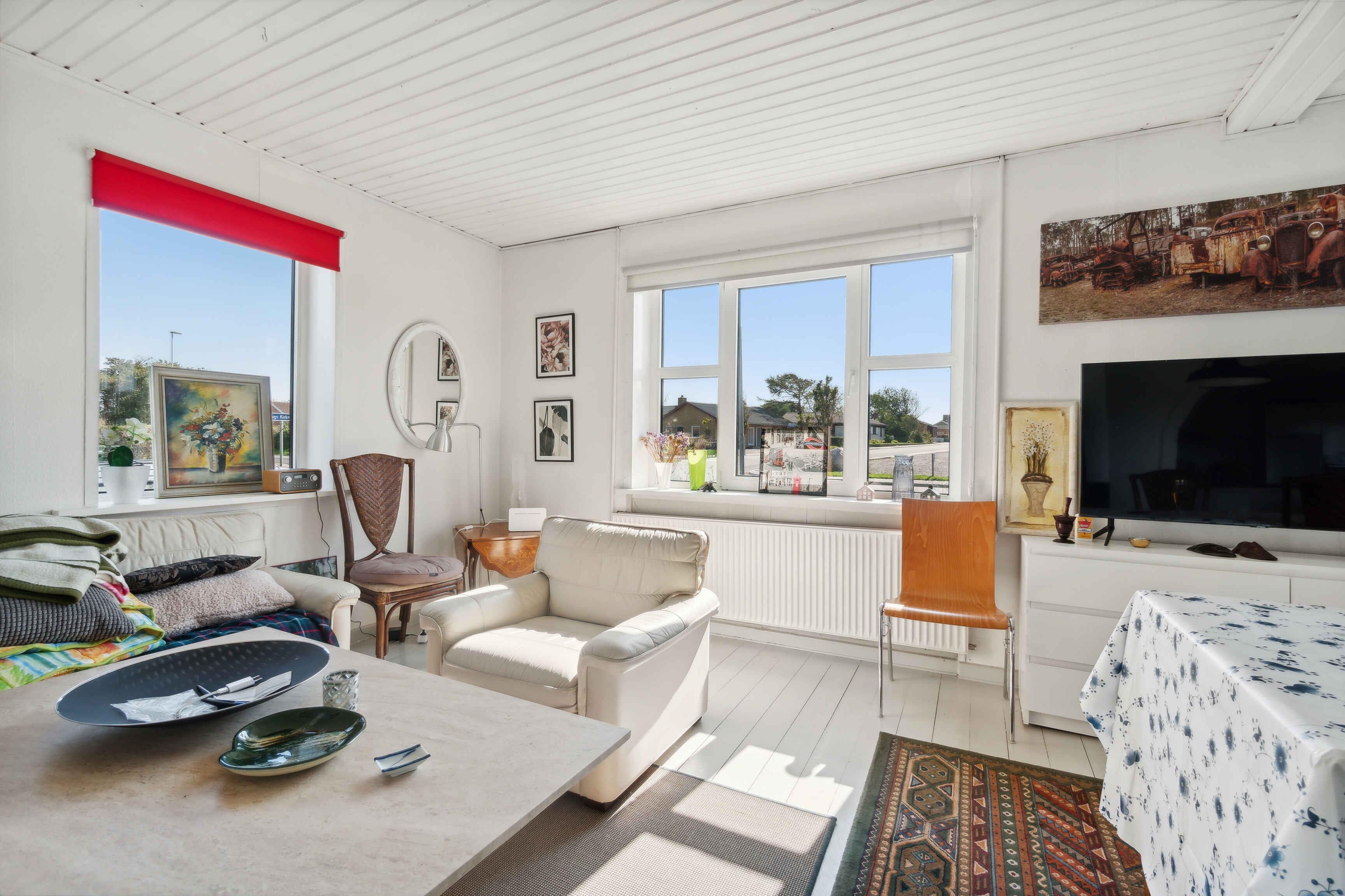 Welkom in dit charmante zomerhuis, waar elk detail uitnodigt tot ontspanning en rust. Een perfect toevluchtsoord van de drukte van alledag. Het omliggende landschap biedt ongerepte natuur, waar bos en strand samenkomen. Perfect voor lange wandelingen en verfrissende duiken. De omgeving is ideaal voor buitenactiviteiten zoals fietsen, wandelen en picknicken. De natuur nodigt uit tot spel en avontuur voor het hele gezin. Het knusse zomerhuis heeft twee slaapkamers, perfect voor een gezinsvakantie of een romantisch uitje. Met vier slaapplaatsen is er ruimte voor iedereen. De 102 vierkante meter bieden een lichte en uitnodigende sfeer met moderne voorzieningen en comfort. Een thuis weg van huis. Het zomerhuis is gelegen in Thyholm, een uniek vakantieparadijs dat de schoonheid van het Noord-Jutse landschap combineert met de charme van de Noordzee. Het gebied biedt prachtige natuur, met uitgestrekte velden, bossen en pittoreske dorpjes verspreid over het landschap. Voor natuurliefhebbers is Thyholm een waar paradijs. Hier kunt u de prachtige duinlandschappen en brede zandstranden verkennen, perfect voor lange wandelingen of zonnige dagen aan zee. Het is ook een ideale plek voor vogelliefhebbers en natuurliefhebbers, met een rijke fauna en beschermde natuurgebieden. Op cultureel gebied heeft Thyholm ook veel te bieden. Bezoek historische bezienswaardigheden zoals de ruïnes van het klooster in Ørslev Kloster of ervaar de lokale cultuur en gastronomie in de gezellige boerderijwinkels en restaurants. Of u nu op zoek bent naar avontuur in de natuur, rust en ontspanning aan het strand of wilt genieten van het lokale culturele leven, Thyholm is een fantastische plek om uw vakantie door te brengen.
