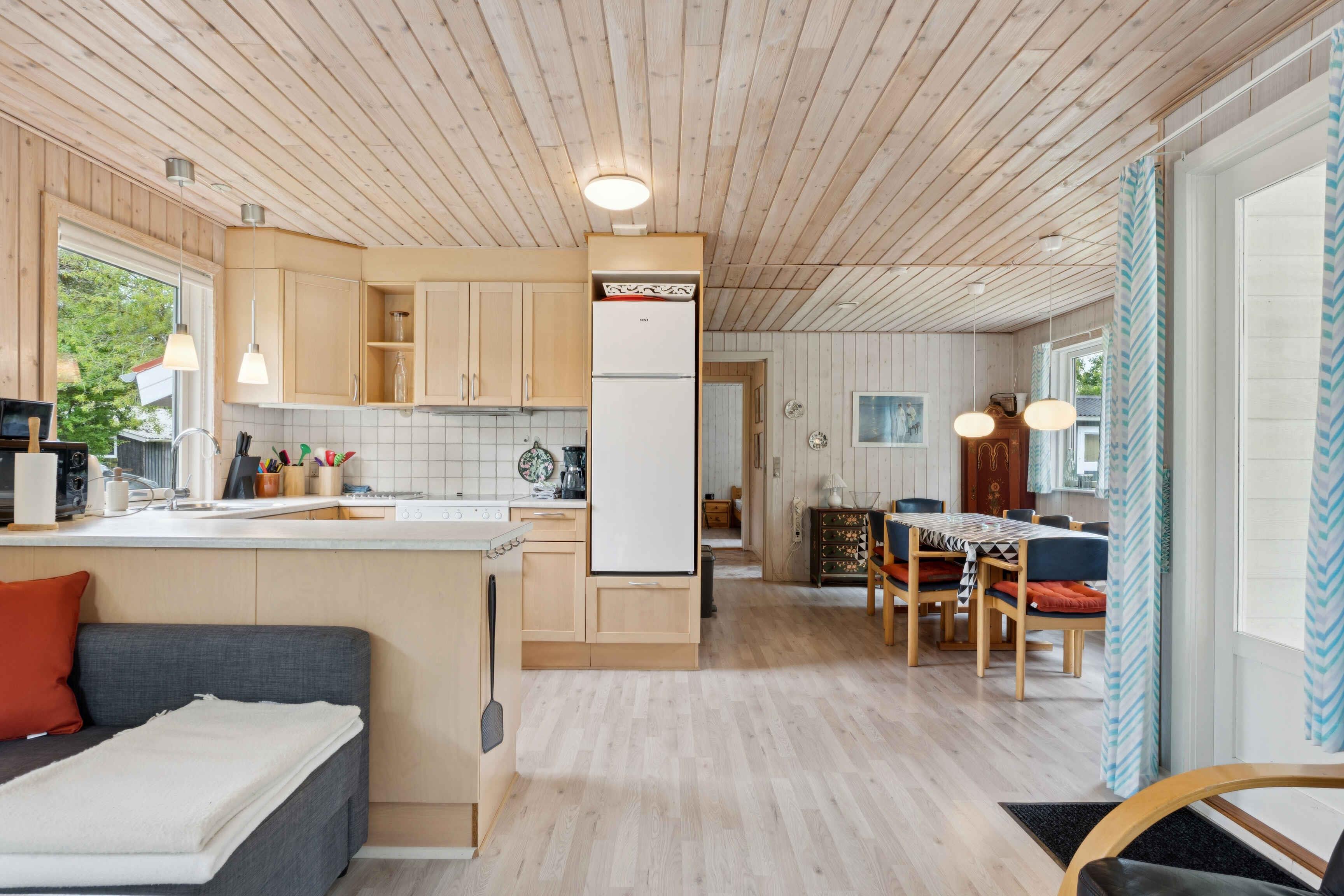 Deze gezinsvriendelijke vakantiewoning van 80 m2 is ideaal voor een ontspannen vakantie. Het huis heeft drie slaapkamers en zes slaapplaatsen, wat voldoende ruimte biedt voor zowel familie als vrienden. Het huis is uitgerust met een houtkachel, die voor een gezellige sfeer zorgt op koele avonden. Er is ook internet, zodat je verbonden kunt blijven als dat gewenst is. De vakantiewoning ligt in een rustige omgeving, perfect voor ontspanning. De tuin en de omliggende natuur bieden de mogelijkheid om van het buitenleven te genieten in vredige omgeving. Slechts 175 meter van het huis ligt een mooie oostelijk gelegen strand met een goede zwemsteiger, waardoor je gemakkelijk een duik kunt nemen in het heldere water. Het gebied staat bekend om zijn prachtige natuur en rustige sfeer, wat uitnodigt tot lange wandelingen langs het water en ontspanning in een schilderachtige omgeving. Thyholm biedt ook tal van ervaringen voor natuurliefhebbers. Verken de vele wandelpaden, fietsroutes of maak een boottocht in de nabijgelegen fjorden. Lokale markten en kleine winkeltjes bieden de kans om de authentieke charme van de regio te ontdekken. Deze vakantiewoning combineert ontspanning, natuurlijke schoonheid en nabijheid van het water, waardoor het een ideale keuze is voor je volgende vakantie. Let op: Niet te huur voor commercieel gebruik.