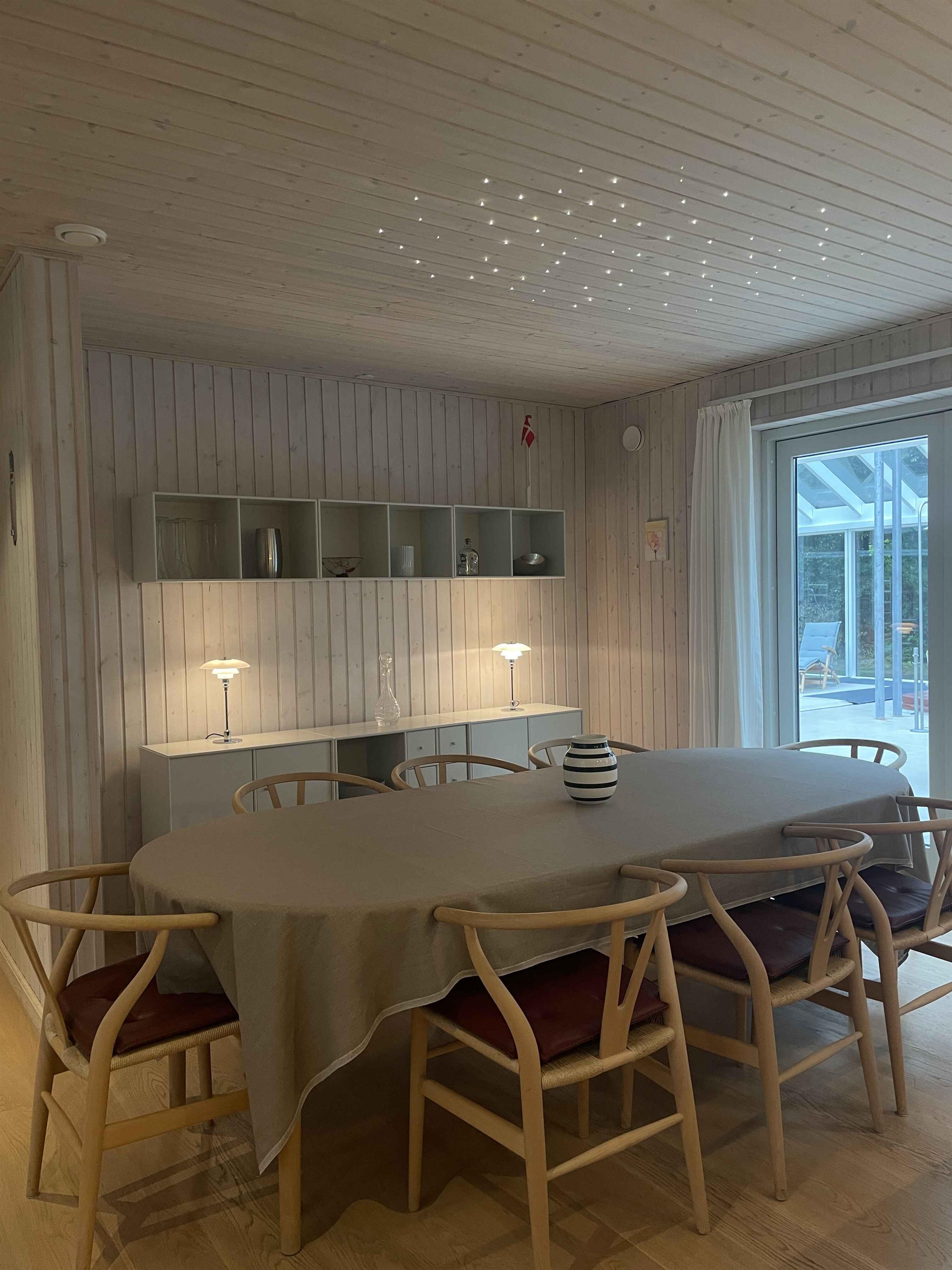 Een heerlijk, ruim vakantiehuis met ruimte voor samenzijn en ontspanning. De 300 m² biedt zes aparte slaapkamers met in totaal zes slaapplaatsen, ideaal voor twee gezinnen die samen reizen. Hier draait alles om rust, gezelligheid en samenzijn – zonder schermen en elektronica. Het huis ligt in een rustige omgeving met veel ruimte binnen en buiten. Het grote terras, de barbecueplek en de verzorgde tuin nodigen uit tot buitenleven en lange zomeravonden. De royale serre verlengt de dag, zelfs als het weer wisselvallig is. Binnen is het huis volledig ingericht met alles wat je nodig hebt. Een grote eettafel brengt iedereen samen voor gezamenlijke maaltijden, terwijl banken en loungestoelen ontspanning bieden. Er is een tv-kamer, wifi en klassieke bordspellen voor rustige avonden. De omgeving biedt prachtige natuurervaringen. Dichtbij zijn bossen, wandelpaden en een meer waar je heerlijk kunt wandelen of gewoon genieten van het uitzicht. De kust ligt op slechts 6 km afstand, met gezellige stranden en dorpjes voor een dagtocht of een ijsje in de zon. Een ideale vakantiebestemming om tot rust te komen en samen te zijn. Of je nu op ontdekking wilt of lekker thuis wilt blijven, het huis en de omgeving vormen de perfecte basis voor een ontspannen en waardevolle vakantie. Let op: Niet te huur voor commercieel gebruik.