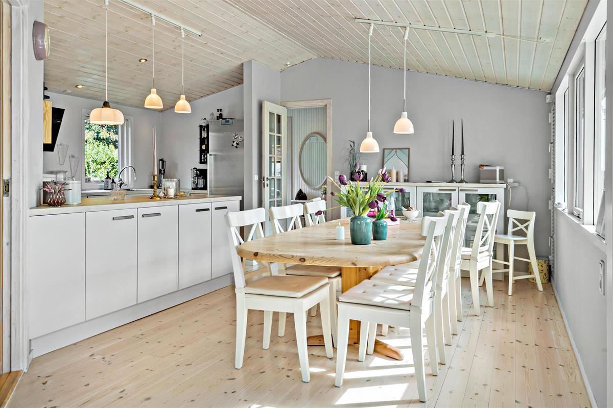 Je charmante en gezellige vakantiehuis nodigt je uit om de prachtige natuur en gevarieerde vrijetijdsactiviteiten in de omgeving van Tinkerup Strand te ervaren. Als je het huis binnenkomt, voel je je meteen welkom, want de lichte en uitnodigende woonkamer straalt een gezellige sfeer uit. Gezellig met de familie voor de houtkachel en ontspannende uren op de comfortabele bank. De ruime eethoek met uitzicht op de groene tuin is ideaal voor gezamenlijke maaltijden en is ook ideaal voor gezellige spelletjesavonden met bord- en kaartspellen.