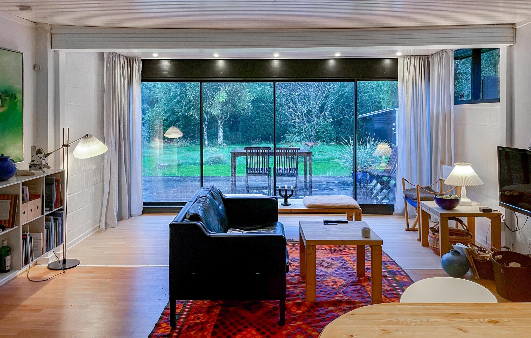 Dit stijlvol ingerichte vakantiehuis ligt op een idyllisch landgoed en verwelkomt je voor een heerlijke tijd met je geliefden. Begin met een ontbijt in de gezellige eetkeuken en organiseer hier gezellige kookavonden. Steek de open haard aan en luister naar het geknetter van het vuur terwijl je je verdiept in een spannend boek of je favoriete serie streamt op de comfortabele bank.