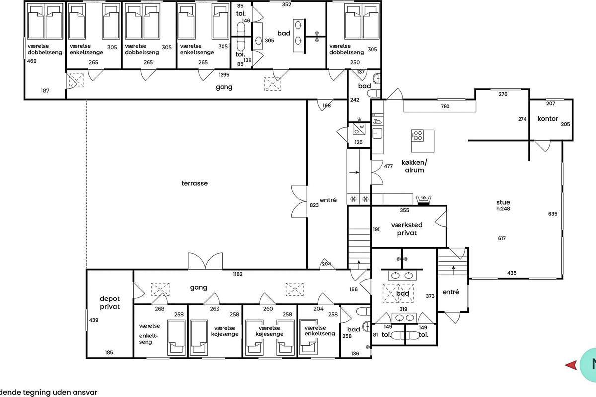 9 Schlafz.: (1DB)+(1DB)+(1DB)+(1B)+(1B)+(2B)+(2B)+(4K)+(2K), WC, WC, Waschb., Waschb., Dusche, Dusche