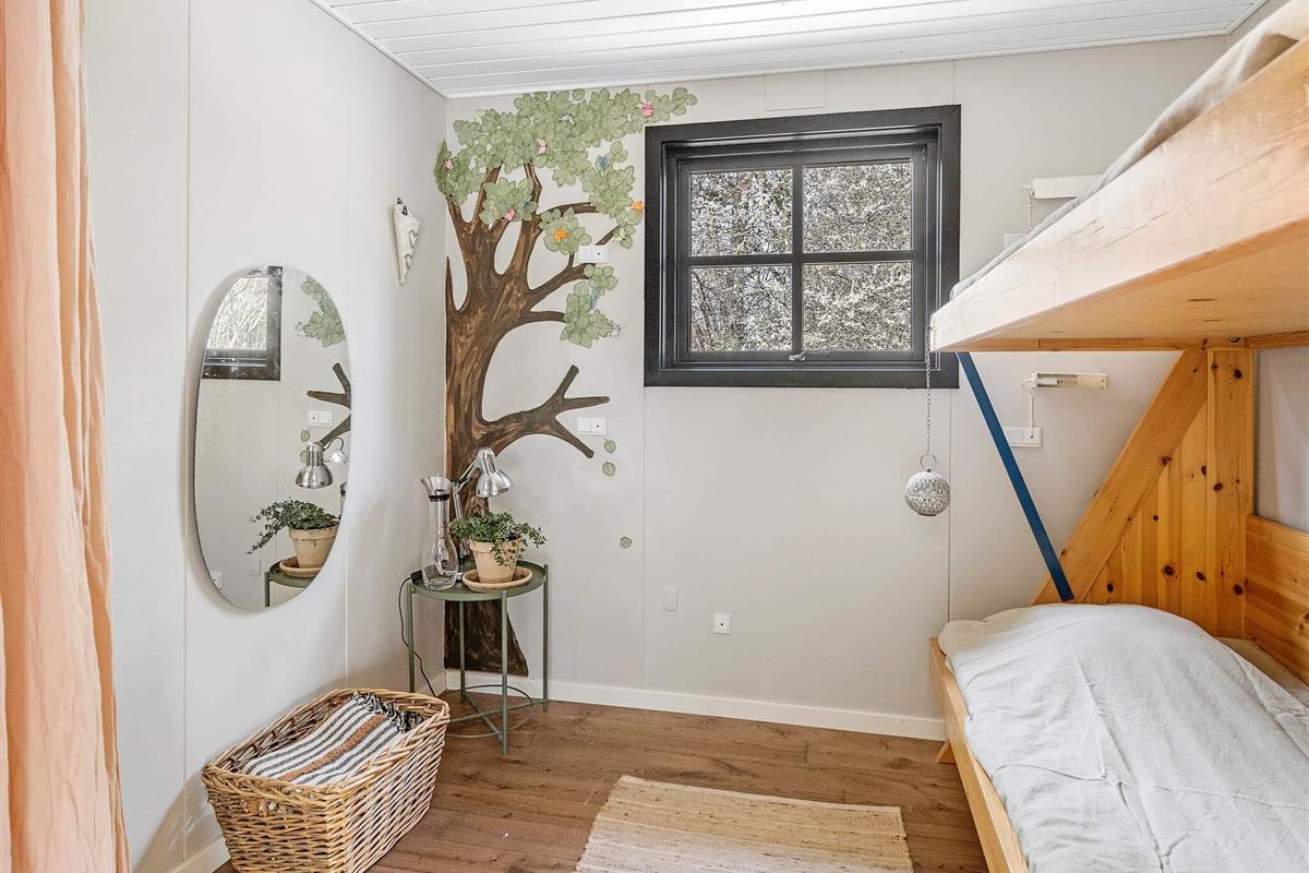 Das Haus liegt völlig abgeschieden am Ende eines Schotterwegs im eigenen Wald, umgeben von Feldern, Wiesen und sanften Pferdeweiden. Das Sommerhaus ist die ehemalige Arrenakken-Campschule, heute ein einzigartiges Sommerhaus inmitten der schönsten Natur der geschützten Arrenakke-Hügel. Von der Spitze aus können Sie bei klarem Wetter sowohl das Kattegat, Arresø als auch den Roskilde-Fjord sehen.