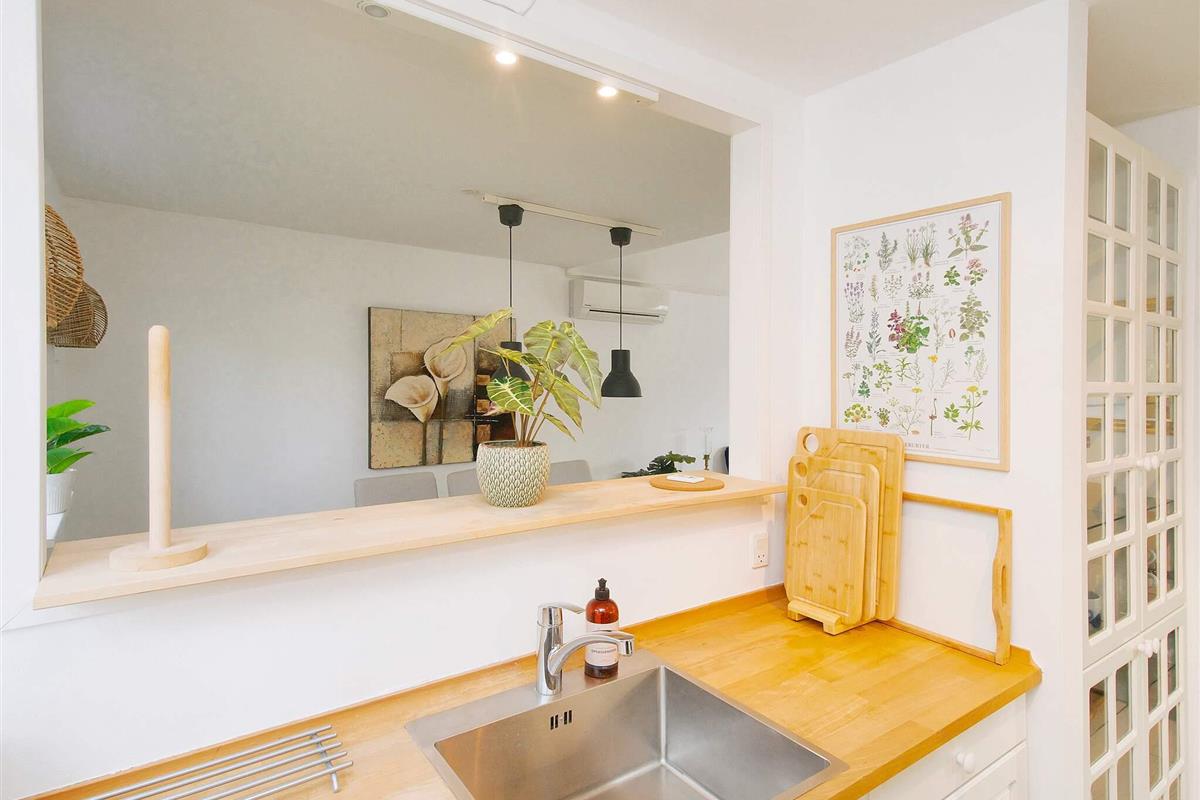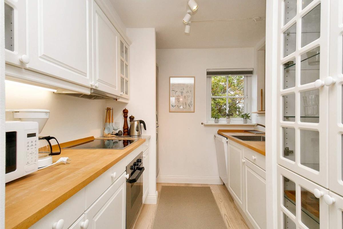 Küche: E-Kochpl., Ofen, Kühl-Gefrier-Kombi, Mikrow., Kaffeem., Spülm.