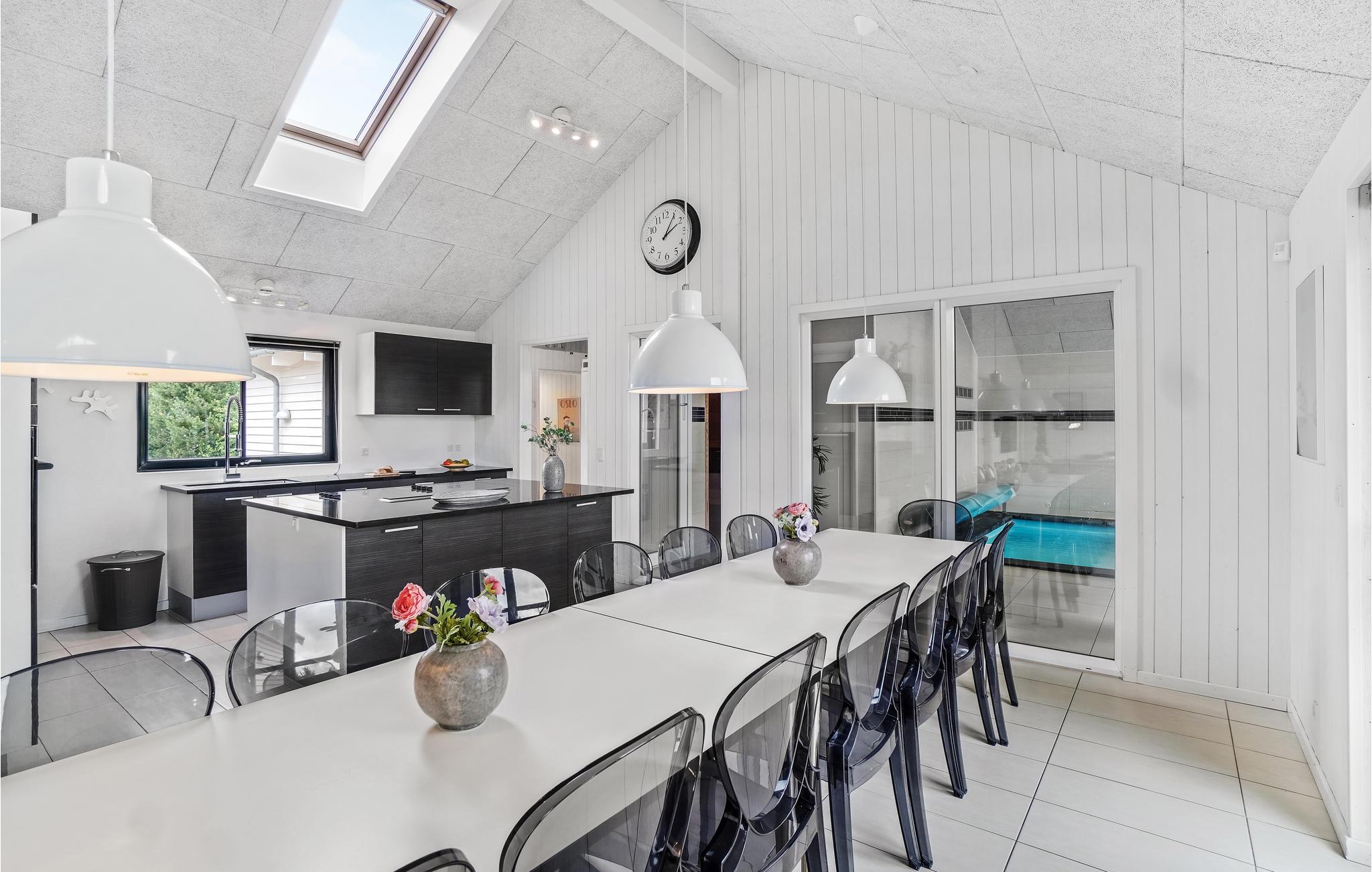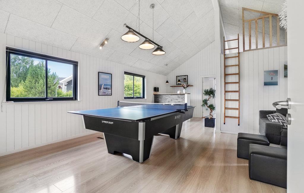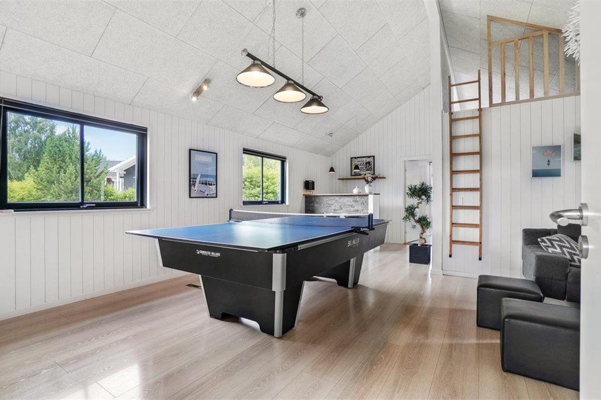 Het centrum van het huis, de eetkeuken, staat in open verbinding met de woonkamer, die gezellig is ingericht met een houtkachel en smaakvolle meubels. Bij mooi weer kunt u zich terugtrekken op het mooie zonneterras. De keuken is uiteraard volledig uitgerust met alles wat u op vakantie nodig heeft. Het huis heeft ook een spannende activiteitenruimte waar het hele gezin zich kan vermaken met biljart, tafeltennis, tafelvoetbal en darts. Er is hier ook een bar met een koelkast voor koude dranken wanneer u uw dorst moet lessen. Als het verlangen om te spelen nog niet is gestild, kunt u elkaar ook uitdagen op de eigen Playstation 4 (neem uw eigen spellen mee).