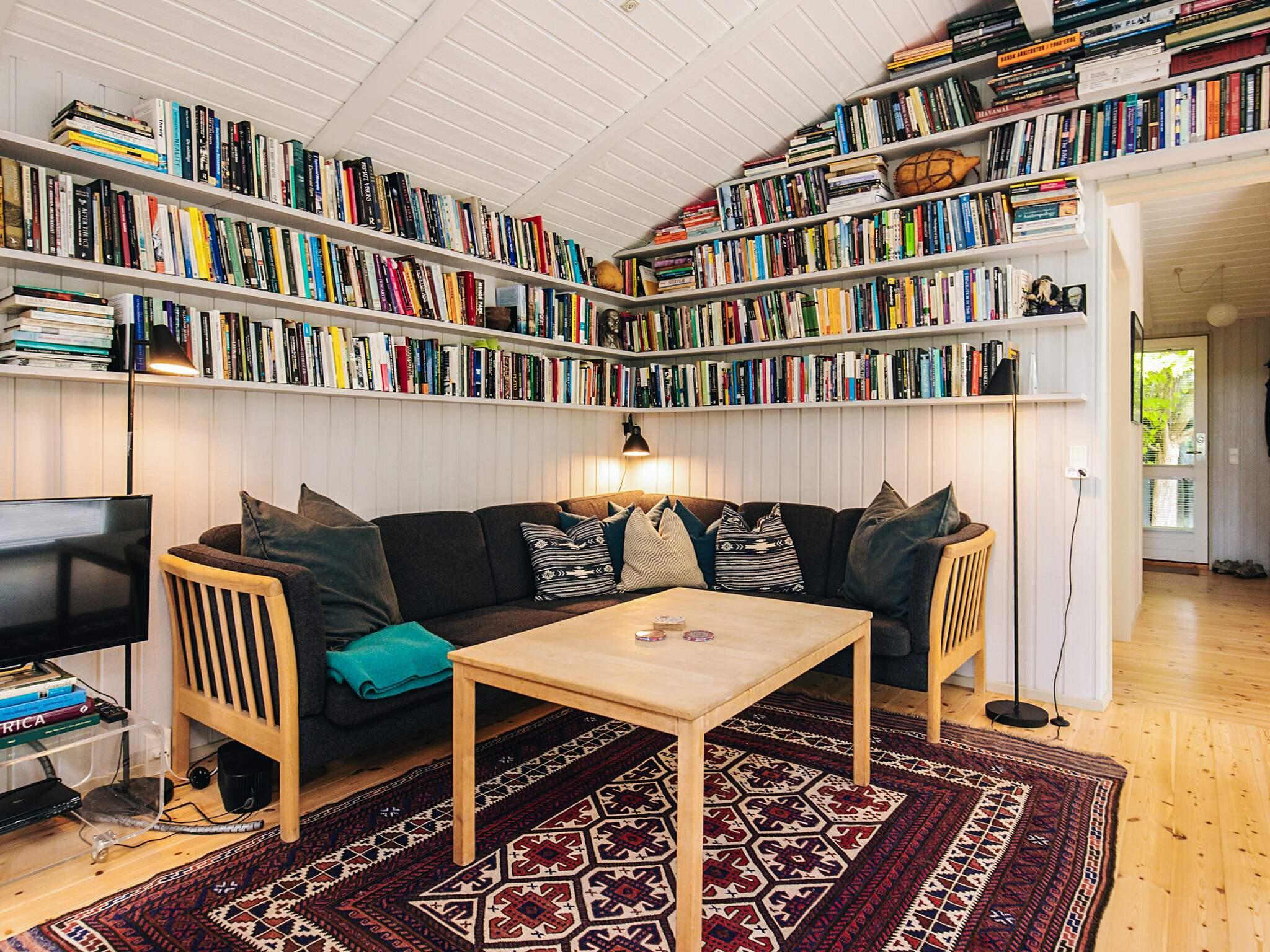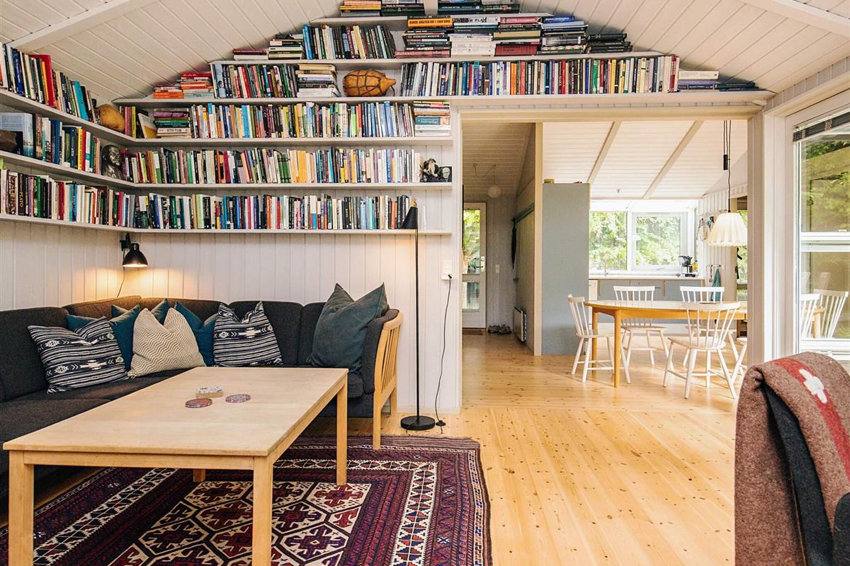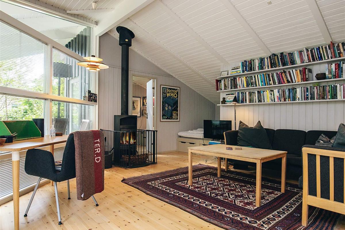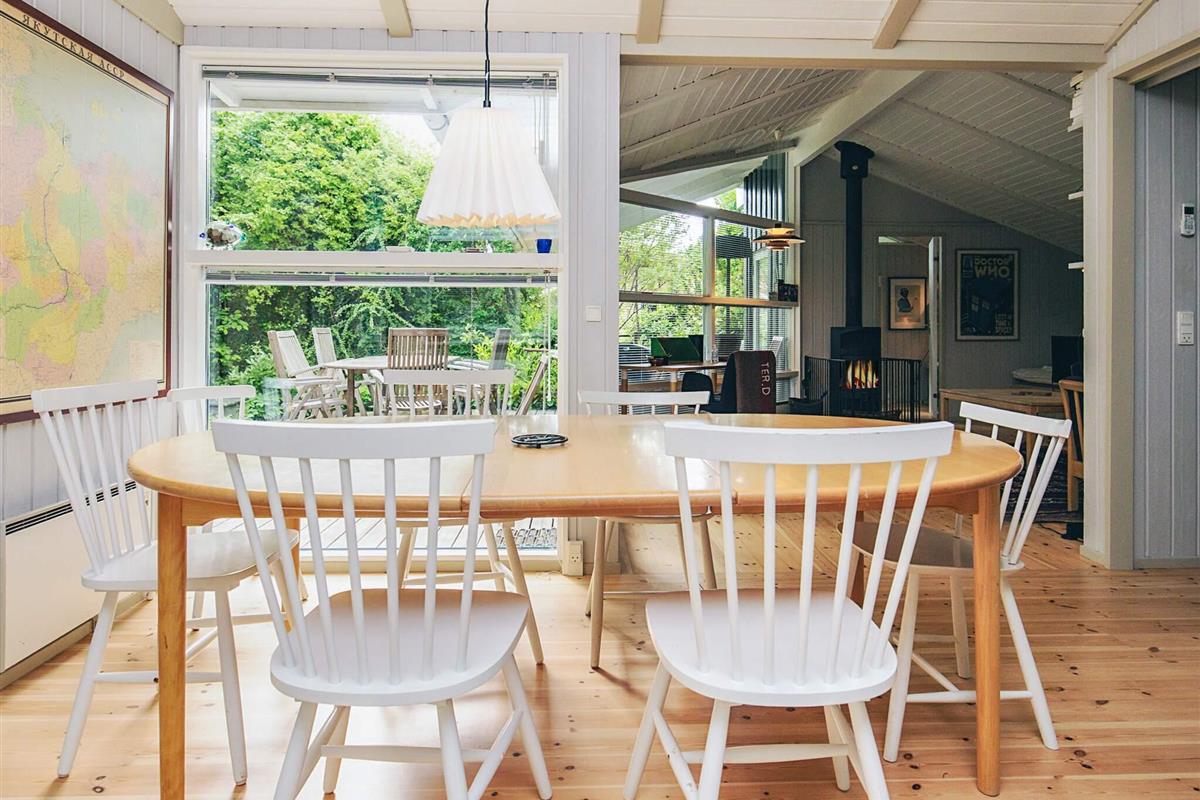 Das Ferienhaus hat einen offenen Küche-/Wohnbereich für das Familienleben. Gute Küchenausstattung mit u.a. Ceranfeld, Dunstabzugshaube, Mikrowelle und Geschirrspüler. Im praktischen Hauswirtschaftsraum stehen zudem Waschmaschine und Wäschetrockner bereit. Im gemütlichen Wohnbereich findet man Holzofen, freies WLAN sowie TV mit Chromecast und DVD-Player vor. Vom Wohnbereich aus haben Sie Zugang zu einer überdachten Terrassenfläche mit Gartenmöbeln.