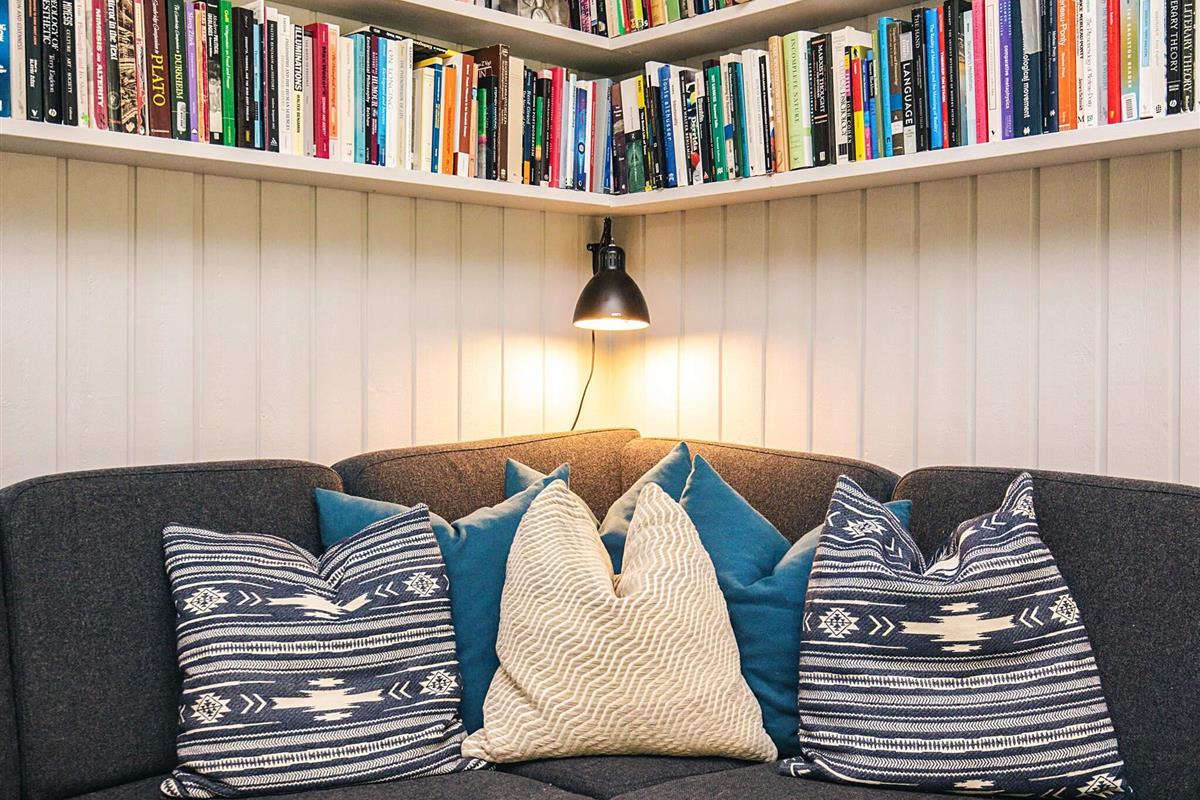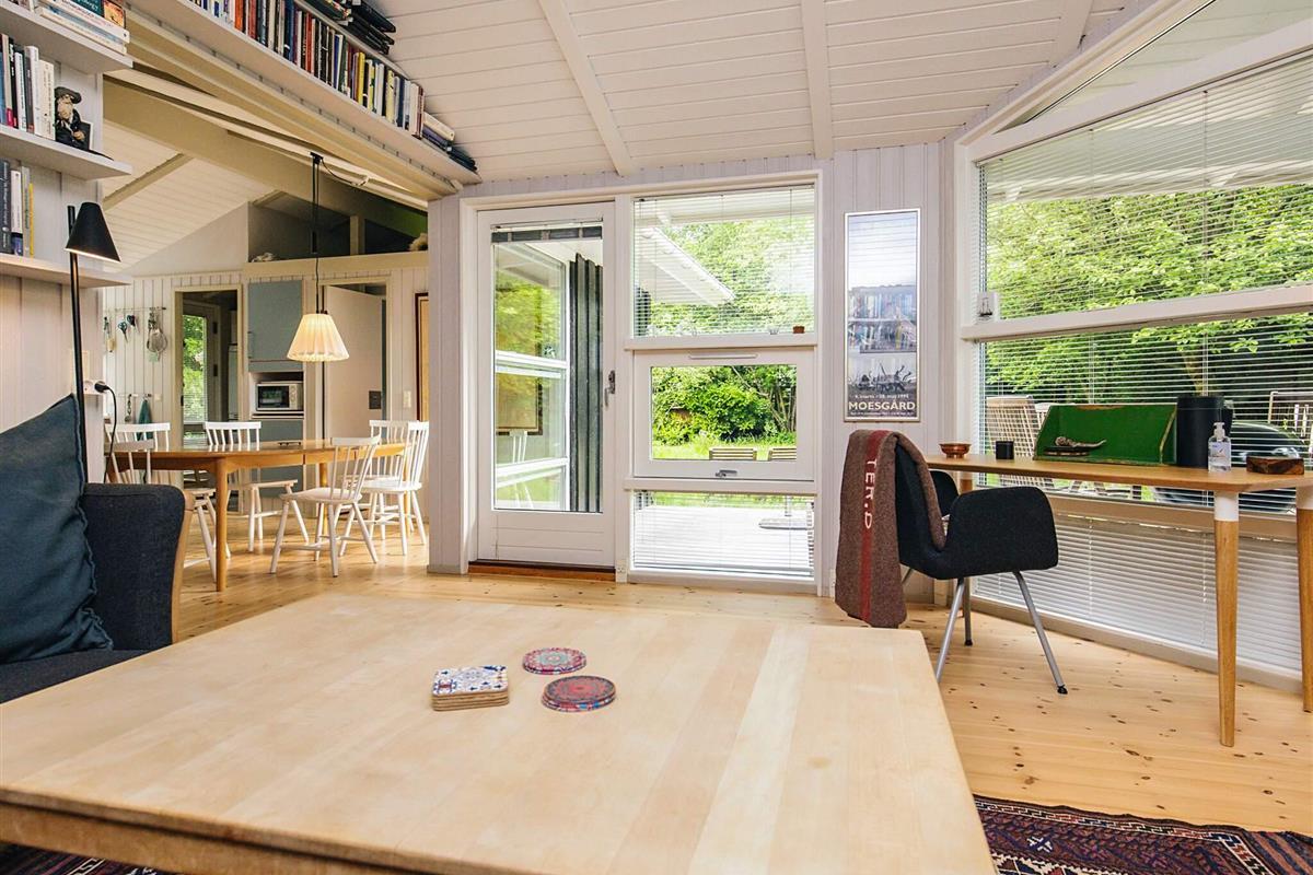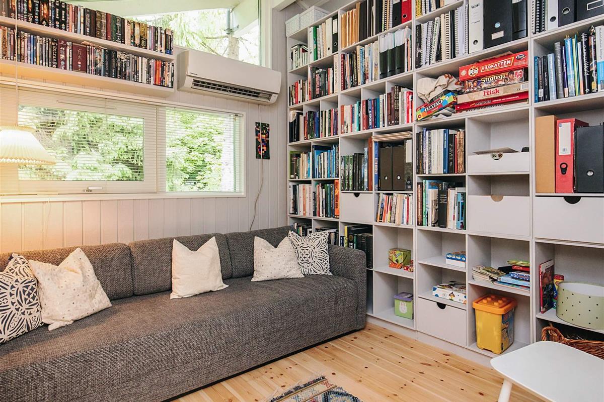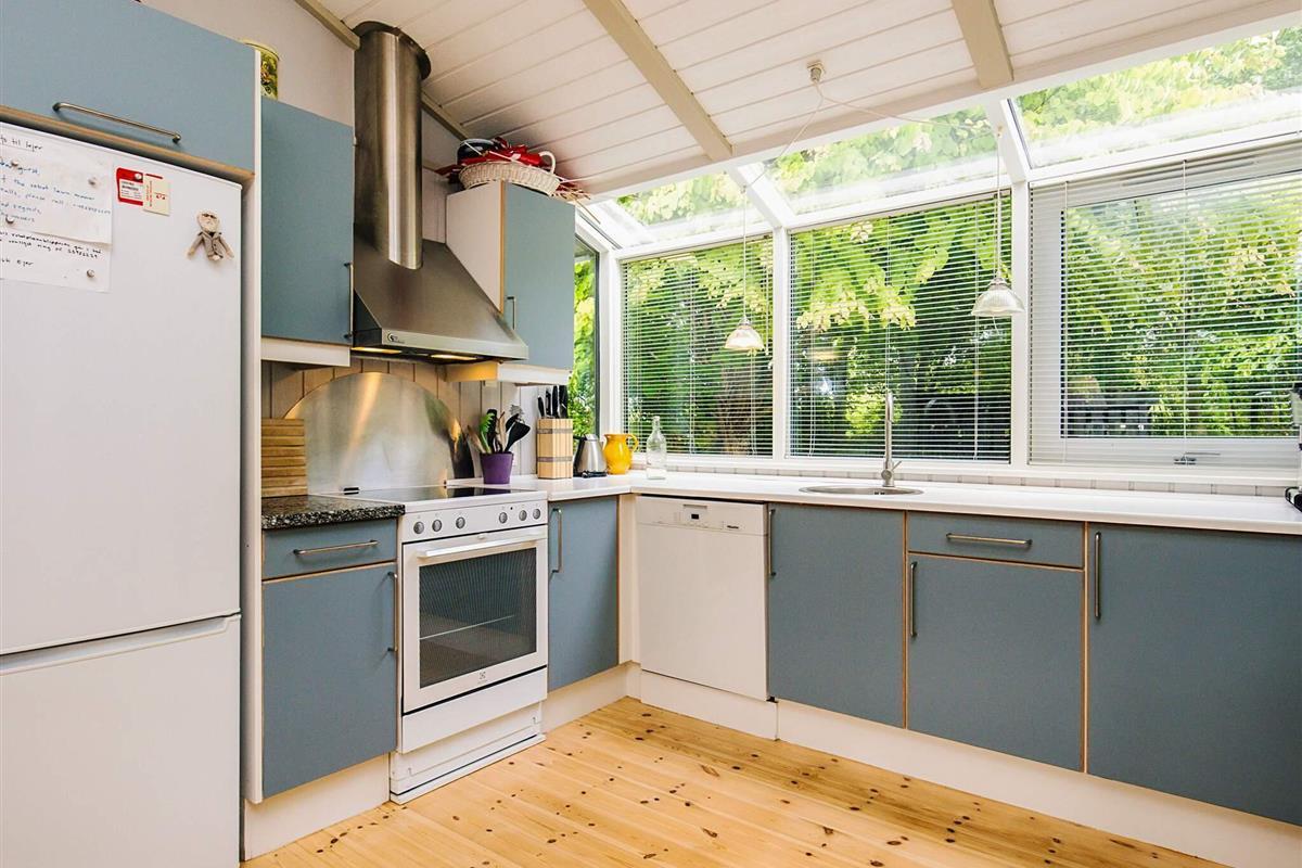 Das Ferienhaus hat einen offenen Küche-/Wohnbereich für das Familienleben. Gute Küchenausstattung mit u.a. Ceranfeld, Dunstabzugshaube, Mikrowelle und Geschirrspüler. Im praktischen Hauswirtschaftsraum stehen zudem Waschmaschine und Wäschetrockner bereit. Im gemütlichen Wohnbereich findet man Holzofen, freies WLAN sowie TV mit Chromecast und DVD-Player vor. Vom Wohnbereich aus haben Sie Zugang zu einer überdachten Terrassenfläche mit Gartenmöbeln.