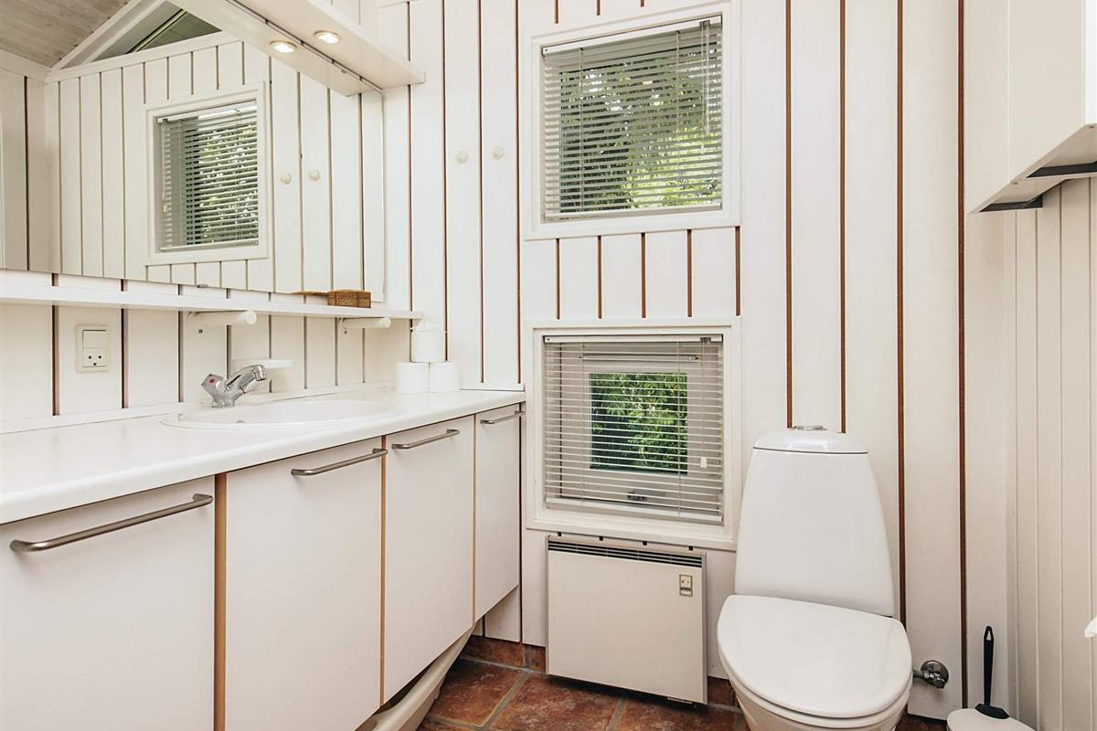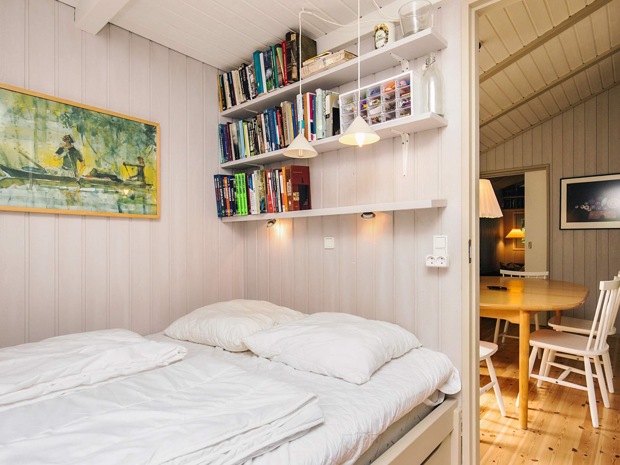 Es gibt zudem drei Schlafzimmer mit jeweils einem Doppelbett sowie einen gemütlichen Alkoven mit doppelter Schlafcouch im Haus. Ebenso Kinderbett und Hochstuhl für den jüngsten Gast bereit. Badezimmer mit Dusche und angenehmer Fußbodenheizung. Beheizt wird das Ferienhaus ggf. mit einer klimafreundlichen Luft-Luft-Wärmepumpe.