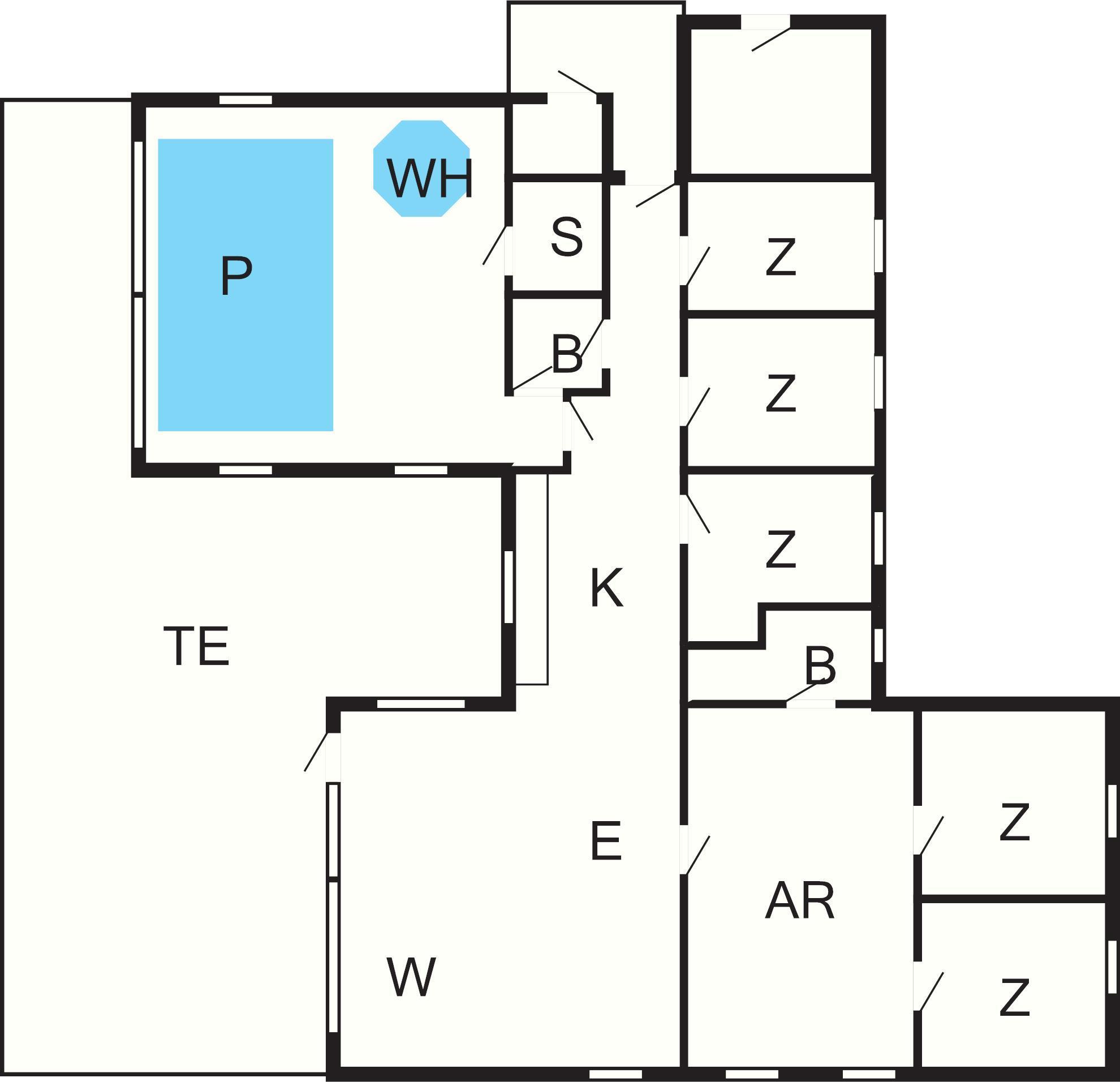 Auf einem schön abgeschirmten Naturgrundstück, nicht weit von einem attraktiven und kinderfreundlichen Badestrand, liegt dieses sehr geräumige Ferienhaus. Es bietet Platz für bis zu 14 Personen und ist modern und ansprechend eingerichtet.
