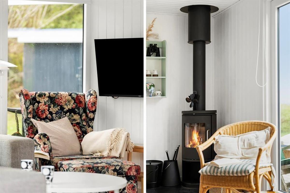 Wenn du das gemütliche Ferienhaus betrittst, empfängt dich eine entspannte, helle Atmosphäre, die zu gemeinsamen Stunden und Urlaubsgenuss einlädt. Die Einrichtung ist schlicht und freundlich – mit kleinen, persönlichen Details – und im Wohnzimmer kannst du es dir mit einer Tasse Kaffee auf dem Sofa bequem machen und die Wärme des knisternden Holzofens genießen. Hier spürst du, wie die Ruhe einkehrt, während du vielleicht ein Brettspiel mit der Familie spielst oder eine Gutenachtgeschichte im Schein der Flammen vorliest. Der offene Wohnraum ermöglicht es, beim Kochen, Entspannen und Spielen zusammen zu sein – genau das, worum es im Urlaub geht. Es gibt viel Platz für Erwachsene und Kinder – und auch vierbeinige Familienmitglieder sind in diesem Haus herzlich willkommen.