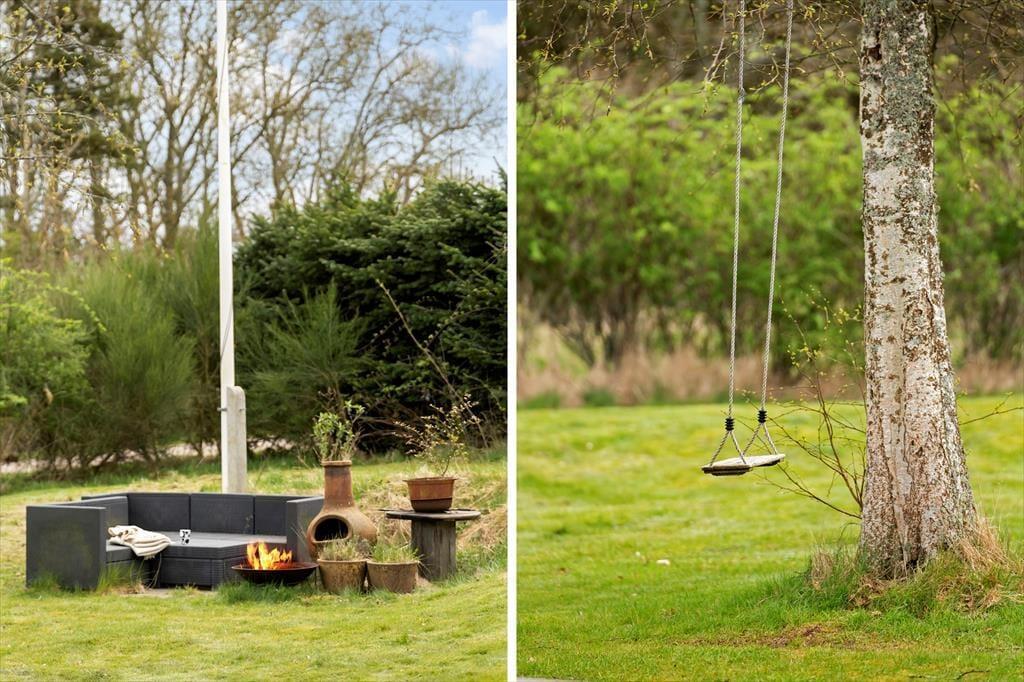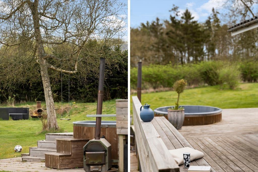 Draußen erwartet dich ein schönes, ruhiges Grundstück, umgeben von grüner Natur und Vogelgezwitscher. Hier kannst du den Tag mit einem Kaffee auf der Terrasse beginnen, während der Morgentau noch auf dem Gras liegt – und wenn die Sonne wärmer wird, ist ein Bad im Wildnisbad unter freiem Himmel genau das Richtige. Es ist purer Luxus, hier zu sitzen – mit Blick auf die Baumwipfel und vielleicht einen sternenklaren Abendhimmel. Und wenn der Tag sich dem Ende zuneigt, könnt ihr euch an der Feuerstelle versammeln und Marshmallows rösten, während die Glut im Dunkeln tanzt. Es gibt sowohl Platz zum Spielen als auch zum Entspannen – und für die Kinder ist der Garten ein wunderbarer Ort zum Erkunden, während du selbst die Ruhe mit einem guten Buch oder einem kühlen Getränk in der Hand genießt.