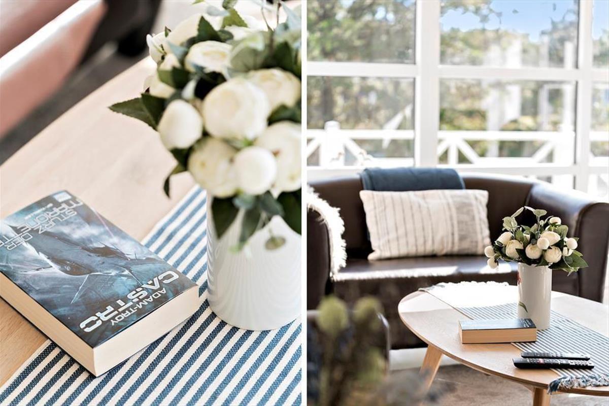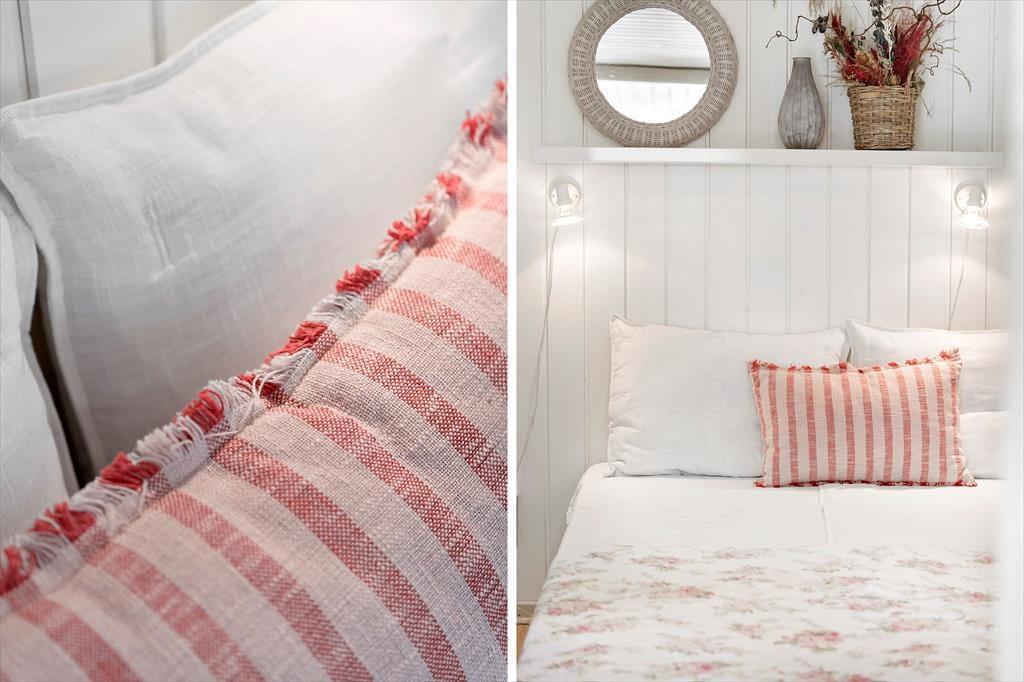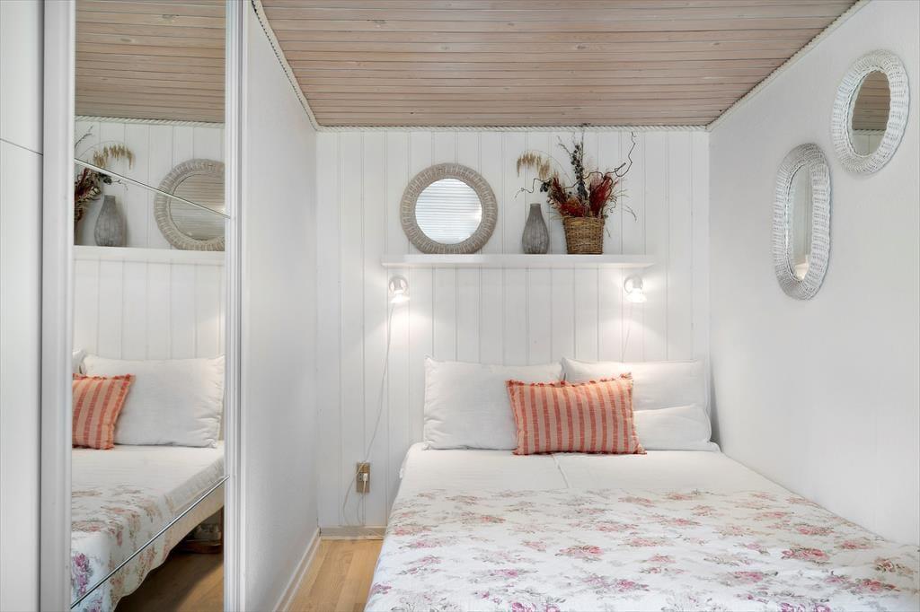 Das 72 m² große Holzhaus für vier Personen wurde im Jahr 2021 renoviert. Der Einrichtungsstil ist hell und romantisch. Die komfortable Möblierung und der Kaminofen sorgen für bestes Ferienhausflair. Wohnraum und Küche sind offen miteinander verbunden. Der offene Raum verfügt über große Fenster, die einen schönen Tageslichteinfall gewähren und Sie beim Kochen, beim Entspannen auf dem Sofa und während vergnügter Spielstunden am Esstisch mit Ausblick auf das grüne Grundstück verwöhnen. Zwei Schlafräume mit je einem Doppelbett und ein Schlafraum mit einem Etagenbett stehen für Sie bereit. Das Badezimmer ist mit einer Duschnische, einer Fußbodenheizung und einer Waschmaschine ausgestattet.
