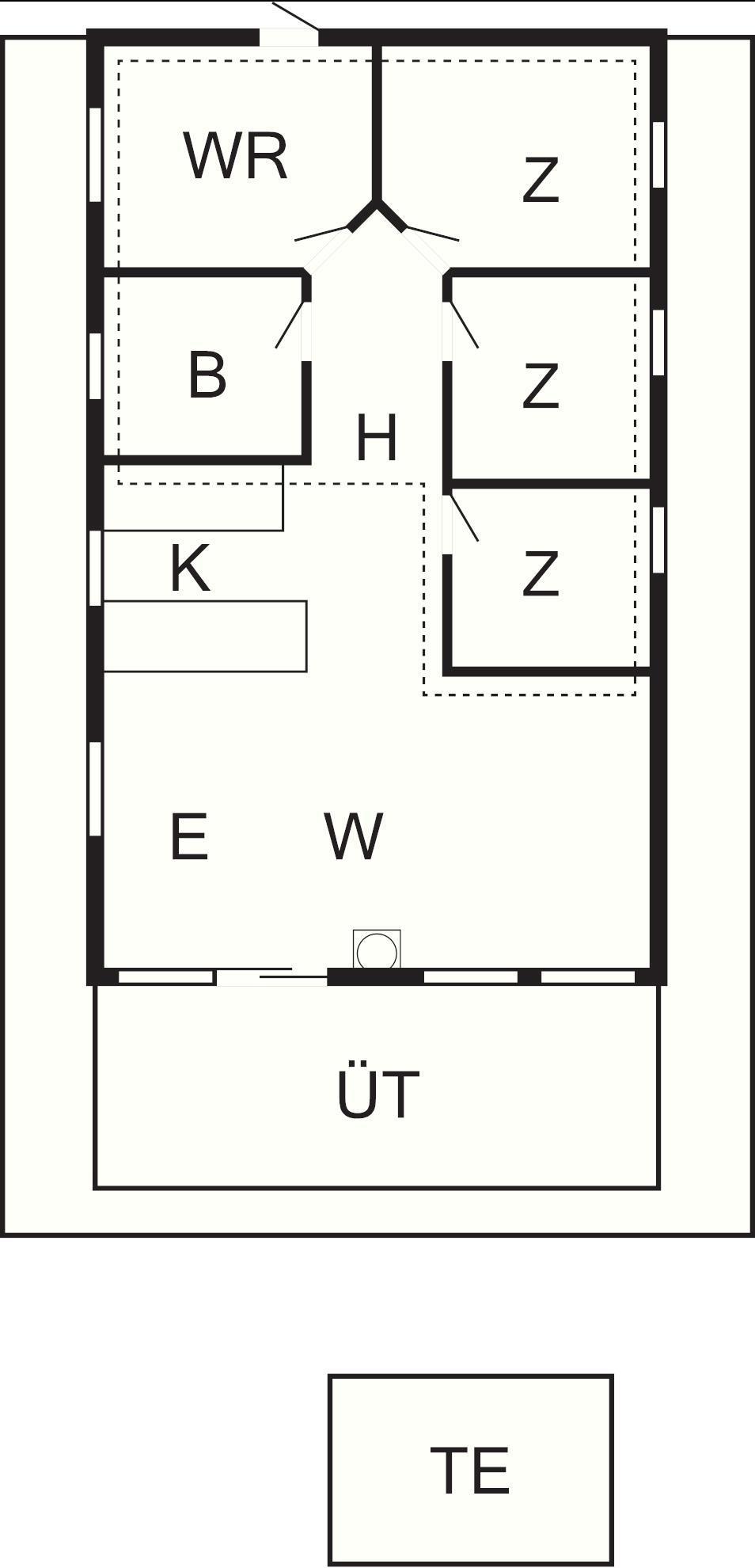 Bad: WC, Waschb., Dusche, Fußbodenheiz.