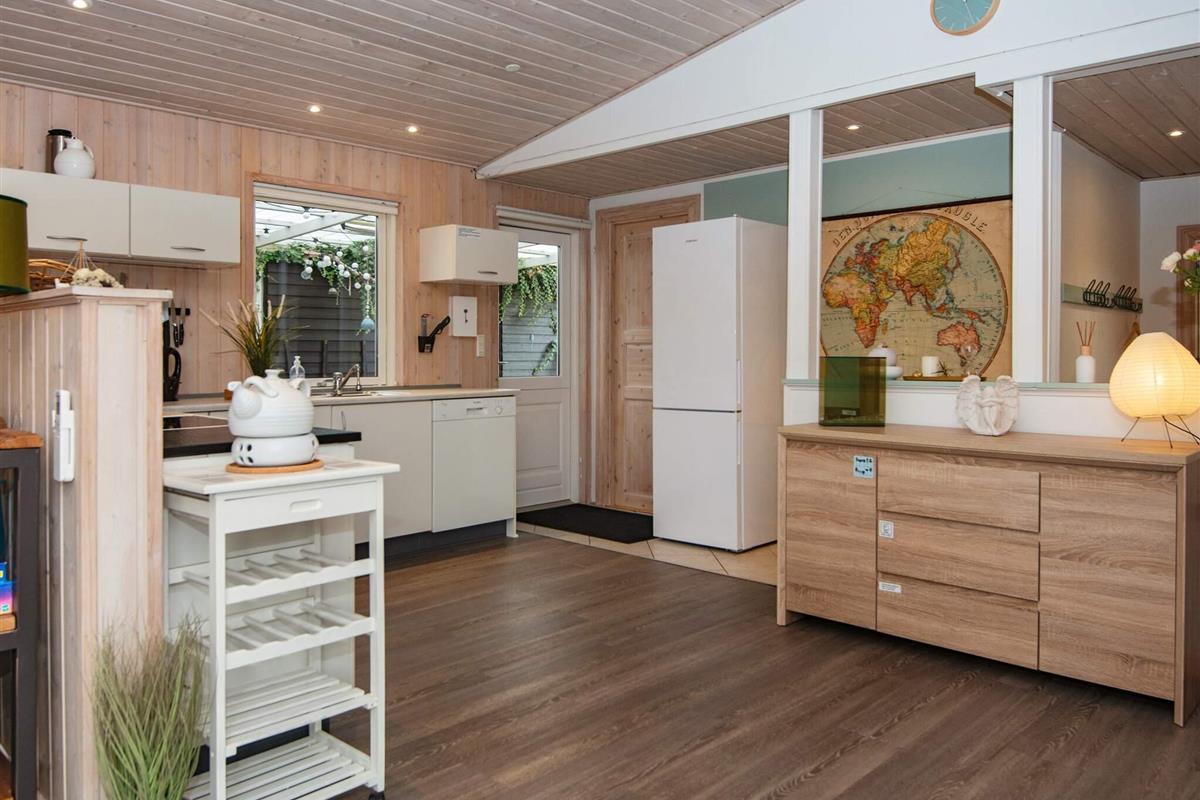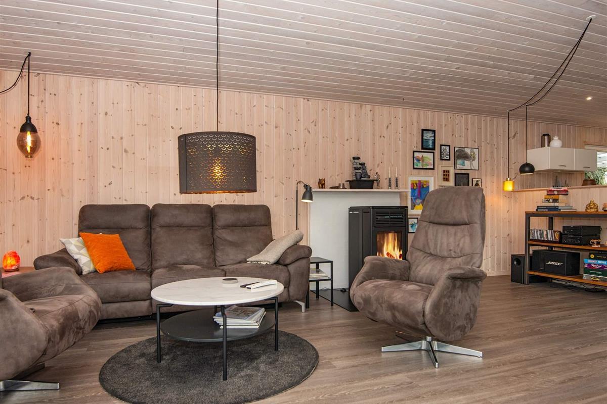 Das Ferienhaus ist hell und einladend und praktisch eingerichtet und verfügt über eine Wohnküche. Das Wohnzimmer bietet kostenloses Internet, bequeme Möbel und einen Flachbildfernseher mit Chromecast, sodass Sie Ihre eigenen Fernsehprogramme streamen können. Ein Holzofen (Pellets) sorgt an kühlen Sommerabenden oder regnerischen, windigen Herbstabenden für wohlige Wärme. Vom Wohnzimmer aus haben Sie ebenfalls einen Blick auf den Fjord.