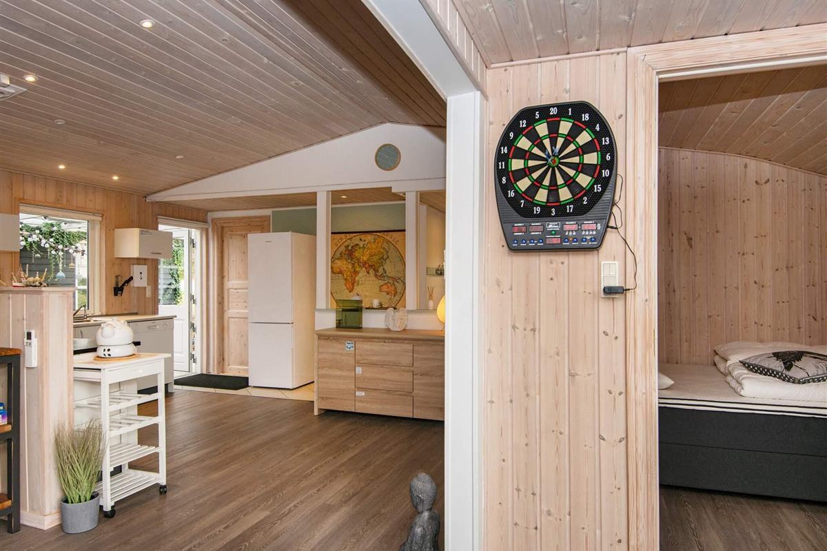 Gut gelegenes Ferienhaus mit Blick aufs Wasser von außen und innen, gelegen auf einem 1278 m² großen Naturgrundstück mit Bäumen, nur ca. 450 m vom Limfjord und dem kinderfreundlichen Strand in Toftum Bjerge entfernt.