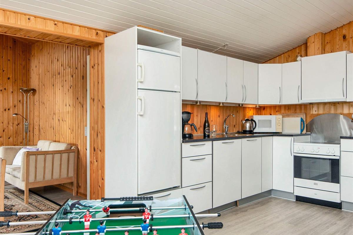 Dieses Ferienhaus mit energiesparender Wärmepumpe liegt auf einem 1150 m² großen Naturgrundstück, nur ca. 500 m vom Limfjord entfernt, zu einem offenen Feld hin gelegen. Das Haus wurde 2014 renoviert und angebaut. Offene Küche mit Cerankochfeld, Mikrowelle, Abzugshaube, Kühl-Gefrier-Kombi sowie Spülmaschine. Im Wohnzimmer erwartet Sie ein Fernseher mit deutschen Kanälen, eine Stereoanlage mit CD-Spieler, eine PlayStation3 mit dazugehörigen Spielen, Tischfußball sowie ein Holzofen, der an kühlen Abenden gemütliche Wärme verbreitet. Es gibt drei Schlafzimmer sowie Möglichkeit für einen extra Schlafplatz im Wohnzimmer. Das Bad verfügt über angenehme Fußbodenheizung und einen Whirlpool. Darüber hinaus gibt es ein Gäste-WC. Im Garten gibt es verschiedene Aktivitäten wie Schaukeln, Fußballtor und Kroket. Im Holzschuppen können auch Fahrräder oder Angelzeug aufbewahrt werden.