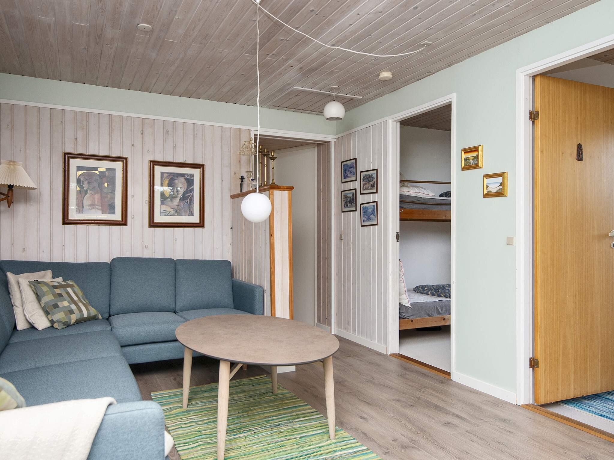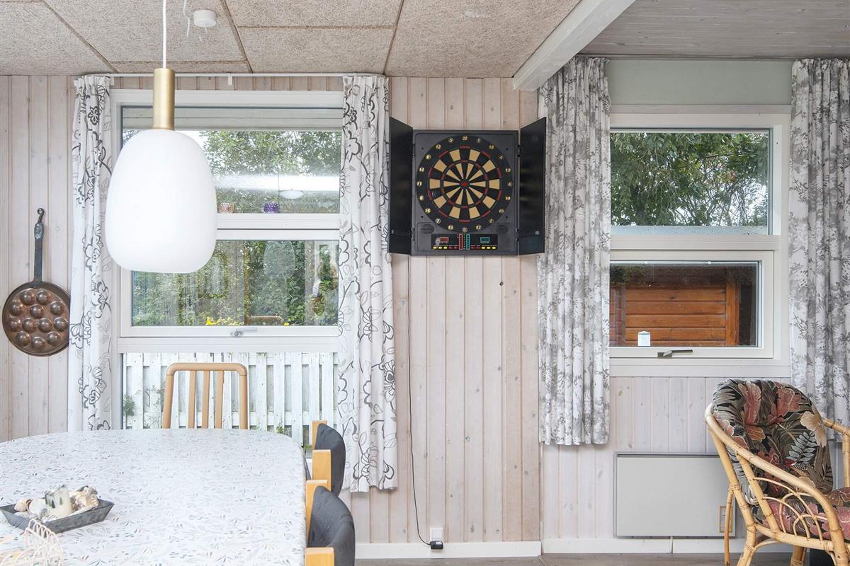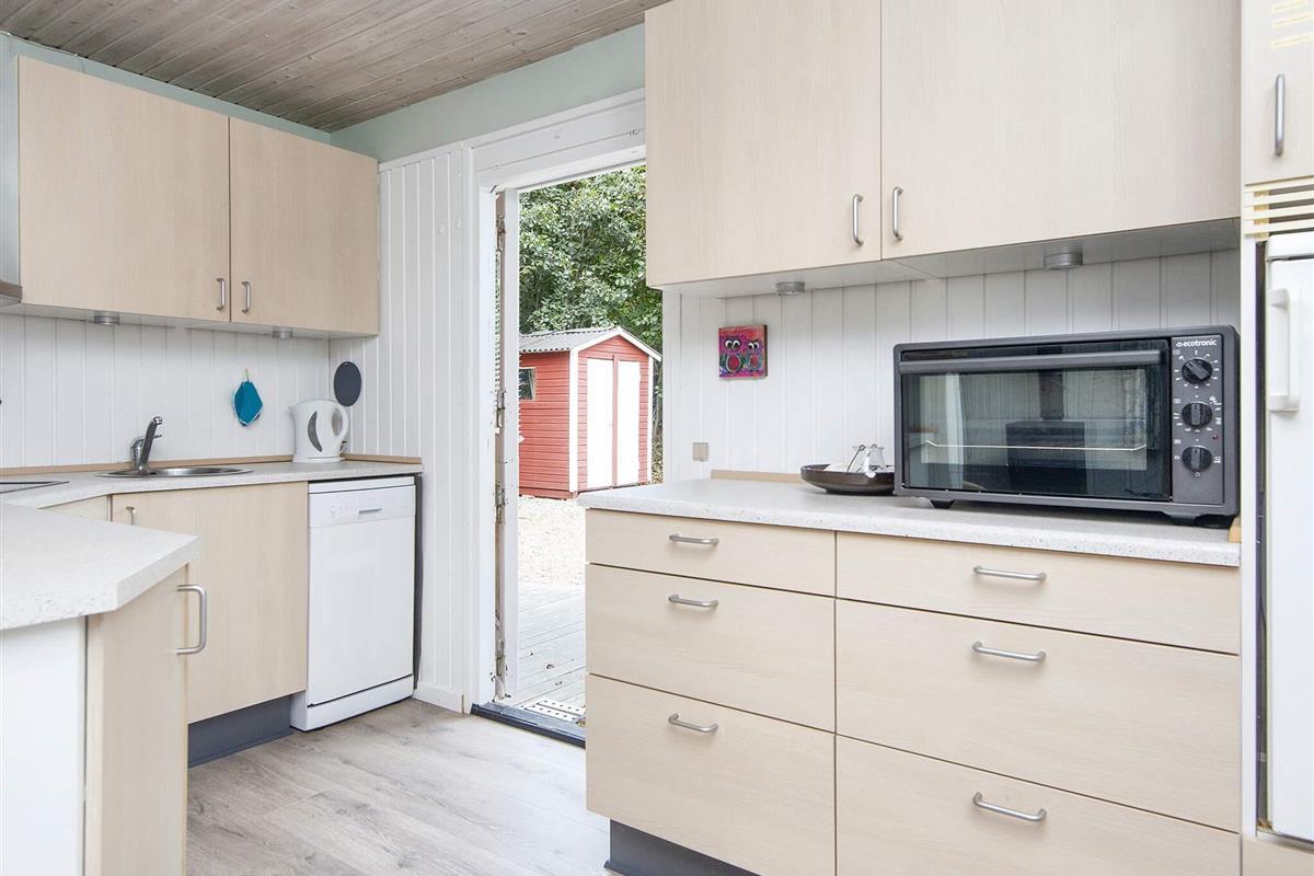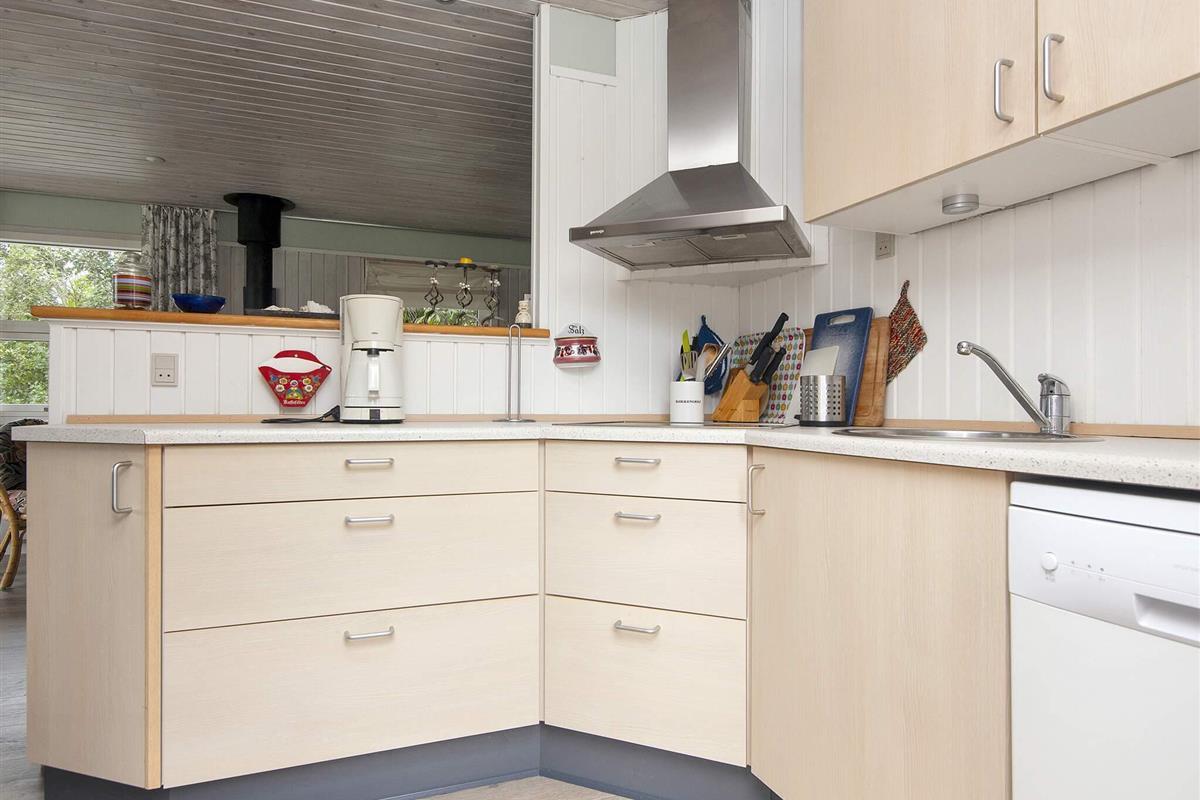 Das Ferienhaus ist hell und gemütlich eingerichtet und hat ein großes Wohnzimmer mit direktem Zugang zur Terrasse. An das Wohnzimmer schließt sich ein schöner, heller Wintergarten an, von dem aus man Panoramablick ins Grüne hat. Praktische Einrichtung und familienfreundliche Wohnküche im Haus. Die Küche ist u.a. ausgestattet mit Ceranfelder, Minibackofen, Mikrowelle und Geschirrspüler. Im Wohnzimmer gibt es bequeme Möbel, Flachbildfernseher mit freien dänischen Sendern und WLAN. Für kühlere Tage steht ein gemütlicher Holzofen bereit.
