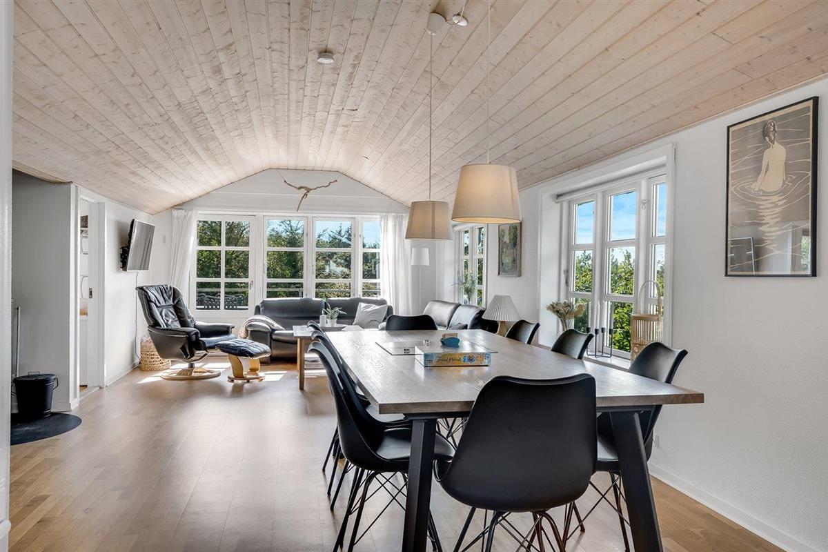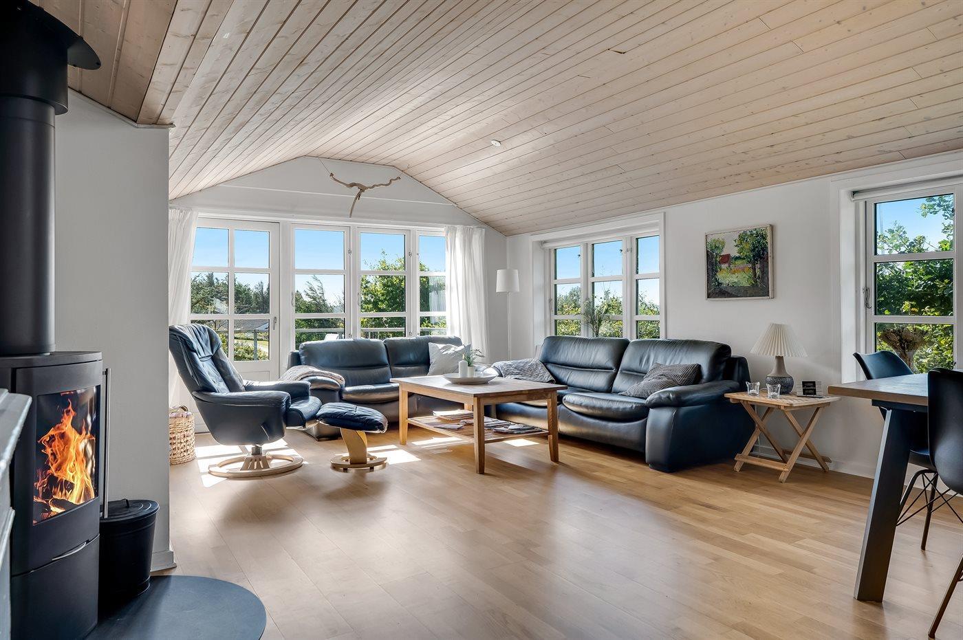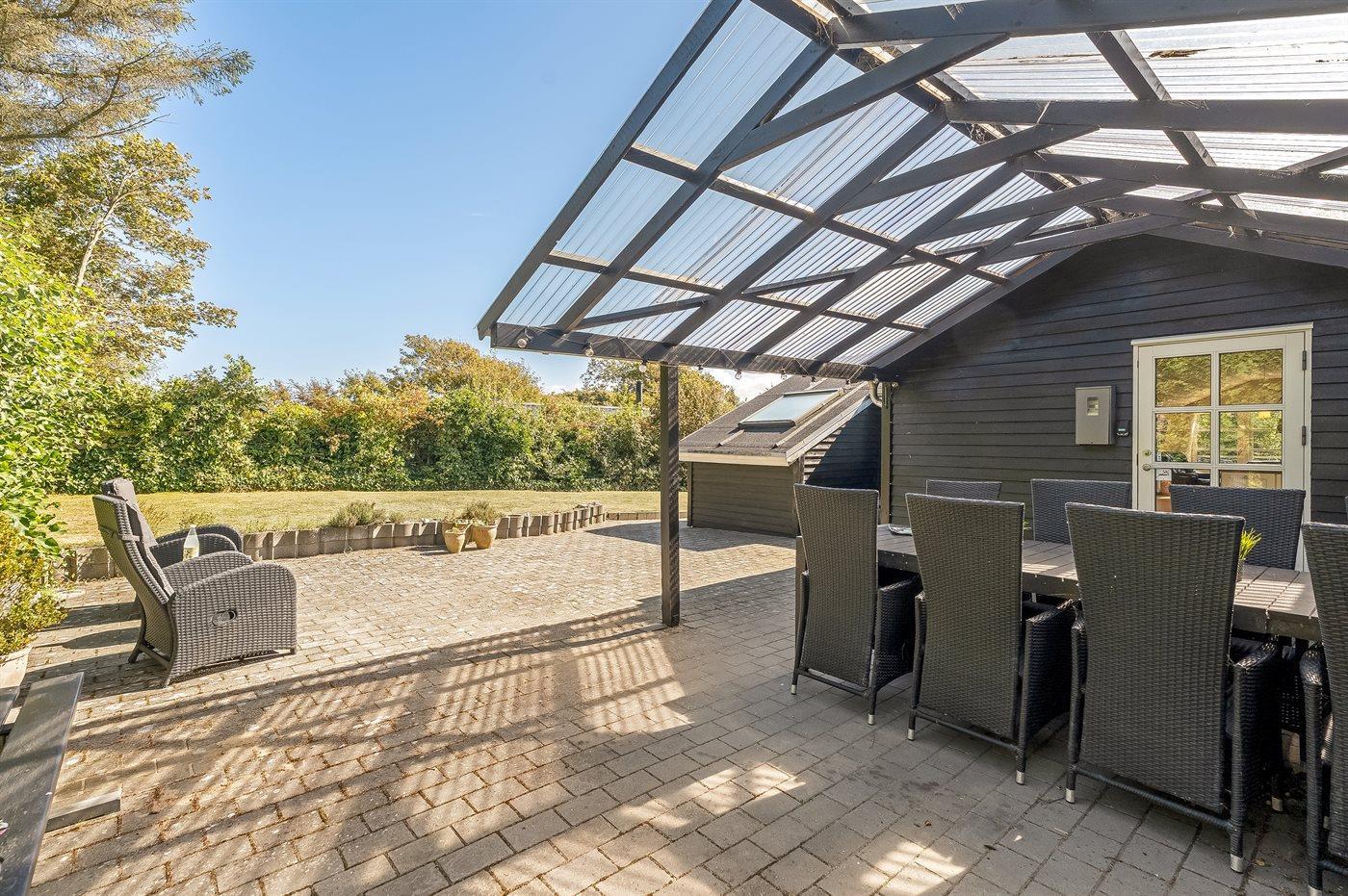 De vakantiewoning is gelegen op een 702 m² groot natuural grond. Afstand tot de fjord 210 m. Dichtstbijzijnde winkel 3000 m. Er is een golfbaan op een afstand van 2000 m. Bij de vakantiewoning hoort terras. Daarnaast is er een overdekt terras. Zandbak. Parkeerplaats bij het huis.