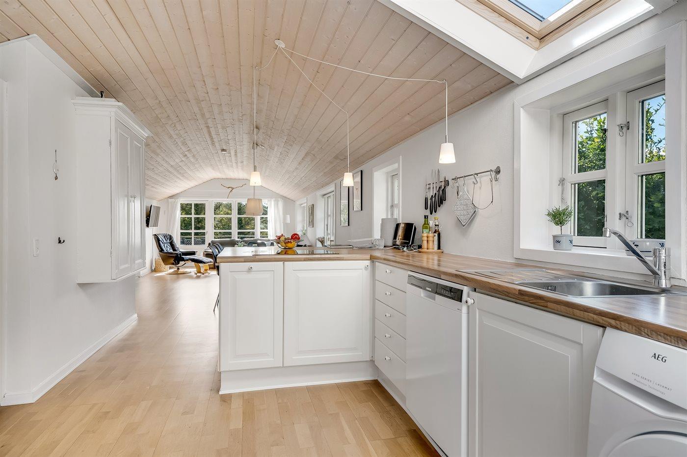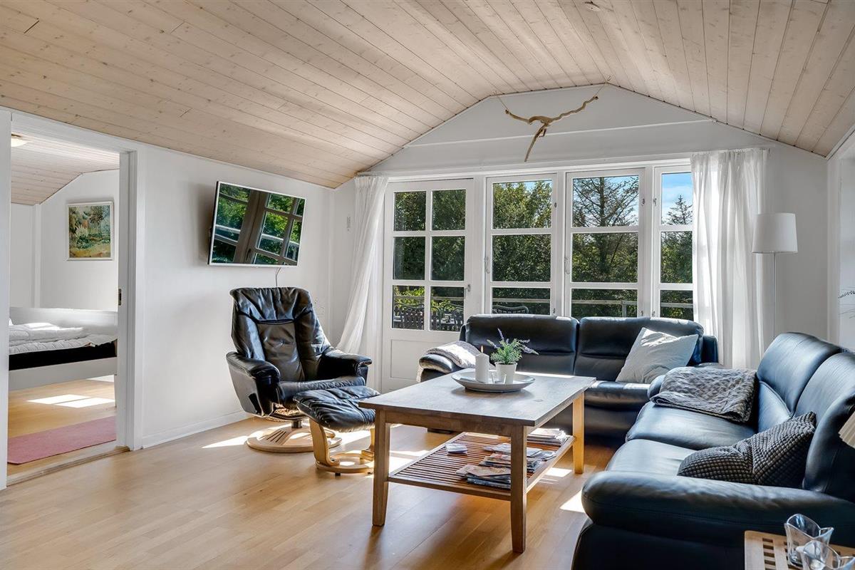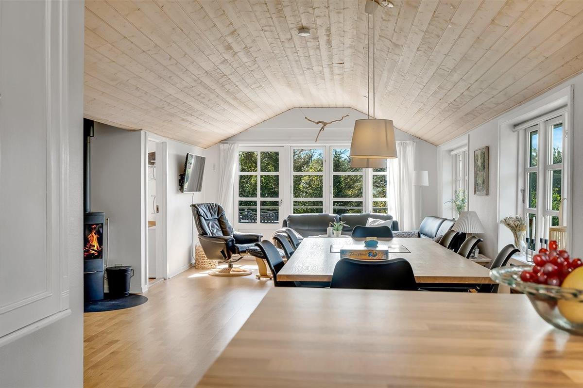 De vakantiewoning is gelegen op een 702 m² groot natuural grond. Afstand tot de fjord 210 m. Dichtstbijzijnde winkel 3000 m. Er is een golfbaan op een afstand van 2000 m. Bij de vakantiewoning hoort terras. Daarnaast is er een overdekt terras. Zandbak. Parkeerplaats bij het huis.