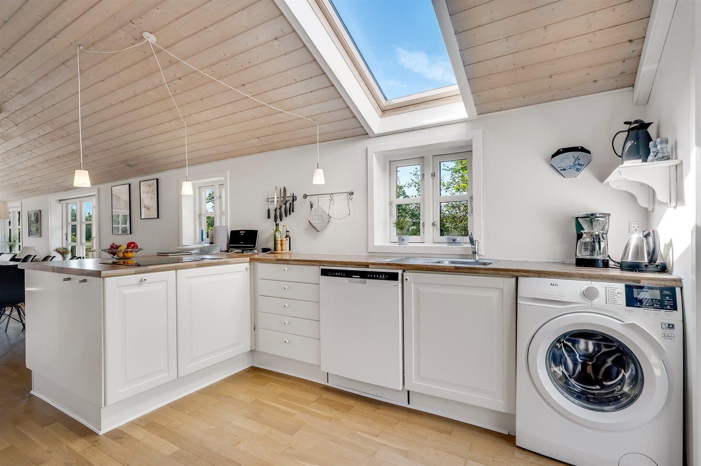 De keuken is uitgerust met koelkast Er is 4 inductiekookplaten, heteluchtoven en vaatwasser.