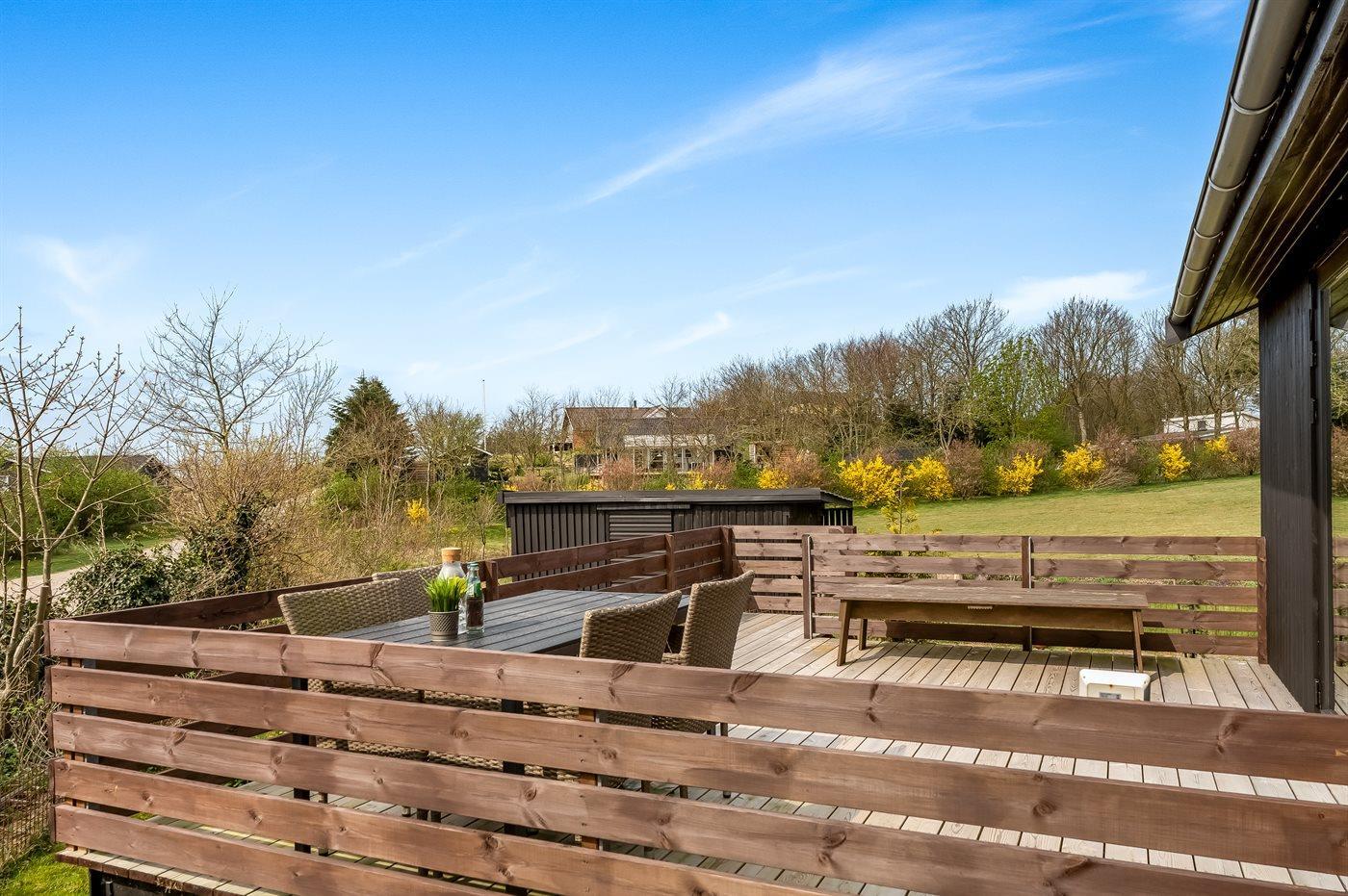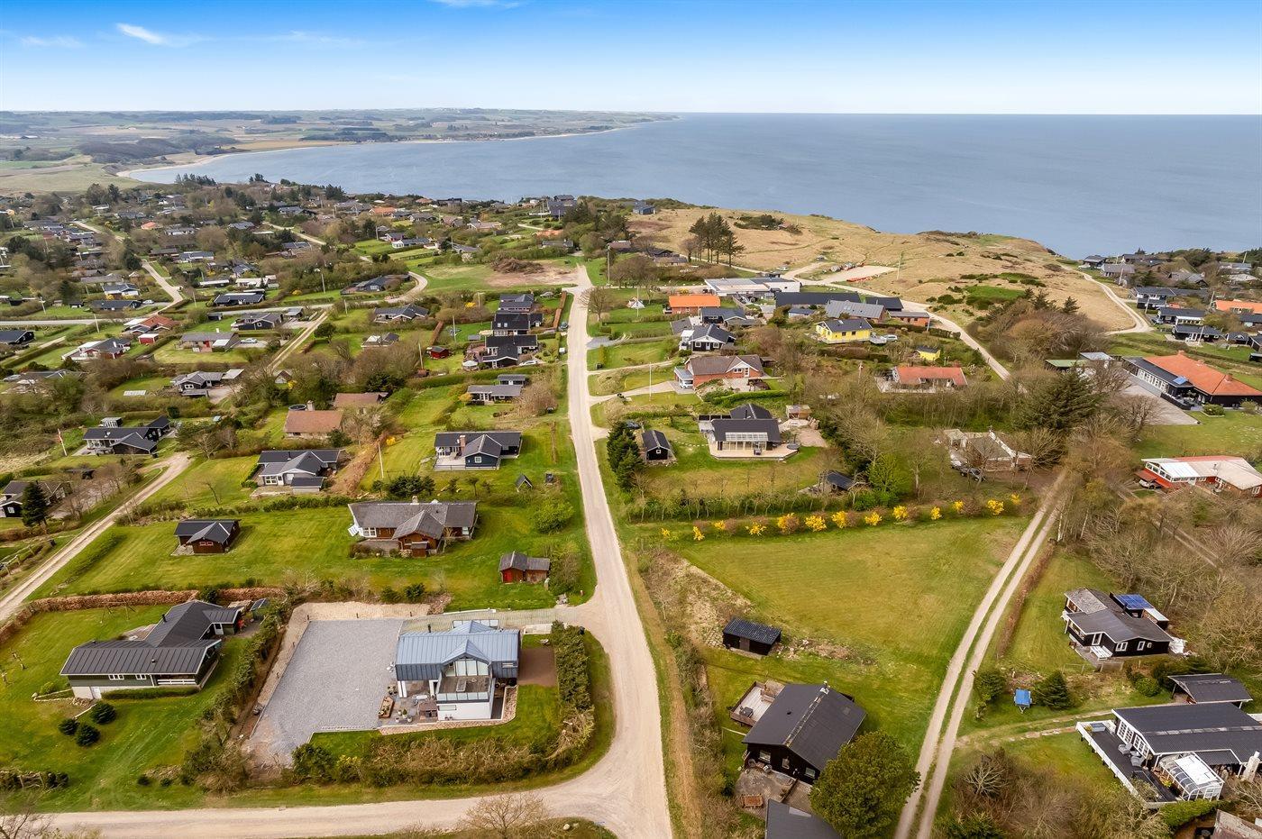 De vakantiewoning is gelegen op een 1059 m² groot natuural grond. Afstand tot de fjord 300 m. Dichtstbijzijnde winkel 1500 m. Er is een golfbaan op een afstand van 1500 m. Bij de vakantiewoning hoort terras. Barbecue. Carport ter beschikking. Het huis heeft een stopcontact voor het opladen van een elektrische auto. CEE-stekker. Met 11 kW-laadvermogen. Parkeerplaats bij het huis.