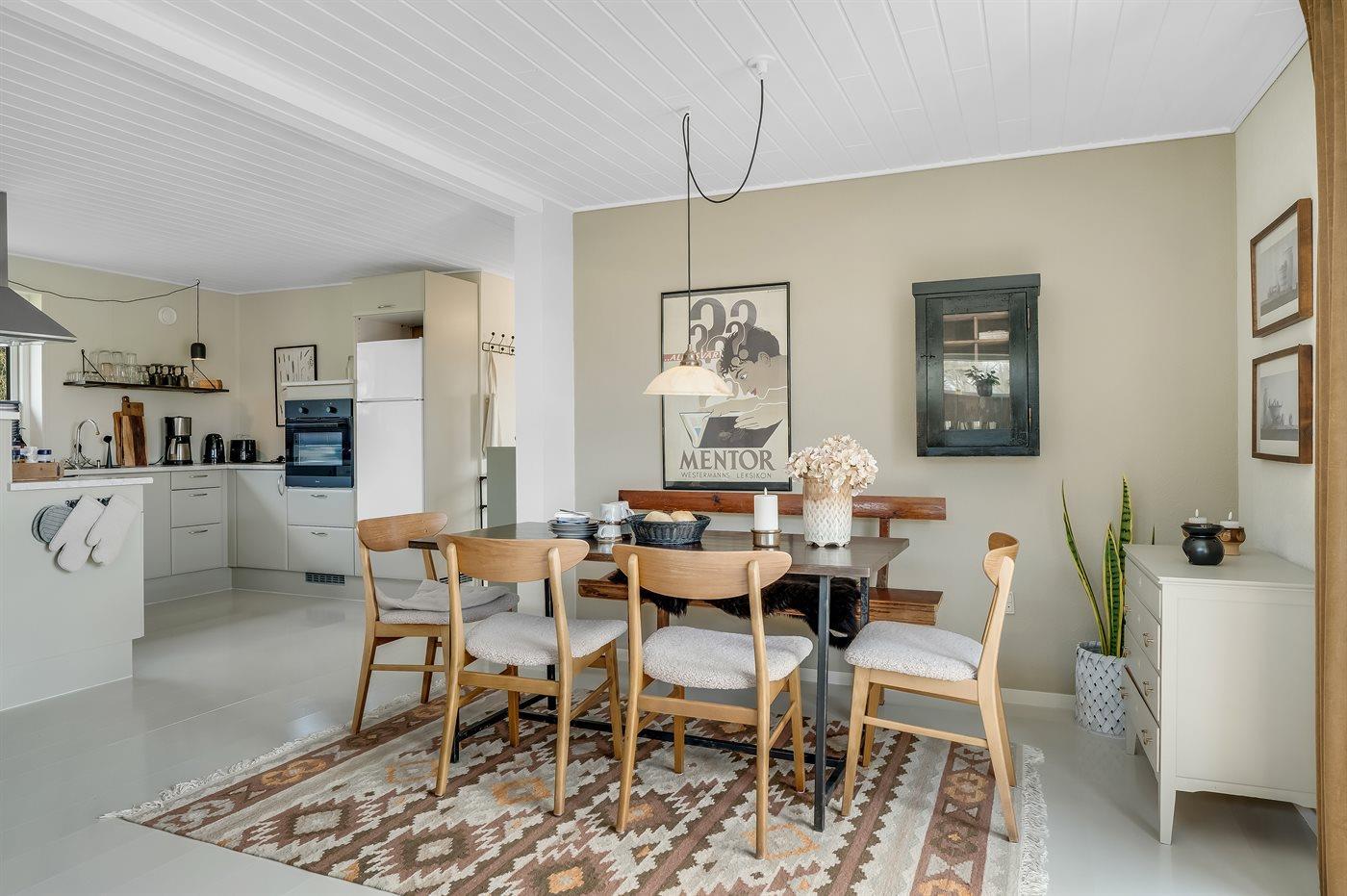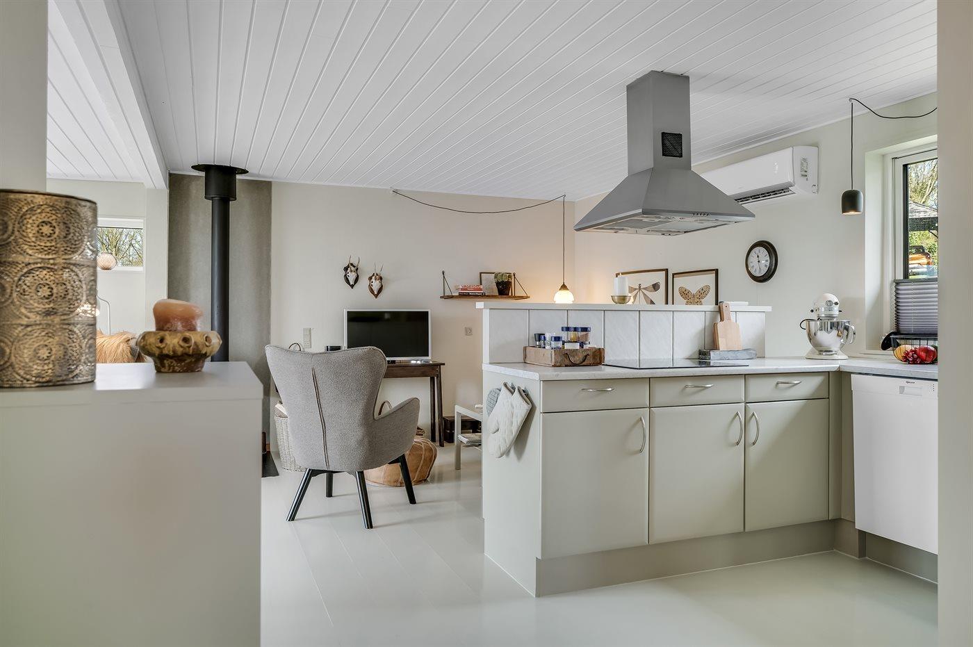 De keuken is uitgerust met koelkast. Frysekapasitet på 40 liter. Er is 4 inductiekookplaten, heteluchtoven en vaatwasser.
