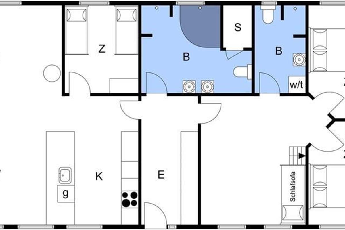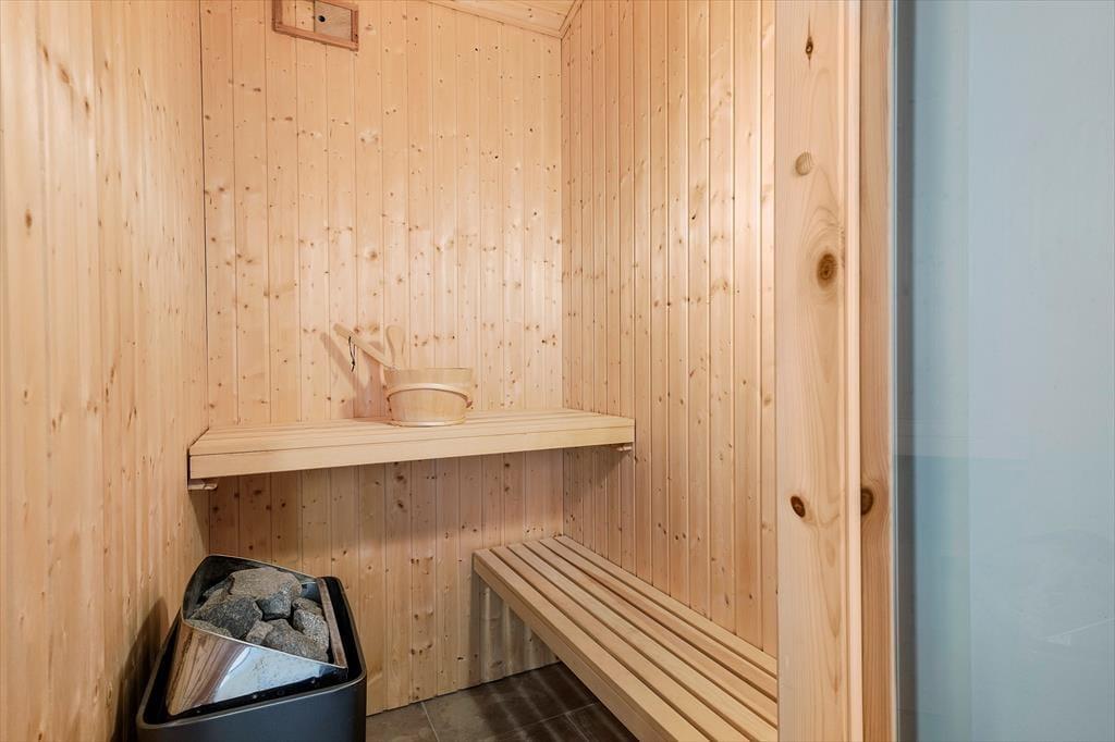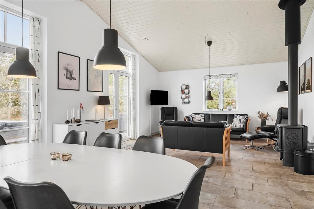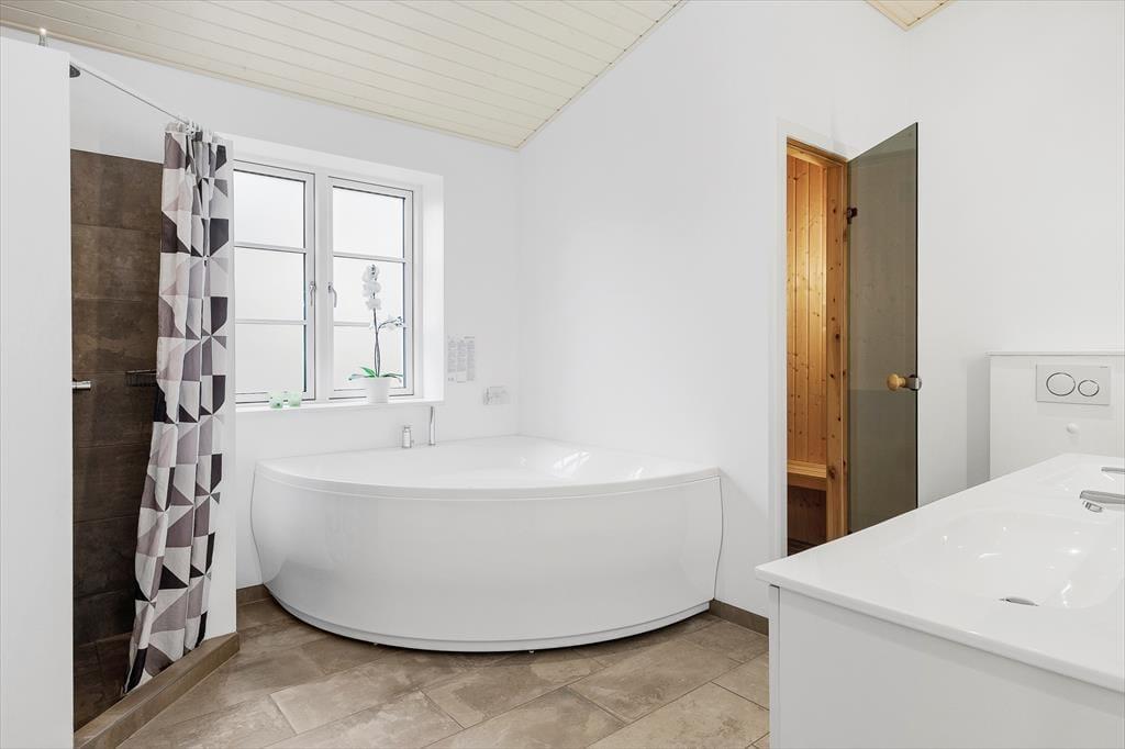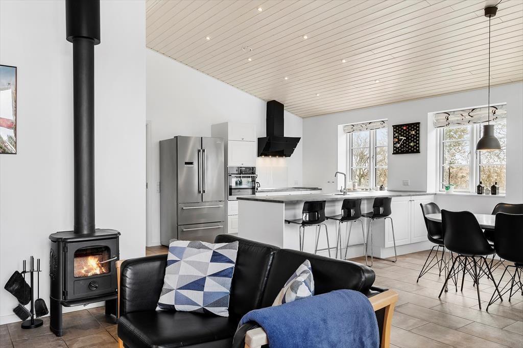 Das Ferienhaus ist ein solides Steinhaus aus dem Jahr 2017 und verfügt über eine Wohnfläche von 146 m², sodass der Rahmen um deinen Urlaub sowohl modern als auch geräumig ist. Alle Räume sind hell und freundlich eingerichtet, auch der Eingangsbereich und die zwei Badezimmer, von denen eines mit Sauna und Whirlpool ausgestattet ist. Im großen, hohen Aufenthaltsraum kann sich die ganze Urlaubsgesellschaft versammeln, um beim Kochen zu entspannen, Gesellschaftsspiele zu spielen oder sich einfach nur in der Sofaecke vor dem Brennofen auszuruhen. Darüber hinaus kannst du dich auch im Aktivitätsraum vergnügen, der mit einem Tischfußballspiel und Playstation 3 ausgestattet ist. Hier können Groß und Klein spielen und um die Wette „gamen“. In diesem Raum steht ebenfalls ein Schlafsofa für 2 Personen, das eine gute Ergänzung zu den Schlafplätzen in den drei Schlafzimmern und auf der Dachnische darstellt.