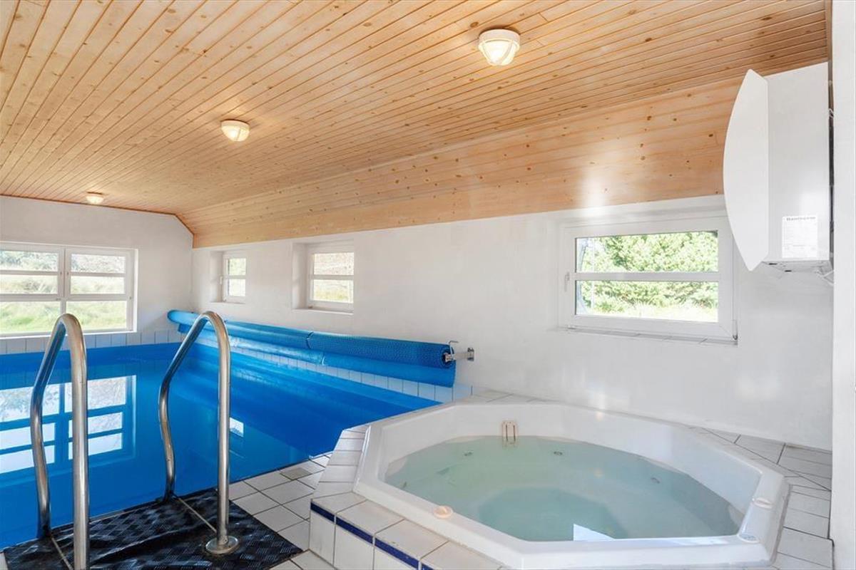 Hier wirst du vom Hausbesitzer mit Kuchen zum Kaffee und einem gemütlichen Feuer im Kamin empfangen. Er zeigt dir das komplett renovierte Ferienhaus mit Highlights wie einem Swimmingpool mit Unterwasserbeleuchtung und Schwimmtrainer, einer Sauna und einem Jacuzzi. Das geräumige Wohnzimmer mit der schönen Sofagruppe ist der perfekte Ort, um es dir am Kamin gemütlich zu machen, Karten zu spielen oder fernzusehen – mit einer Vielzahl deutscher und dänischer Programme. Das Haus ist natürlich mit allen modernen, energiesparenden Einrichtungen ausgestattet, wie einer Wärmepumpe für das Wohnzimmer, einer energiesparenden Wärmepumpe für Pool und Spa sowie einer automatischen digitalen Chlor- und PH-Anlage für den Pool. Außerdem gibt es eine Ladestation für dein Elektroauto.