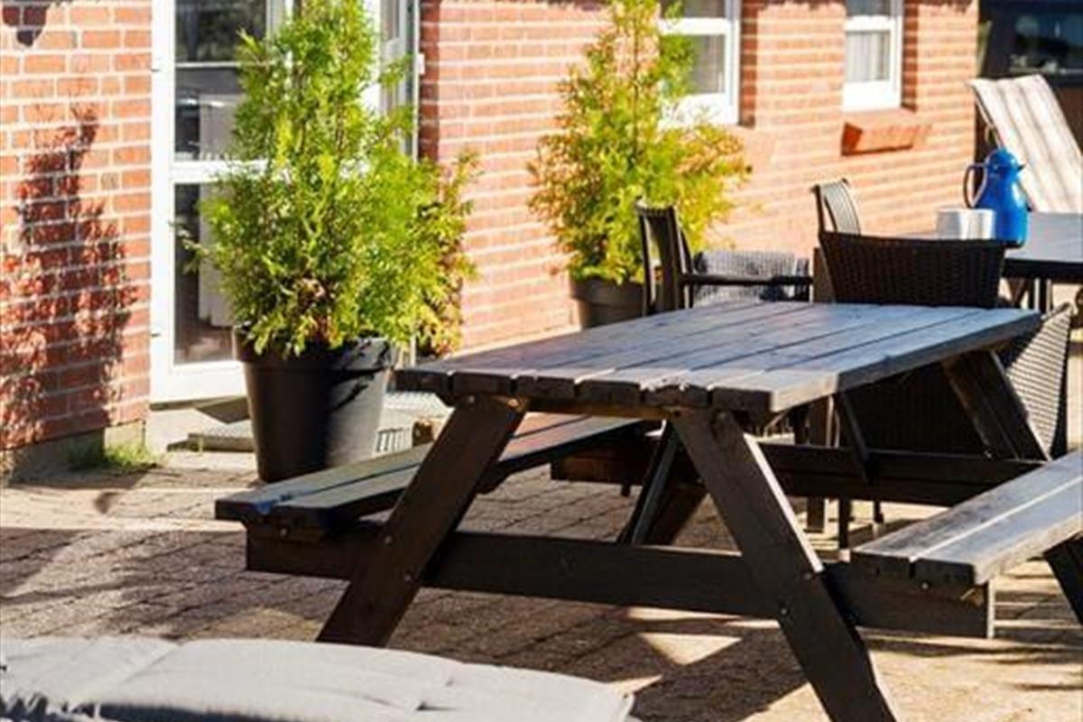 Die große, nach Süden ausgerichtete Terrasse lädt zu vielen gemütlichen Stunden in der Sonne oder beim Grillen ein. Rund um das Haus kannst du dich auf der großen Rasenfläche austoben, die alle Einrichtungen für Fußball, Badminton und Cricket bietet. Du kannst auf dem Trampolin springen, im Sandkasten spielen oder auf den Schaukeln schwingen. Thadesvej 14 ist wirklich ein wunderbarer Ort für einen Familienurlaub.