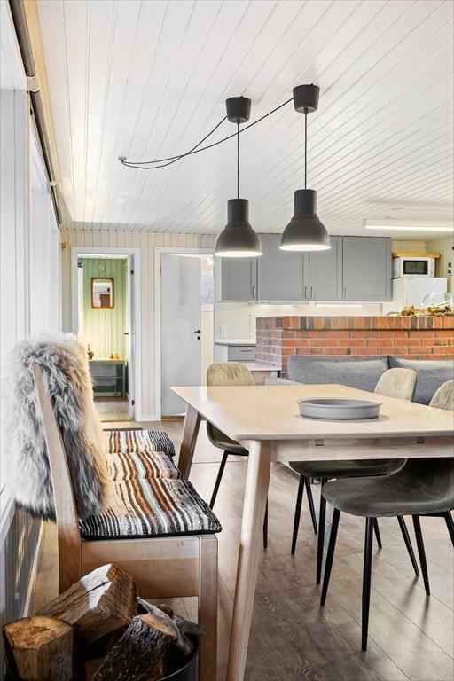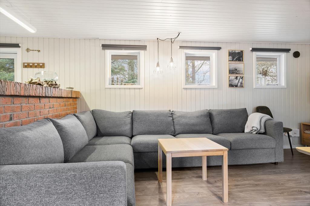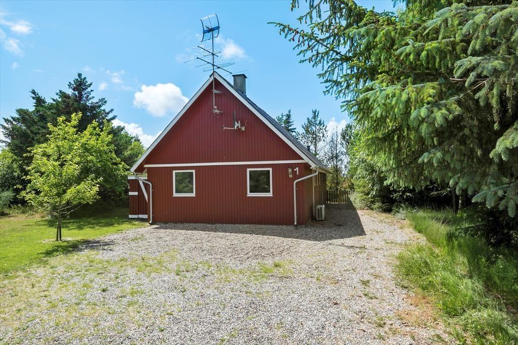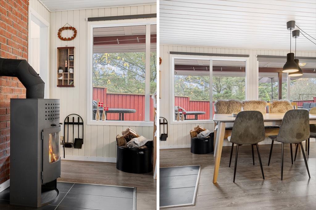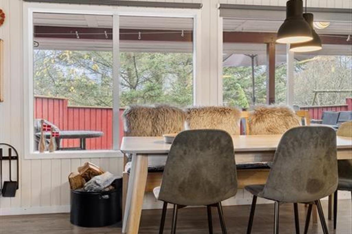 Hinter der rot gestrichenen Holzfassade erwartet dich eine gemütliche Einrichtung mit schönen Möbeln und warmen Farben, die für eine entspannte Urlaubsatmosphäre sorgen. Das Ferienhaus hat drei Schlafzimmer und ein Badezimmer. Der Mittelpunkt des Hauses ist der offene Wohnbereich, in dem Küche und Wohnzimmer miteinander verbunden sind. Hier kannst du mit deiner Familie oder deinen Freunden Brettspiele spielen, ein gutes Buch lesen, gemeinsam kochen oder einfach die Zeit zusammen genießen. An kühleren Tagen kannst du den Kamin anzünden und den Duft von selbst gebackenem Kuchen aus der Küche genießen. An warmen Sommertagen kannst du die Terrassentür offenlassen, damit drinnen und draußen ineinander übergehen.