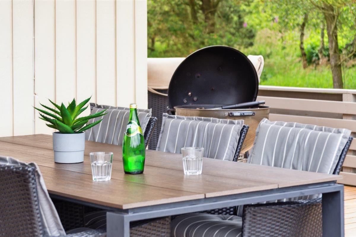 De vakantiewoning is gelegen op een 1500 m² groot natuural grond. Afstand tot de zee 2700 m. Dichtstbijzijnde winkel 2300 m. Bij de vakantiewoning hoort 50 m² terras. Daarnaast is er een 15 m² groot overdekt terras. Waarvan in totaal 65 m² beschut terras. Gereedschapsruimte. Het huis heeft een stopcontact voor het opladen van een elektrische auto. Oplaadstekker type 2. Met 11 kW-laadvermogen.