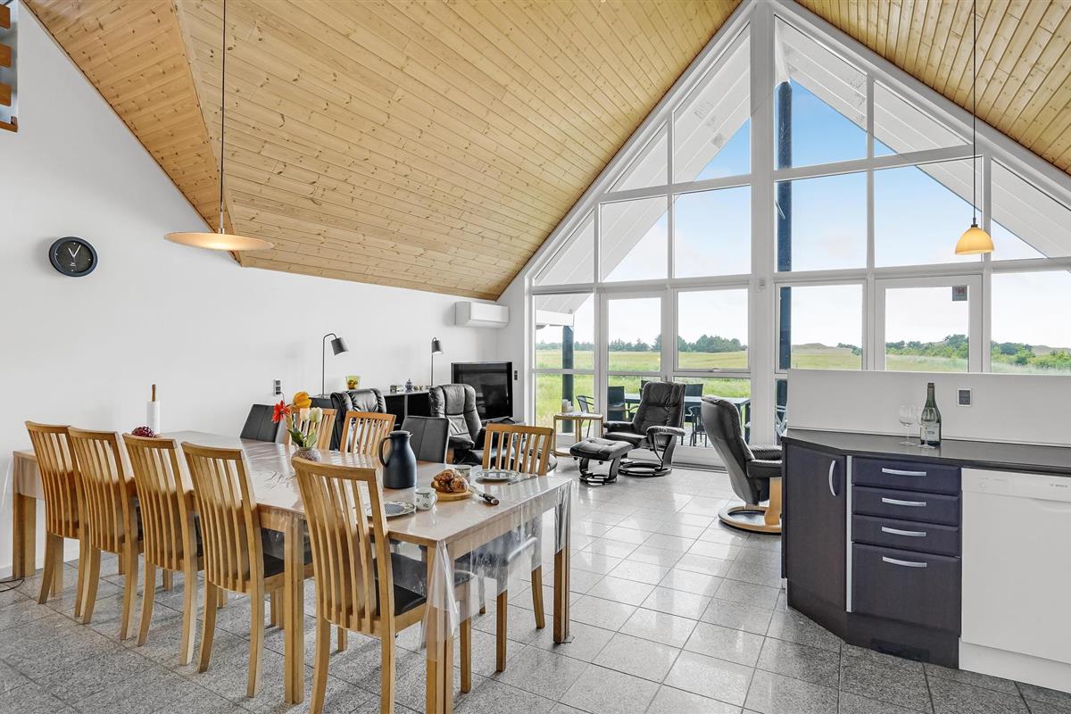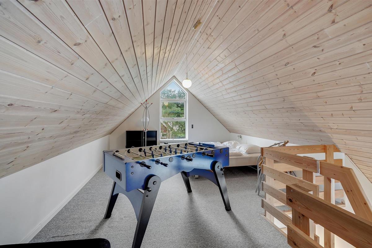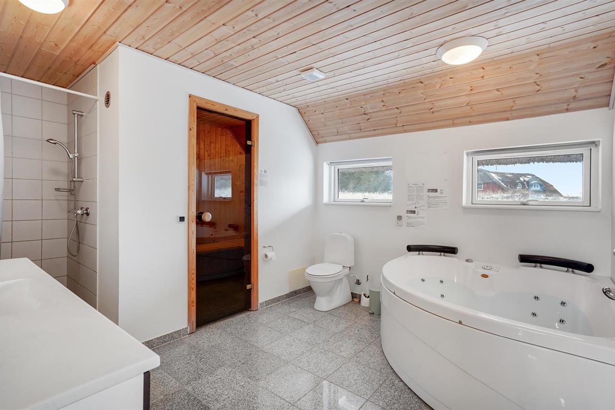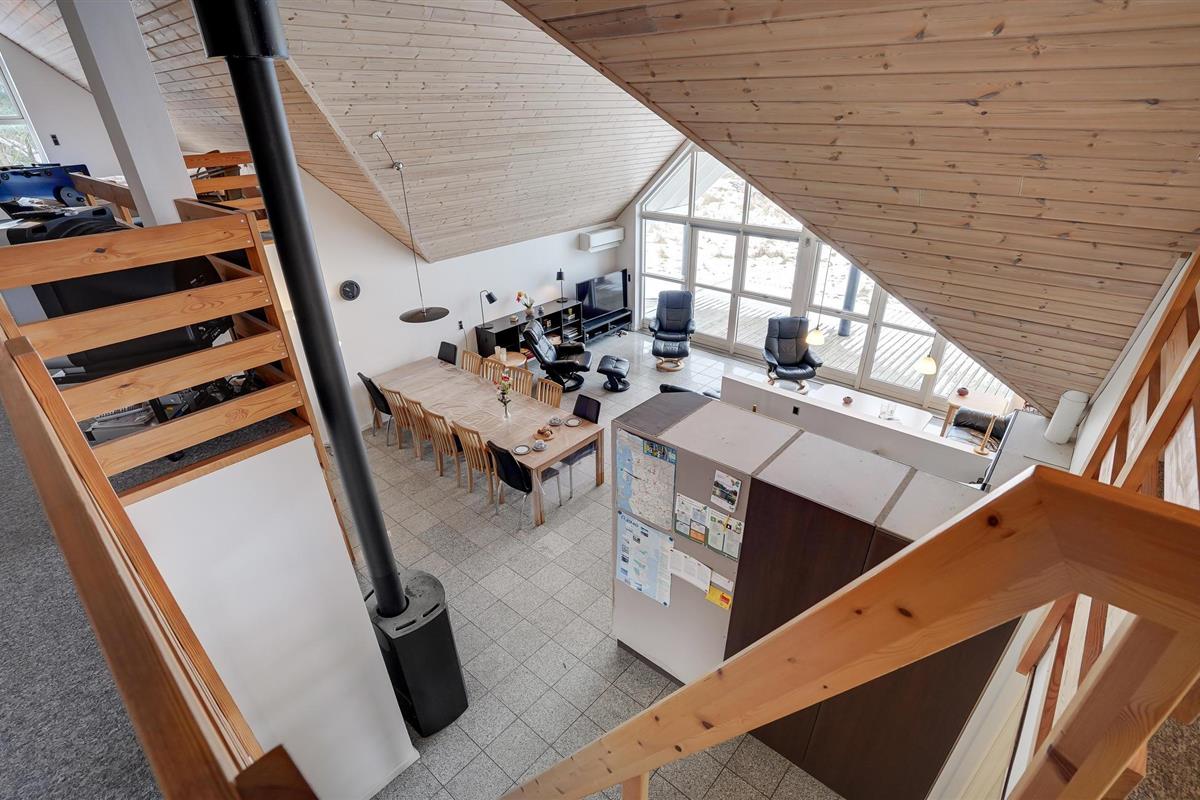 Alle kamers van het waardige en mooie huis zijn voorzien van prachtige marmeren klinkervloeren en vloerverwarming. De grote woonkamer heeft een open dakconstructie en het op het westen gerichte geveldeel zorgt voor een fantastische hoeveelheid licht. Vanuit de open slaapzolders, die deels zijn ingericht als slaapkamers en deels als tv-/speelkamers, kijk je uit over de woonkamer en naar het westen. Er is ook een whirlpool en een sauna waar je helemaal tot rust kunt komen. De buitenruimte nodigt ook uit tot activiteiten op vakantie, zoals barbecues met vrienden en familie.